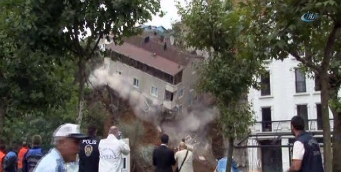 Beyoğlu Sütlüce'de toprak kayması nedeniyle çökme tehlikesinin meydana geldiği bina çöktü