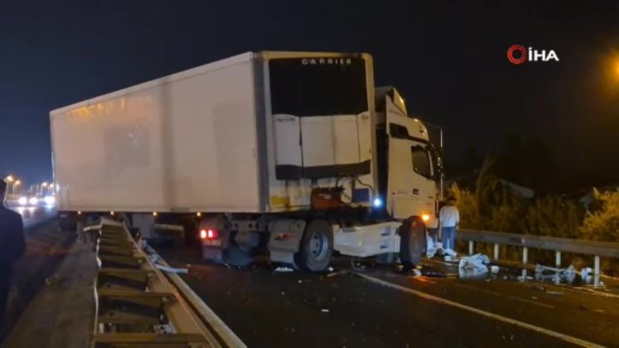 Tekirdağ-İstanbul yolunda meydana gelen kazada kontrolden çıkan tır bariyerlere çarptı. Kaza nedeniyle yol kapanırken, trafik yan yoldan kontrollü olarak sağlandı.