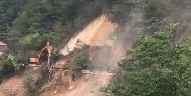 Giresun’da Tirebolu-Doğankent karayolunun Arslancık köyü mevkiinde yol çalışması esnasında heyelan meydana geldi.