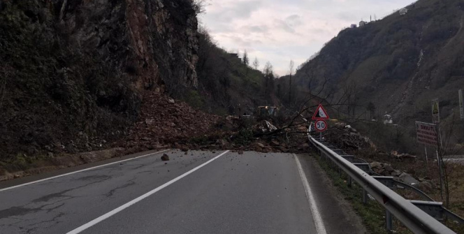 Tirebolu-Gümüşhane karayolu heyelan nedeniyle trafiğe kapandı