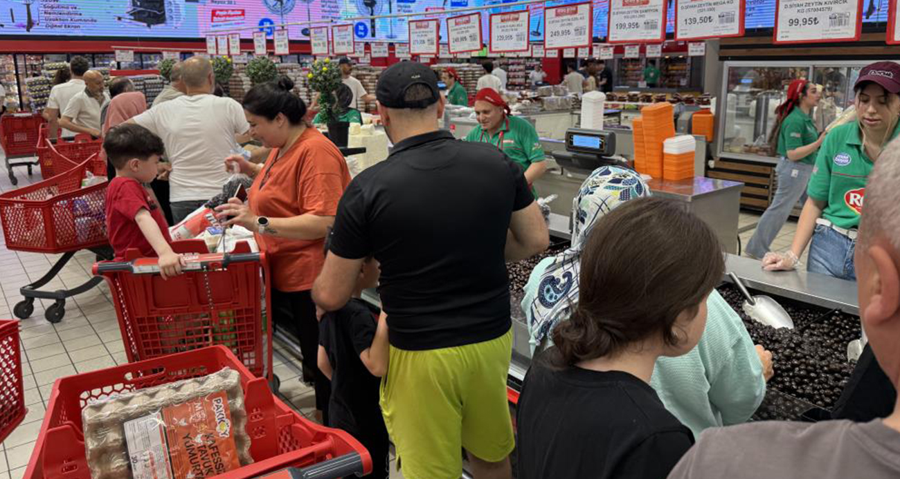 Arefe günü alışveriş izdihamı: Haramidere'deki zincir markette yoğunluk yaşandı
