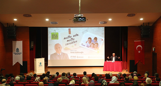 Başakşehir Belediyesi’nin “Mutlu Aile, Mutlu Çocuklar” seminerinde konuşan Eğitimci-Yazar Vehbi Vakkasoğlu, “Ailenin insan yetiştirme merkezi. Çocuklar kulaklarından değil, gözlerinden eğitiliyorlar. Yani çocuklarımız duyduklarını değil, gördüklerini yapıyorlar. Onun için anne-babalar çocuklarına örnek olmak mecburiyetinde” dedi.