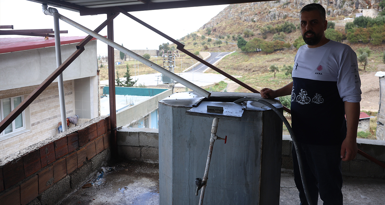 Hatay'da yaşayan Hasan Akkaya, evin damına kurduğu sistemle depoladığı yağmur suyunu; banyo yapmada, bulaşıkları yıkamada ve lavaboda kullanıyor.
