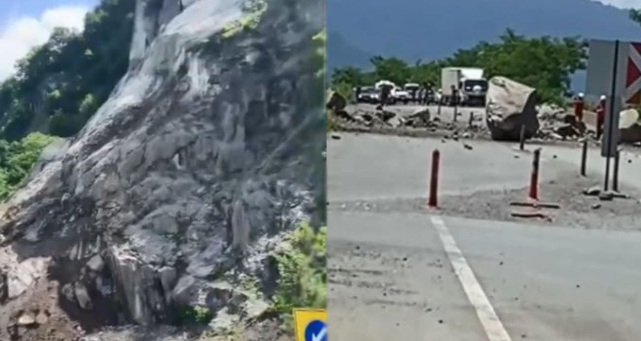 Artvin’in Hopa ilçesinde bugün öğle saatlerinde meydana gelen olayda yamaçtan kopan kayalar seyir halindeki bir araca isabet etti. Araç içinde bulunanlar şans eseri yara almazken, olay sonucunda karayolu ulaşıma kapandı.