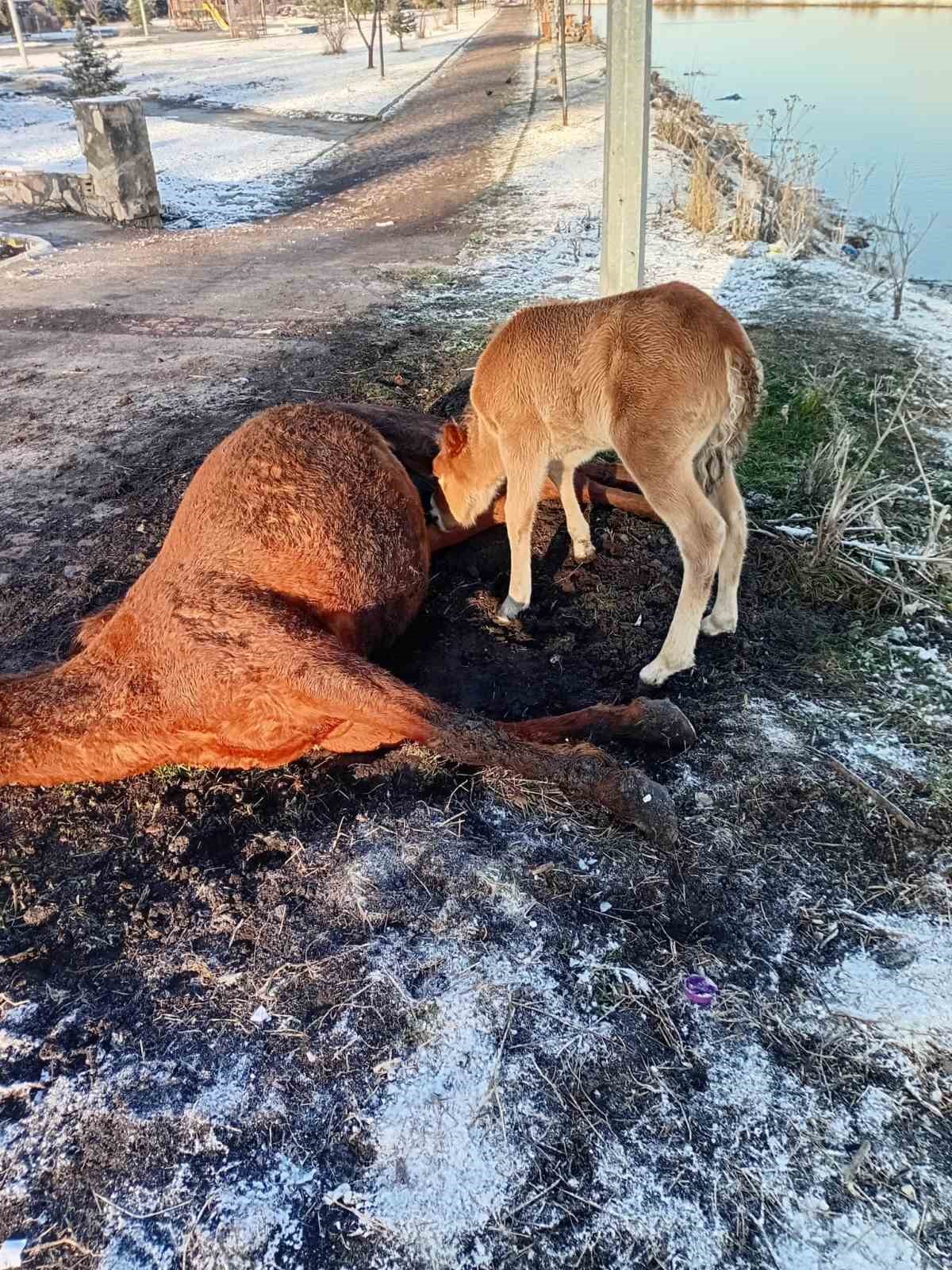 Ardahan’da yaşanan olay, görenlerin yüreğini burktu. Zorlu hava şartlarının etkili olduğu bölgede bir kısrak hayatını kaybederken, geride kalan yavru tayın davranışı duygusal anlara sahne oldu. Edinilen bilgilere göre, Kura nehri kıyısında, etkili olan soğuk hava ve olumsuz doğa şartları nedeniyle güçten düşerek ölen at yanında yavrusuyla görüntülendi. Annesini kaybeden tay ise uzun süre onun yanından ayrılmadı. Aç ve çaresiz kalan yavru tayın, annesinin cansız bedenine yaklaşarak onu hâlâ emmeye çalışması, olaya tanıklık eden vatandaşları derinden etkiledi. Tayın bu içgüdüsel davranışı, doğadaki bağın ne kadar güçlü olduğunu bir kez daha gözler önüne serdi. Yetkililer, özellikle kış şartlarının ağır geçtiği bölgelerde hayvanların korunması ve düzenli olarak kontrol edilmesi gerektiğine dikkat çekti.