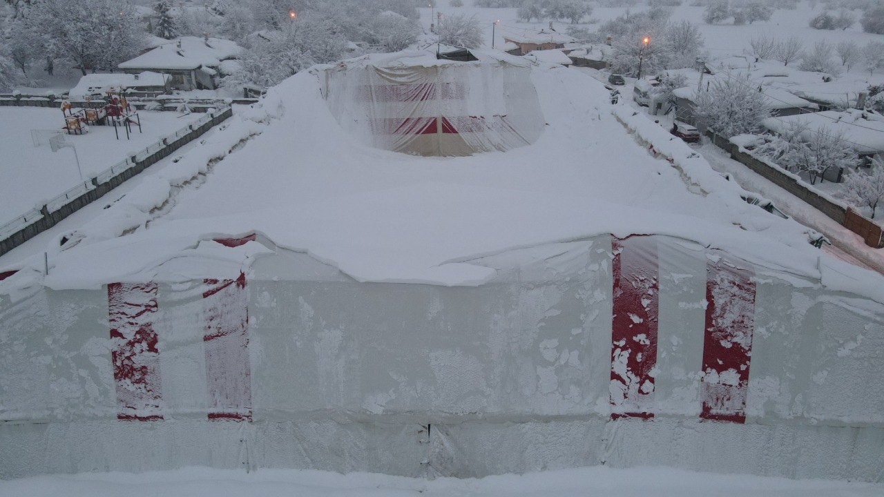 Erzincan’da kar birikintisi nedeniyle halı sahanın brandası çöktü, kimse zarar görmedi. Erzincan’da etkili olan yoğun kar yağışı nedeniyle Akyazı Mahallesi’nde bir halı saha çöktü. Olayda can kaybı yaşanmazken tesis kullanılamaz hale geldi. Doğu Anadolu Bölgesi’nde etkisini artıran kar yağışı, Erzincan’da yaşamı zorlaştırıyor. Aralıklarla devam eden ve zaman zaman şiddetini artıran yağış, kent merkezinde hem ulaşımı hem de günlük hayatı olumsuz etkiledi. Erzincan merkeze bağlı Akyazı Mahallesi’nde faaliyet gösteren bir halı saha tesisinin çatısı, üzerinde biriken yoğun kar tabakasının ağırlığına dayanamayarak çöktü. Sabah saatlerinde meydana gelen olayın ardından tesis büyük hasar görürken, halı sahanın tamamen kullanılamaz hale geldiği öğrenildi. Olay sırasında tesis içerisinde kimsenin bulunmaması muhtemel bir can kaybının önüne geçti. Mahalle sakinleri, gece boyunca etkili olan yağışın ardından brandanın üzerinde ciddi miktarda kar biriktiğini, sabah ise büyük bir gürültü duyduklarını belirtti.
