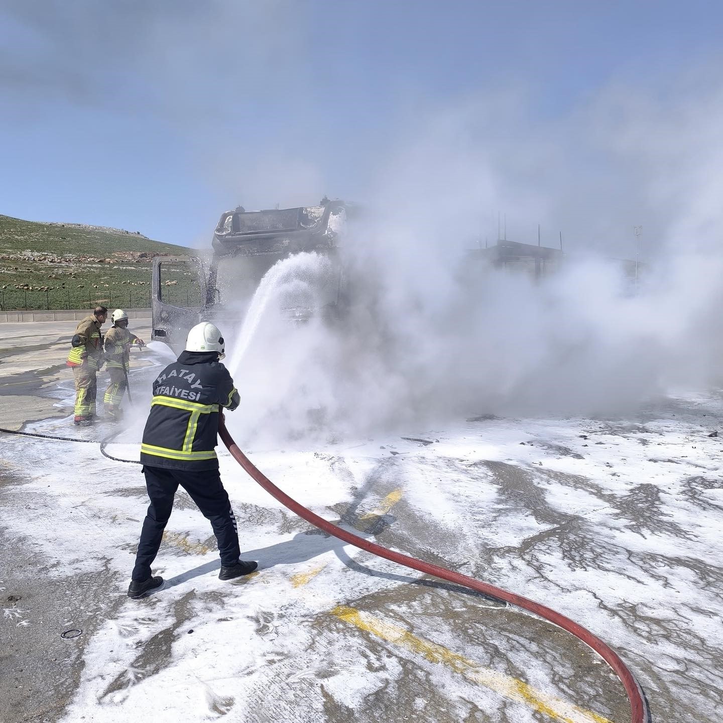 Hatay’ın Reyhanlı ilçesinde Cilvegözü Sınır Kapısı’nda park halindeki tır, yanarak alev topuna döndü. Alevlere teslim olan tır, kullanılmaz hale geldi. Yangın, Reyhanlı ilçesinde bulunan Cilvegözü Sınır Kapısı’nda yaşandı. Park halinde bekleyen tır, bilinmeyen bir nedenle yanmaya başladı. Kısa sürede yangının büyümesiyle tır, alev topuna döndü. Alevler içinde kalan tırı gören vatandaşlar durumu 112 Acil Çağrı Merkezi’ne bildirilmesi üzerine olay yerine itfaiye ekipleri sevk edildi. Kısa sürede bölgeye intikal eden itfaiye ekipleri, yangına müdahale ederek söndürdü. Alevler içinde yanan tır, kullanılmaz hale geldi.