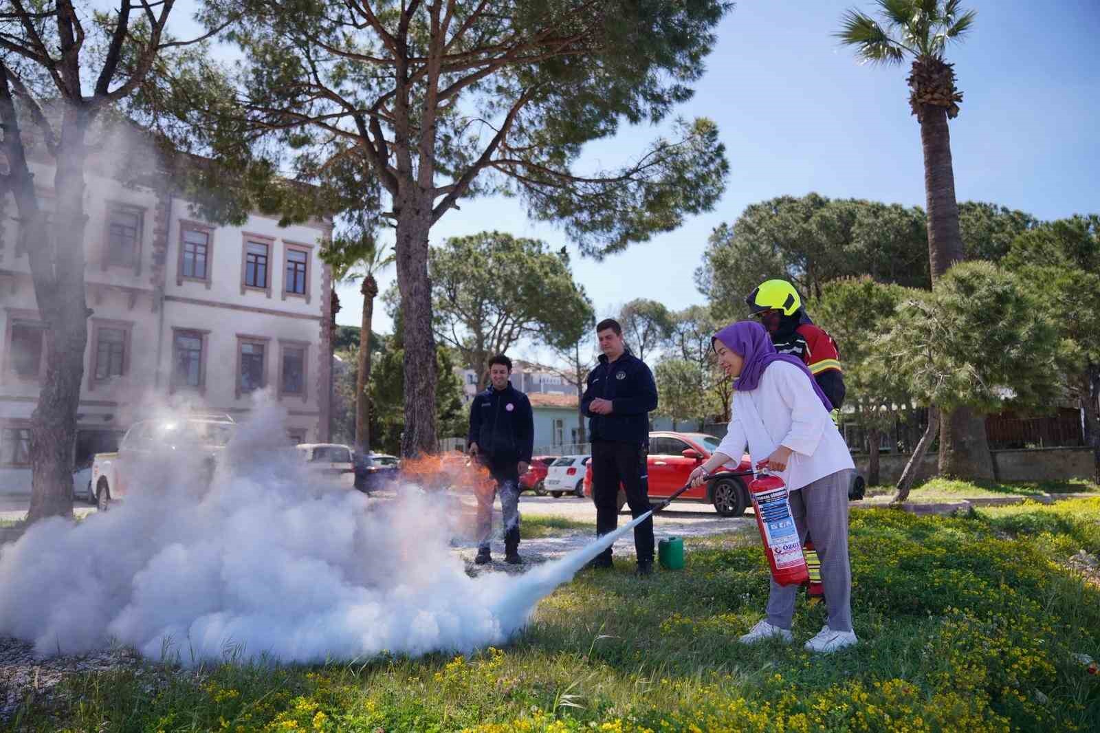 Balıkesir Büyükşehir Belediyesi İtfaiye Daire Başkanlığı tarafından il genelinde yürütülen personel yangın tatbikatları, ilçelerde yoğun ilgiyle karşılandı. Muhtemel yangınlara karşı hazırlıklı olmayı amaçlayan eğitim programları kapsamında, kamu kurumlarında görev yapan personelin bilinçlendirilmesine yönelik uygulamalı çalışmalar gerçekleştirildi. Tatbikatlarda, elektrik, doğalgaz, yağ ve benzin kaynaklı yangınlara müdahale yöntemleri hakkında detaylı bilgilendirme yapıldı. İtfaiye yetkilileri tarafından oluşturulan sembolik yangın alanlarında, farklı yangın türlerine karşı doğru söndürme teknikleri uygulamalı olarak gösterildi. Bu kapsamda Ayvalık Belediyesi çalışanlarına da yangın tatbikatı yaptırıldı. Personelin aktif katılım sağladığı eğitimlerde, yangın anında doğru müdahale yöntemleri birebir uygulanarak muhtemel risklere karşı farkındalık artırıldı.