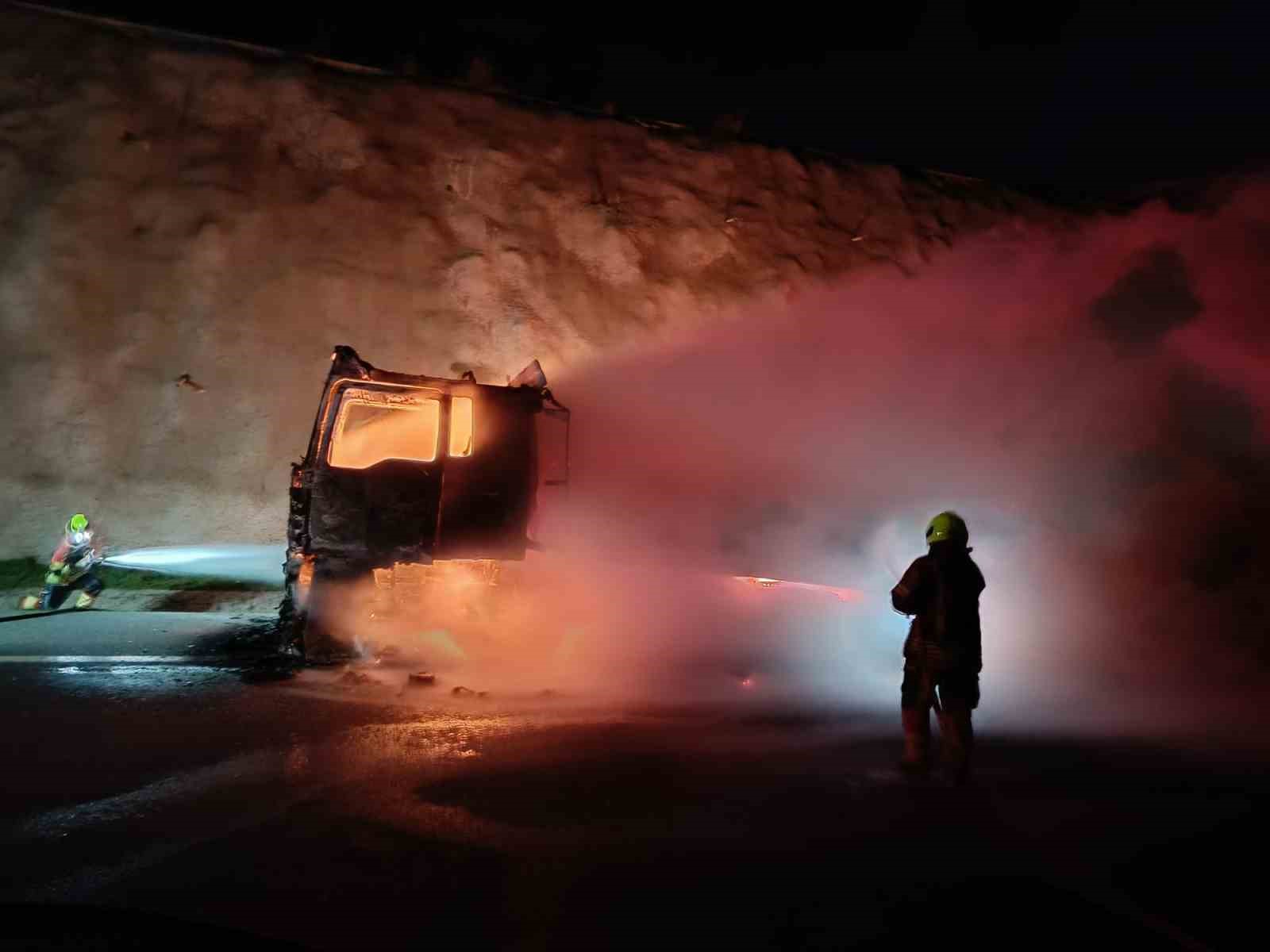 Balıkesir’de kauçuk yüklü tır alev alev yandı