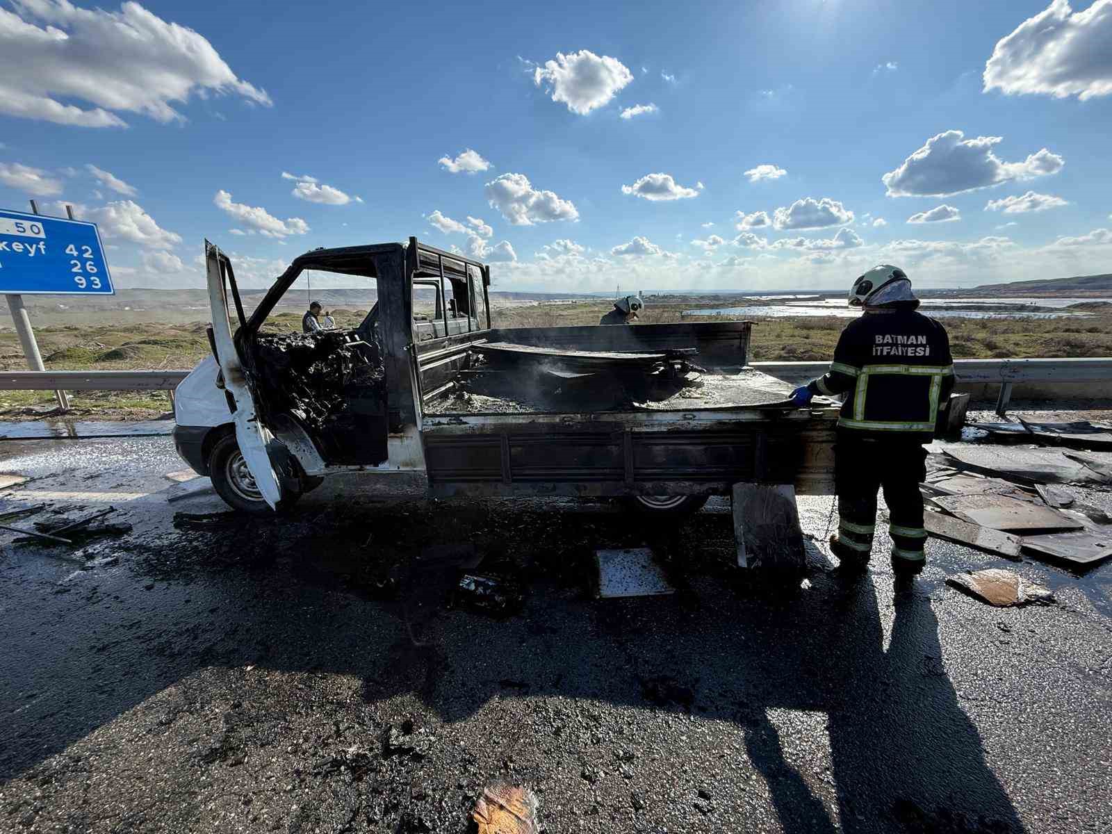 Batman’da seyir halindeki kamyonet alev aldı