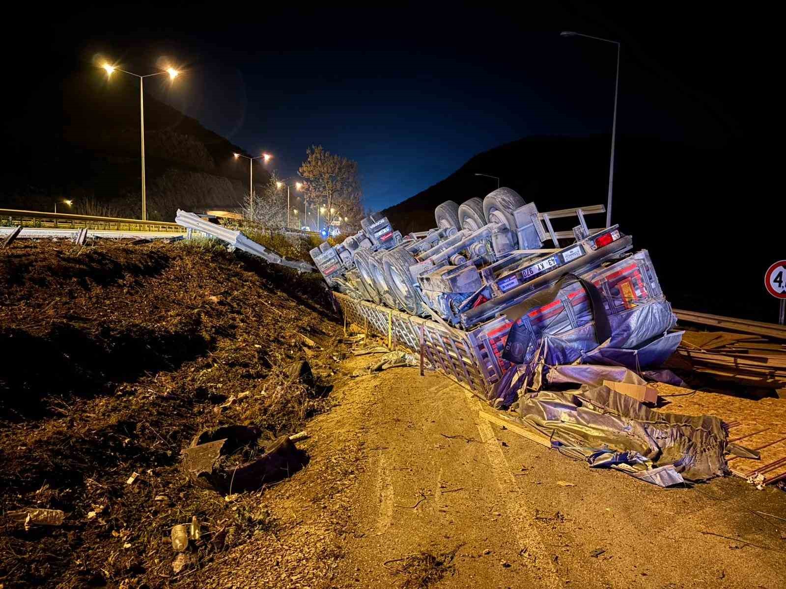 Bilecik’te devrilen tırın sürücüsü yaralandı