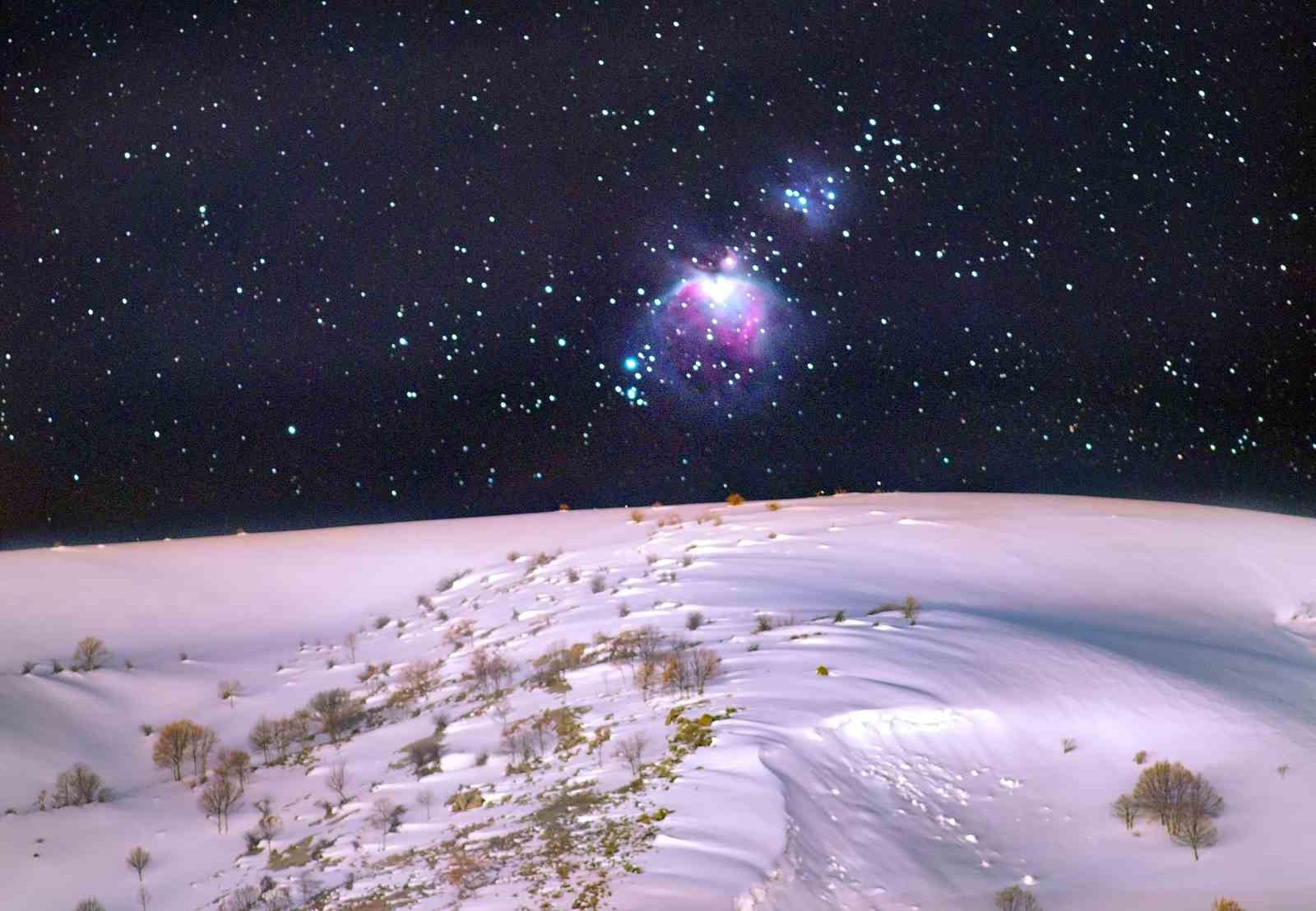 Bitlis’te karlı dağlarda eksi 4 derece soğukta gerçekleştirilen 4 saatlik çekim sonucunda, yaklaşık 1500 ışık yılı uzaklıkta bulunan Orion bulutsusu dağların zirvesiyle net şekilde görüntülendi. Doğa ve gökyüzü gözlemcisi olan Anadolu Sualtı Araştırmaları ve Sporları Derneği Temsilcisi Dr. Cihan Önen tarafından gerçekleştirilen çalışmada telefoto lens, profesyonel teleskop ve çeşitli astronomi ekipmanları kullanıldı. Çekimin yaklaşık 4 saat sürdüğünü belirten Önen, eksi 4 derecede ve zorlu hava şartlarında çalışmanın oldukça güç olduğunu ifade etti. Bitlis’in yüksek rakımı ve düşük ışık kirliliğinin uzay tutkunları için önemli bir avantaj sağladığını vurgulayan Önen, sabırlı bekleyişin ardından etkileyici kareler ortaya çıktığını söyledi. Bitlis’in karlı zirveleri ile uzayın derinliklerini aynı kadrajda buluşturduklarını belirten Önen, saatler süren ve birkaç güne yayılan çekimlerin ardından hedefledikleri kareleri elde edebildiklerini dile getirdi. Kış aylarında, ışık kirliliğinin az olduğu bölgelerde bazı parlak uzay bulutsularının zifiri karanlıkta çıplak gözle kısmen görülebildiğini kaydeden Önen, özel ekipmanlar kullanıldığında çok daha fazla detayın ortaya çıkarılabildiğini ifade etti. Önen, "Bitlis, ışık kirliliğinin az olduğu illerdir biridir. Bu açıdan bize pek çok fırsatlar sunmaktadır. Bizde uzay ve doğaseverler olarak ekipmanlarımızı hazır ettik. Gece gökyüzünde Orion bulutsusunu karlı dağlarla beraber batışını izleyip aynı zamanda kayıt altına alacağız. Gece dondurucu soğuk olmakta. Saatlerce biz o dondurucu soğukta bekleyip uzay severler olarak kareler oluşturmaya çalışıyoruz. Bir hayli zor olacak fakat onu görmeye ve fotoğraflamaya değiyor. Bizlerde ekipmanlarımızı, teleskoplarımızı ve foto lenslerimizi bunun için hazır hale getirdik. Binlerce yıldızı çıplak gözle görebildiğimiz gibi bu ekipmanlarla da daha fazla detay görebilmekteyiz. Gece özellikle kış aylarında Orion bulutsusu daha görünür bir hale gelmektedir. Fotoğraflamak ve görüntülemek açısından daha ideal bir halde. Bitlis’in karlı dağlarından buzlu bölgelerinden Orion bulutsusunun batışını çekeceğiz" dedi. Mayalar tarafından "kozmik yaratılış ateşi" olarak adlandırılan bu bulutsuya ilişkin elde edilen görüntüler ise Bitlis’in kış gecelerinde sunduğu berrak ve büyüleyici gökyüzünü bir kez daha gözler önüne serdi.