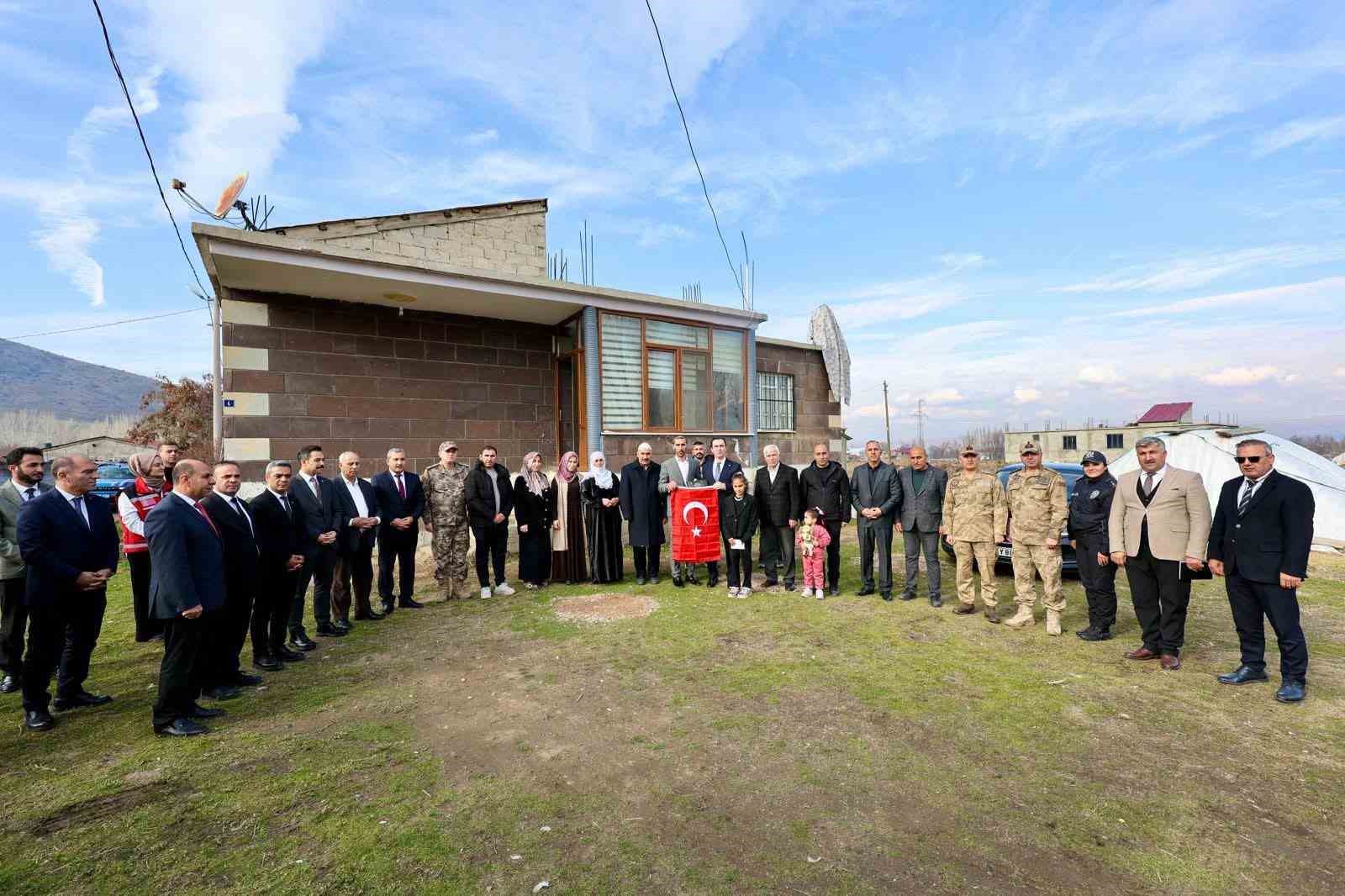 Bitlis Valisi Ahmet Karakaya, Şehit Piyade Komando Er Ahmet Soyalan’ın ailesini ziyaret etti. Ziyaret sırasında şehidin emanetleri olan ailesiyle bir süre sohbet eden Vali Karakaya, aile fertlerinin talep ve isteklerini dinleyerek her zaman yanlarında olduklarını ifade etti. Şehitlerin fedakârlıklarının asla unutulmayacağını vurgulayan Vali Karakaya, bu aziz topraklarda huzur ve güven içerisinde yaşamamızı sağlayan tüm şehitlerimize minnet borçlu olduğumuzu belirtti. Ziyaret, okunan Kur’an-ı Kerim tilavetinin ardından yapılan dualarla son bulurken, tüm şehitler rahmet ve şükranla yâd edildi. Ziyarette; Güroymak Kaymakamı Mehmet Zahid Uzun, İl Jandarma Komutanı Tuğgeneral Barış Soyal, İl Emniyet Müdürü Koray Şensoy, İl Özel İdare Genel Sekreteri Adem Aydoğdu, Güroymak Belediye Başkan Vekili Erdoğan Oral da yer aldı.