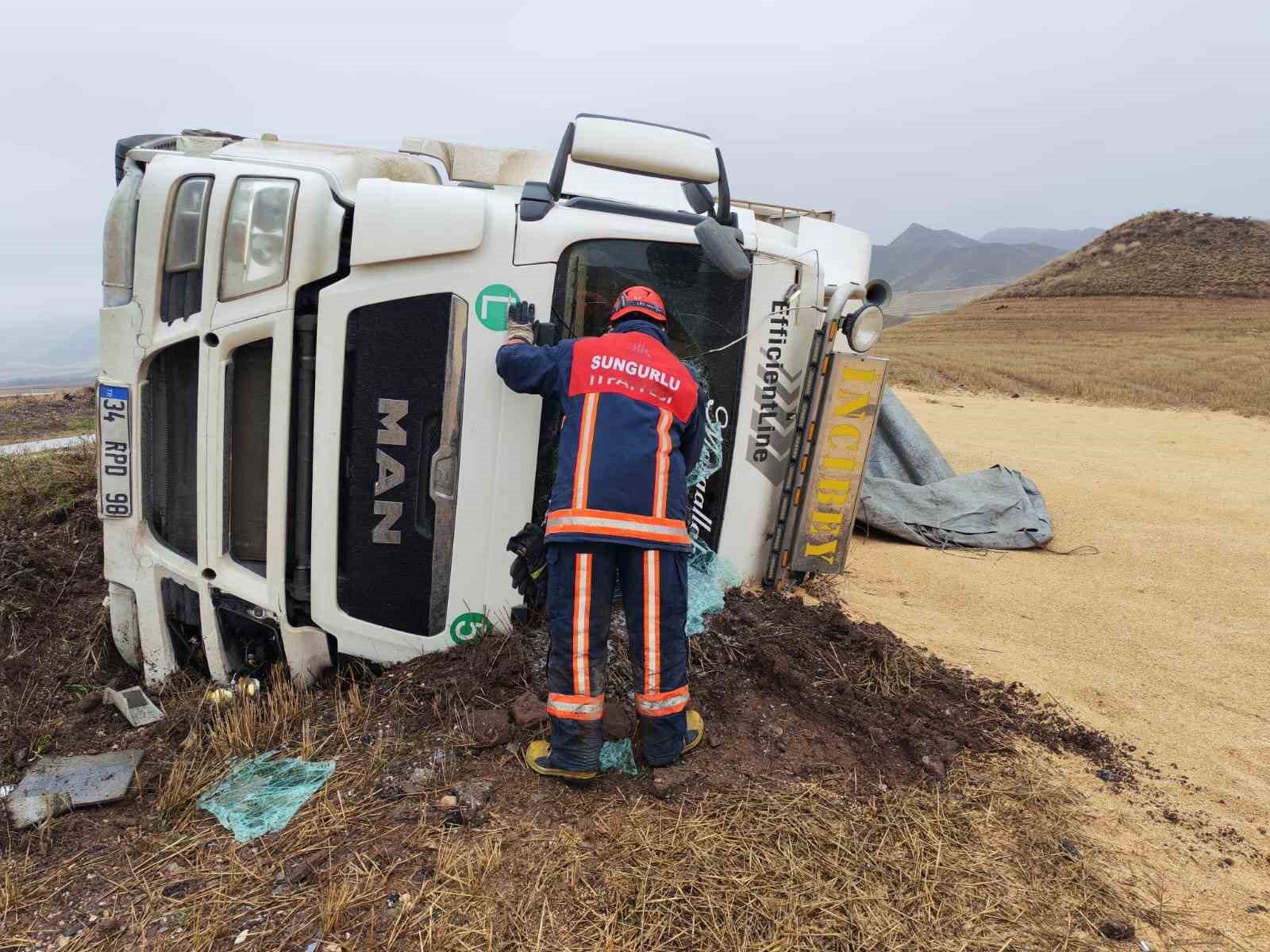 Çorum’da devrilen tırın sürücüsü yaralandı