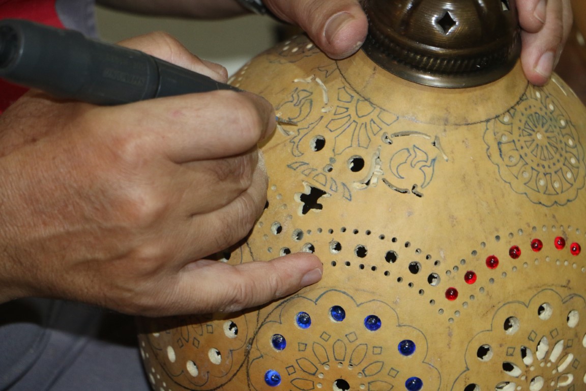 Emekli olduktan sonra Antalya’da hobi olarak başladığı su kabağı oymacılığına yurt dışından gelen turistlerin ilgilisini arttığını gören İsmail Yumlu, su kabaklarına birbirinden farklı işlemler uygulayarak lamba ve süs eşyasına dönüştürdüğü mesleğini Diyarbakır’da devam ettiriyor.
