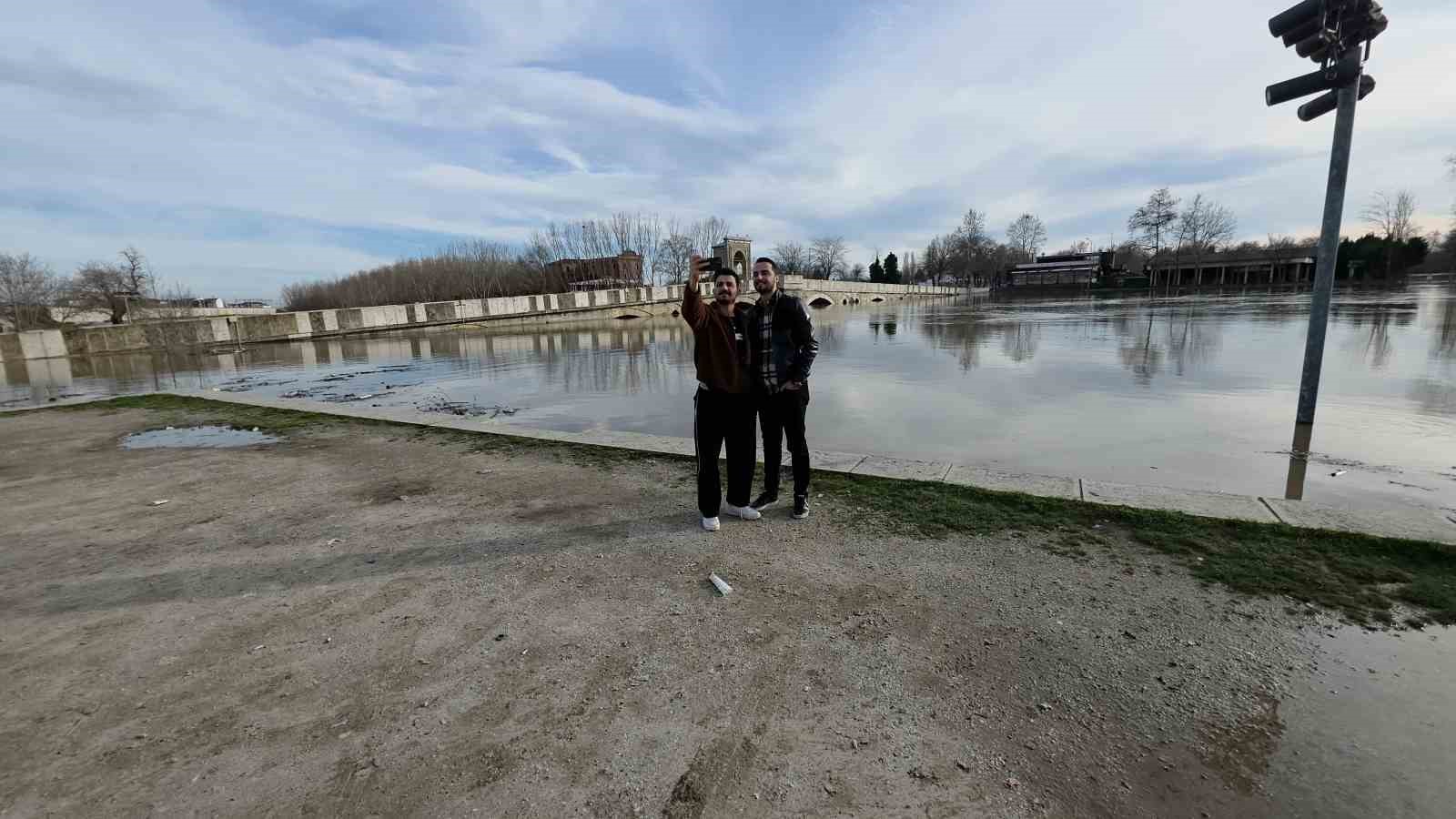 Edirneliler taşkın riski bulunan nehir kenarına akın etti