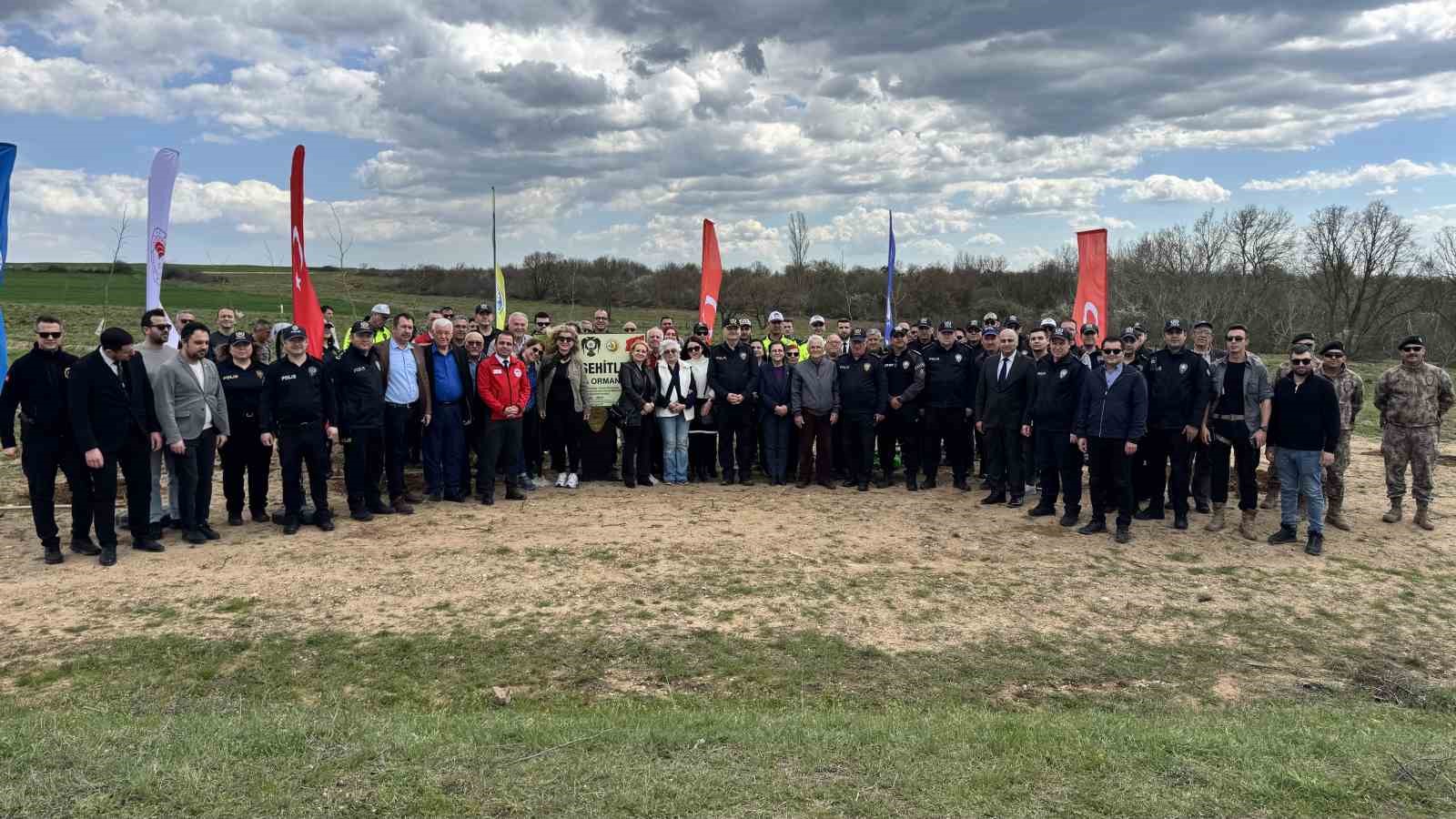 Edirne’nin Lalapaşa ilçesine bağlı Çömlek köyünde "Polis Şehitleri Hatıra Ormanı" oluşturuldu. Türk Polis Teşkilatı’nın kuruluşunun 181’inci yıl dönümü etkinlikleri çerçevesinde, kahraman şehitlerin isimlerinin verildiği fidanlar, düzenlenen törenle toprakla buluşturuldu. İl Emniyet Müdürü Muhittin Ayhan, emniyet müdür yardımcıları ve şehit ailelerinin katıldığı törende duygu dolu anlar yaşandı. Dualar eşliğinde dikilen fidanlara ilk can sularını şehit yakınları verirken, Emniyet Müdürü Ayhan, "Kahramanlarımızın isimleri bu ormanda sonsuza dek yaşayacak, aziz hatıraları rehberimiz olacaktır" dedi. Anlamlı etkinlik çerçevesinde, fidanlara şehitlerin isimlerinin yazılı olduğu levhalar asılarak hatıra fotoğrafı çektirildi.