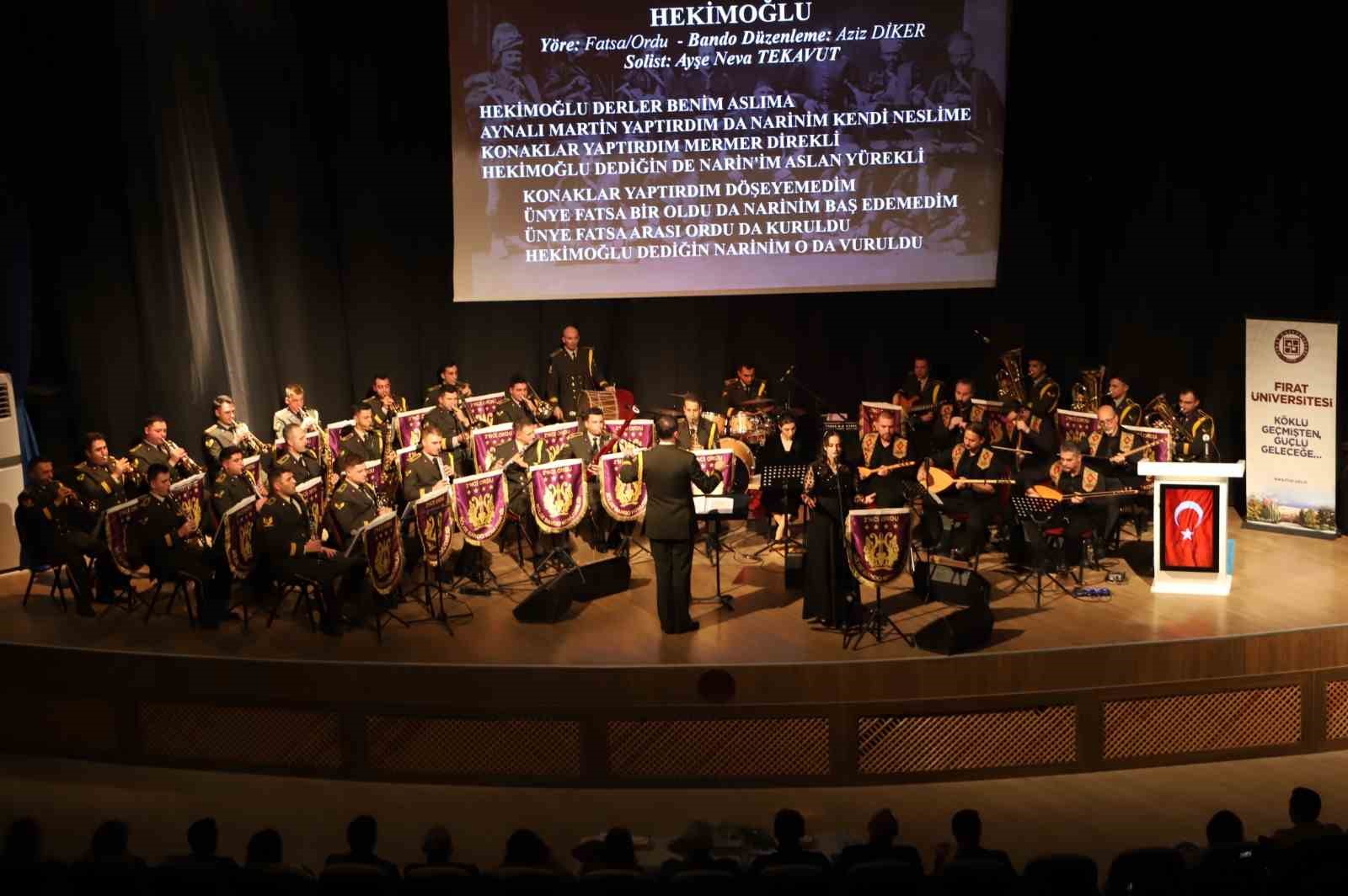 Fırat Üniversitesi’nde düzenlenen bando konseri ayakta alkışlandı. Fırat Üniversitesi’nin kuruluşunun 50. yıl dönümü etkinlikleri kapsamında, Malatya 2. Ordu Bölge Bando Komutanlığı ile Fırat Üniversitesi Devlet Konservatuvarı iş birliğinde düzenlenen ortak konser, unutulmaz bir müzik ziyafeti sundu. Atatürk Kültür Merkezinde gerçekleştirilen konser programına; Fırat Üniversitesi Rektör Vekili Prof. Dr. İrfan Kaygusuz, Rektör Yardımcısı Prof. Dr. Mehmet Yılmaz, Genel Sekreter Prof. Dr. Sinan Akpınar, akademisyenler, öğrenciler ve çok sayıda vatandaş katıldı. Klasik müzikten çağdaş eserlere, Türk Halk Müziği’nden seçkin marşlara uzanan geniş bir repertuvarın seslendirildiği gecede, bando ve Devlet Konservatuvarı sanatçıları sergiledikleri uyumlu ve etkileyici performanslarla dinleyicilerden tam not aldı. Salonu dolduran izleyiciler, konser boyunca müzik dolu keyifli ve coşkulu anlar yaşadı. Konserin final bölümünde sergilenen etkileyici performansın ardından salonu dolduran sanatseverler, sanatçıları dakikalarca ayakta alkışladı. Programın sonunda, Fırat Üniversitesi Rektör Vekili Prof. Dr. İrfan Kaygusuz tarafından konseri yöneten Malatya 2. Ordu Bölge Bando Komutanı Yüzbaşı Ahmet Kerem Çolak ile Devlet Konservatuvarı akademisyenleri ve öğrencilerine teşekkür edilerek çiçek takdim edildi.