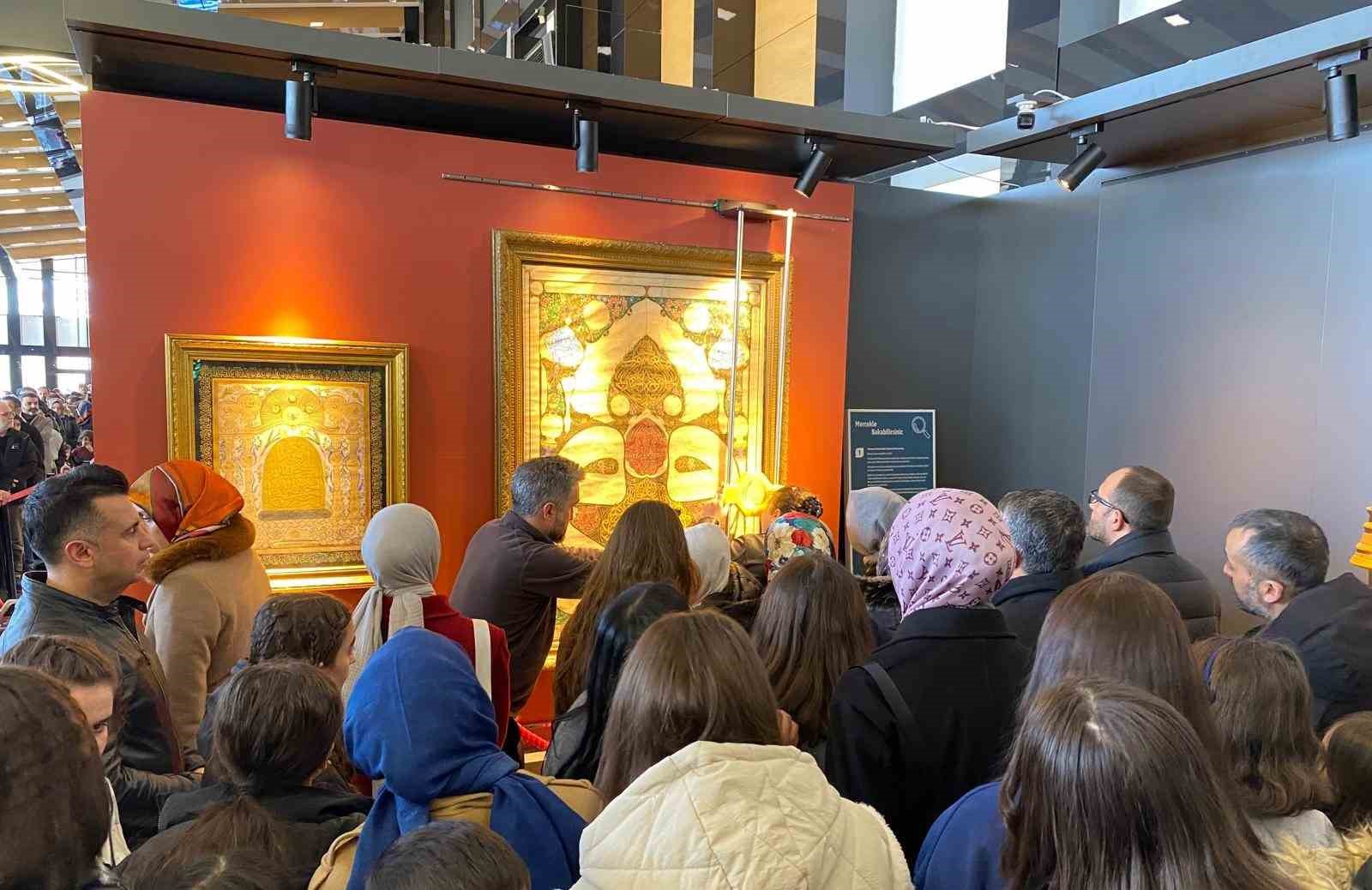 Devlet korumasındaki çocuklar, kutsal emanetler ve vakıf eserleri sergisini ziyaret etti