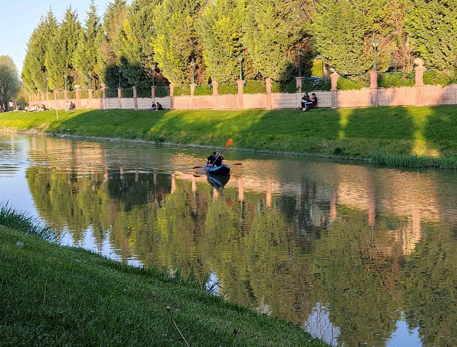 Eskişehir’in yeşiliyle bilinen duraklarından biri olan Kanlıkavak Parkı’nda bir araya gelen gençler, Porsuk Çayı üzerinde kano yaparak güzel havanın tadını çıkardı. Eskişehir’in Odunpazarı ilçesinde bulunan ve eşsiz doğasıyla bilinen Kanlıkavak Parkı’nda iskeleden kanolarıyla suya açılan iki genç, Porsuk Çayı boyunca kürek çekerek keyifli anlar yaşadı.