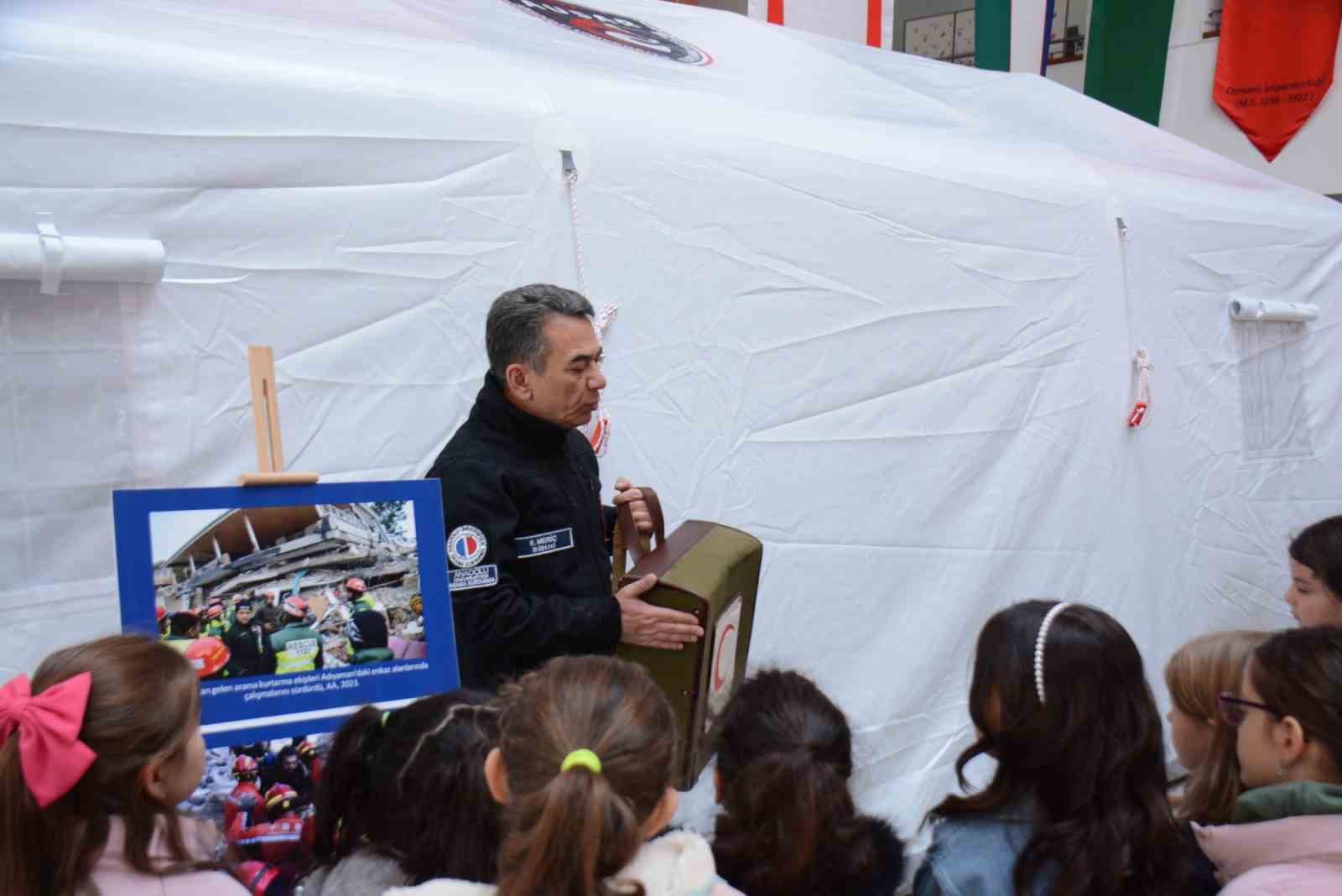 Anadolu Üniversitesi Arama ve Kurtarma (AUSAR) Ekibi tarafından kreş öğrencilerine yönelik afet farkındalık etkinliği düzenlendi. AUSAR Ekip Lideri Dr. Öğr. Üyesi Ekrem Meriç tarafından afet ekipmanları ve çadırlar tanıtıldı. Etkinlikte, afet durumlarında kullanılan ekipmanlar, çadır sistemleri ve arama-kurtarma teknolojileri hakkında bilgilendirme yapıldı. AUSAR Ekip Lideri Dr. Öğr. Üyesi Ekrem Meriç eğitimde afetlere hazırlıklı olmanın önemine dikkat çekerek, küçük yaşta kazanılan bilincin hayat kurtarıcı olabileceğini ifade etti. Öğrencilere afet anında nasıl davranmaları gerektiği yaş seviyelerine uygun bir anlatımla aktarıldı.