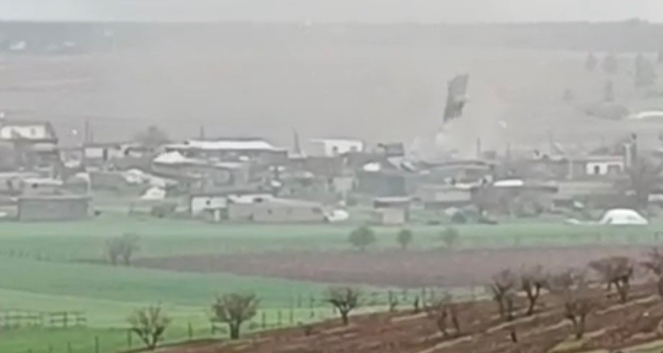 Hilvan’da dehşet anları kamerada: Fırtına çatıları uçurdu, direkleri devirdi