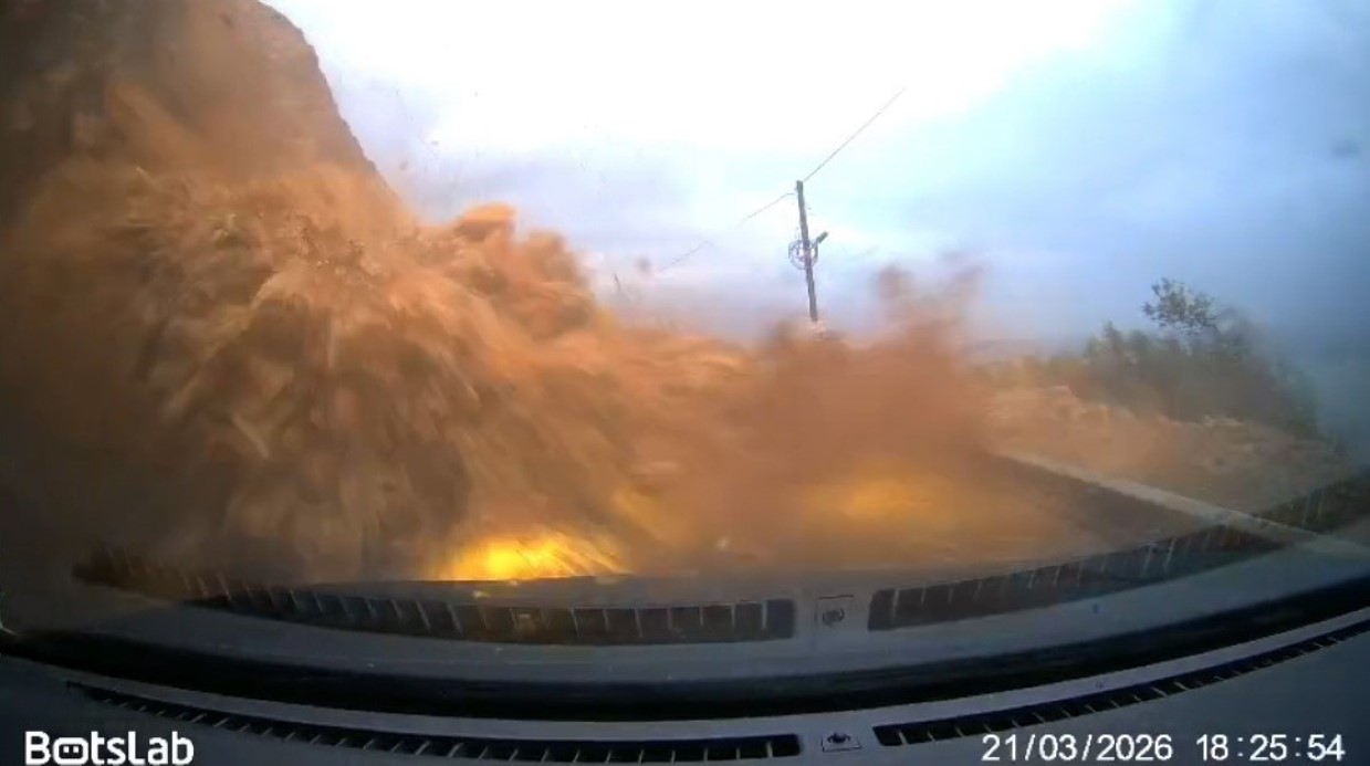 Mersin-Antalya yolundaki heyelan araç kamerasında