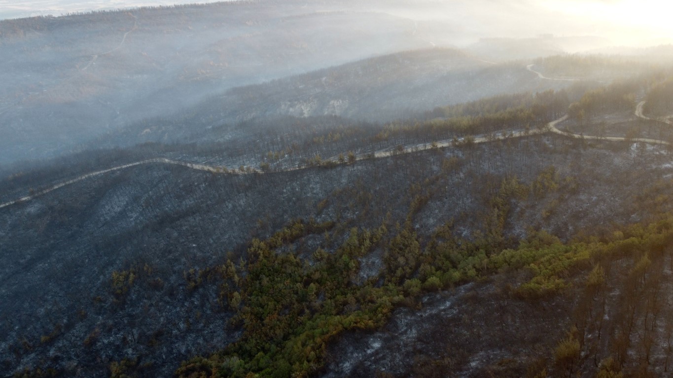 Yangının 3'üncü gününde yanan ormanlık alanlar dronla görüntülendi.