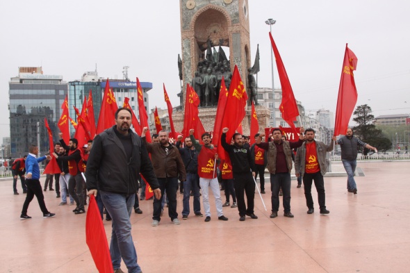 Türkiye Komünist Partisi (TKP) üyesi yaklaşık 25 kişilik grup, Taksim'de bir otelden çıkarak eylem yapmak istedi. Polis gruba, müdahale etti.