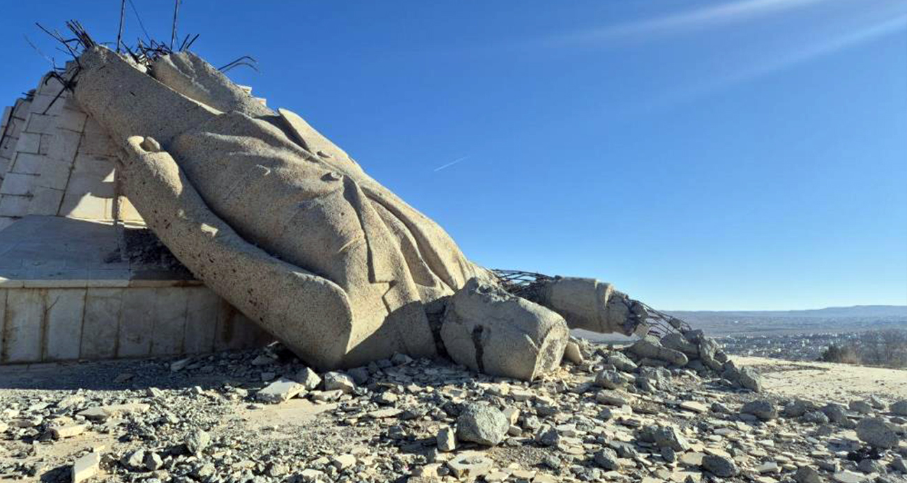 Suriye’de halkın yıktığı Hafız Esad’ın dev heykelinden geriye enkazı kaldı