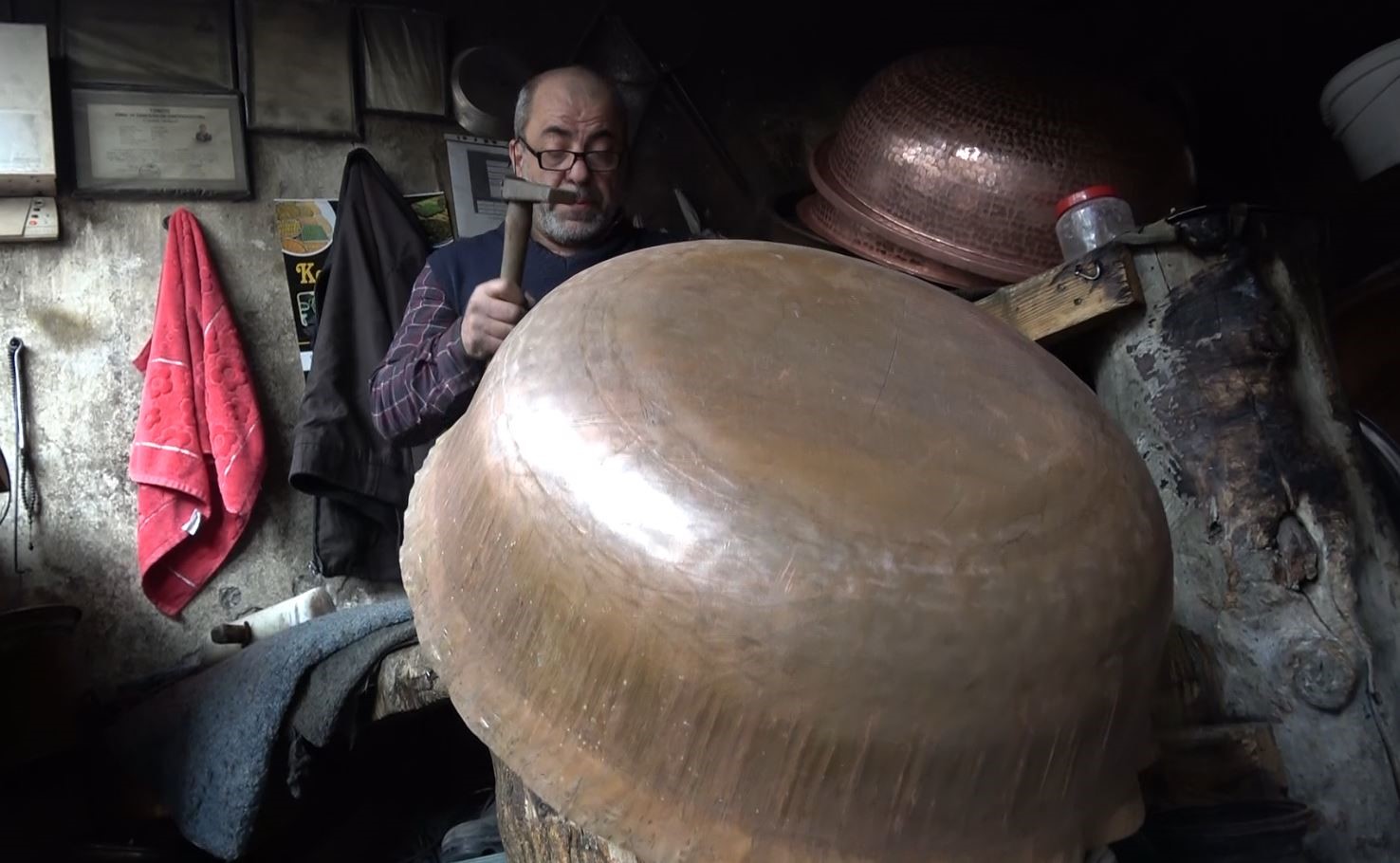 Dövme bakır kazanlar geleneksel yöntemlerle hazırlanıyor