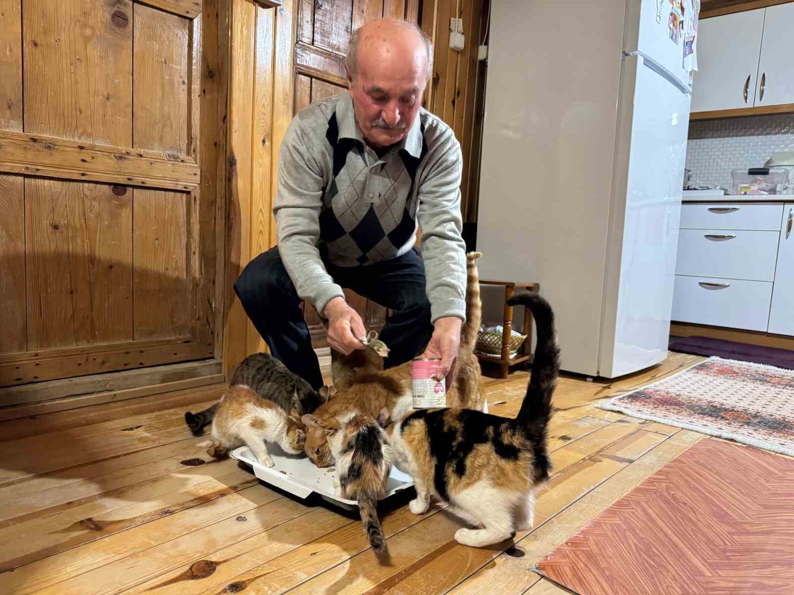 Giresun merkeze bağlı Uzkara köyünde yaşayan Cevat Dilli, evinde 18 kediye bakıyor. Zonguldak’taki kömür madeni işletmesinden emekli olduktan sonra bir süre İstanbul’da yaşayan Dilli, daha sonra eşi Şükran Dilli ile birlikte memleketi Giresun’a dönerek köye yerleşti. Köyde yaşamaya başladıktan sonra sokak kedilerinin zorlu şartlarda yaşam mücadelesi verdiğini fark ettiklerini belirten çift, ilk olarak birkaç kediye mama vererek destek olmaya başladıklarını zamanla 18 kediye ulaştıklarını söyledi. Emekli olduktan sonra yerleştikleri köylerindeki evini kedilere açtığını belirten Cevat Dilli, "Uzun yıllar gurbette yaşadıktan sonra eşimle birlikte köyümüze döndük. Burada sokak kedilerinin zor şartlarda yaşadığını görünce kayıtsız kalamadık. İlk başta birkaç taneydi, zamanla sayıları arttı. Şu an 18 kediye bakıyoruz. Onlar mutlu oldukça biz de mutlu oluyoruz. İlk başlarda sadece kapıda sokak kedilerine bakıyorduk. Zamanla sayıları artan kedilere evimizin kapılarını açtık. Bir kısmının doğum yapmasıyla birlikte kedi sayısı 18’e ulaştı. Evimiz adeta bir kedi yuvasına dönüştü. Hayvanların tüm bakımını kendi imkanlarımızla karşılıyoruz" dedi.