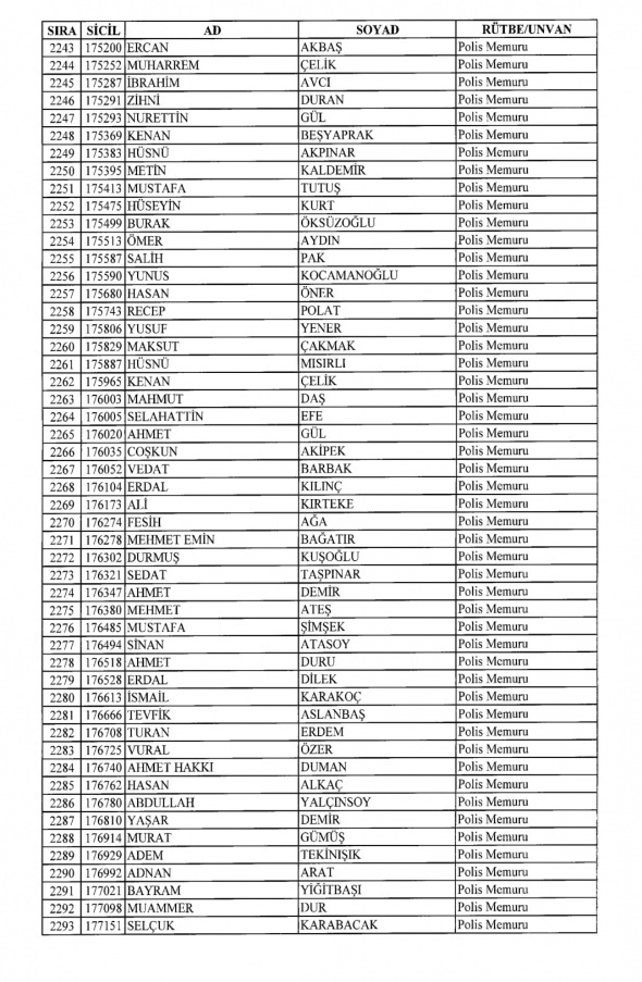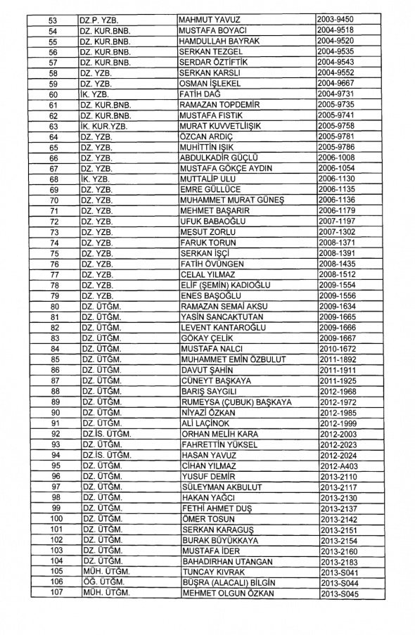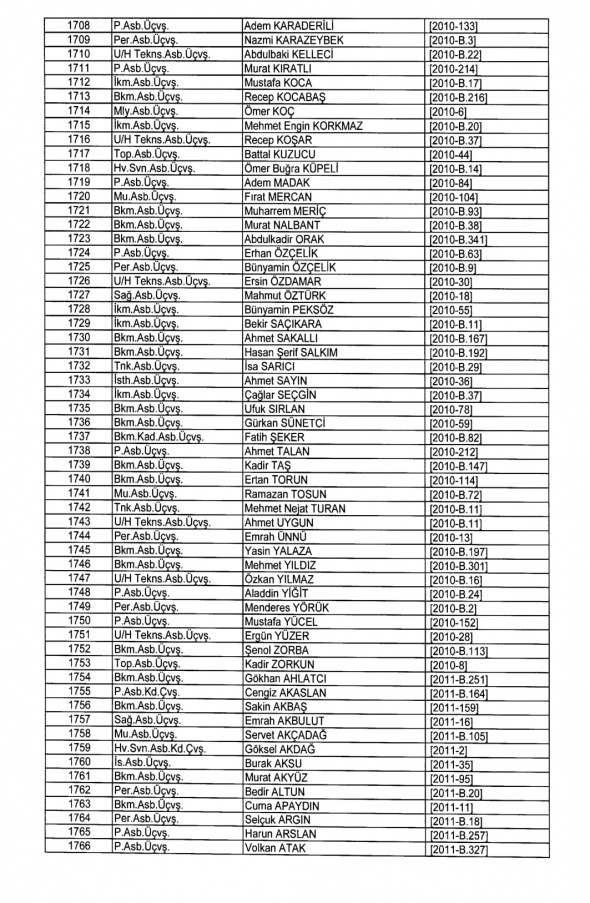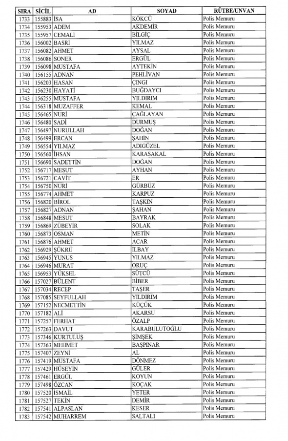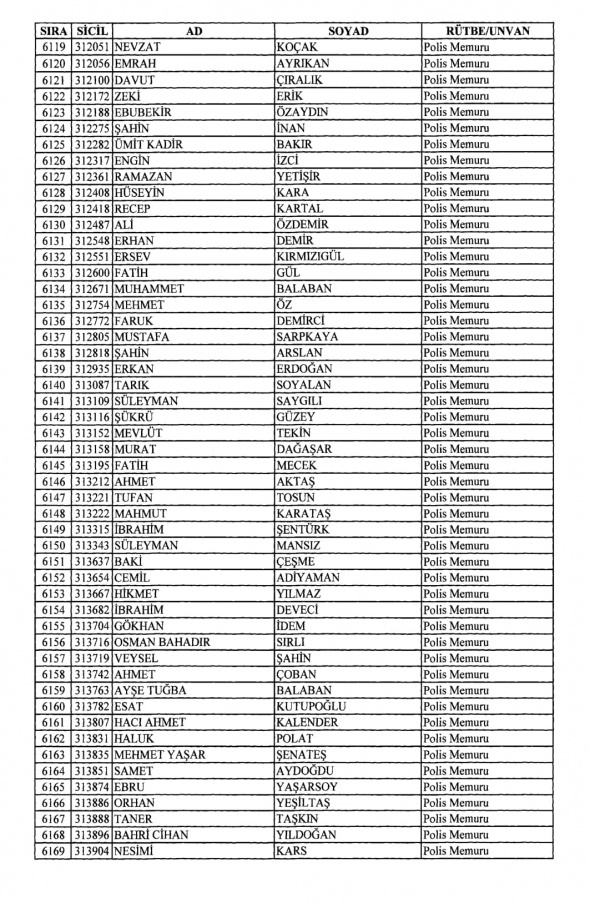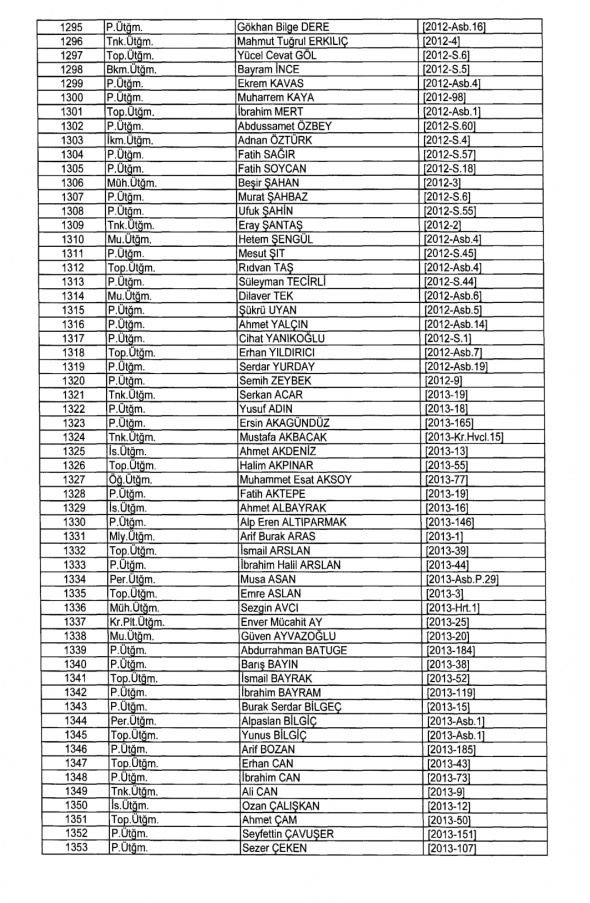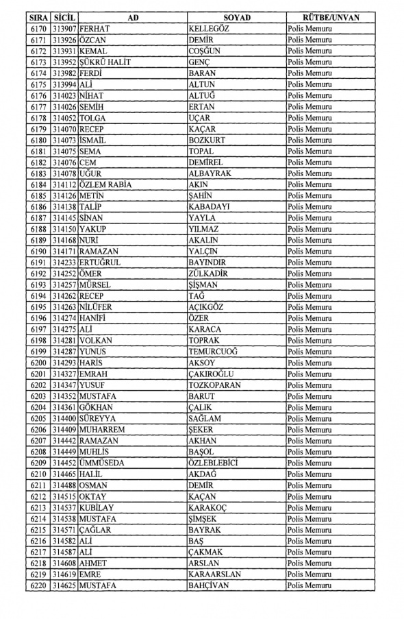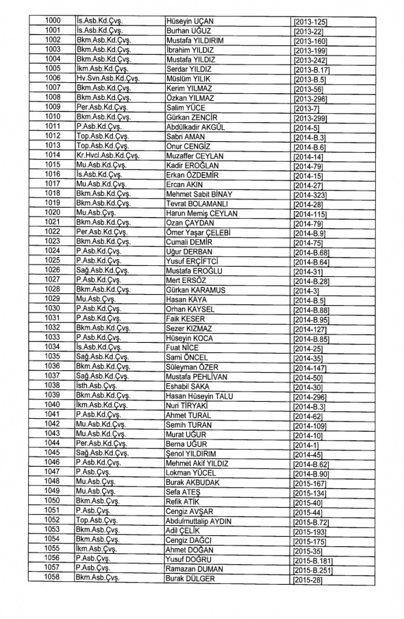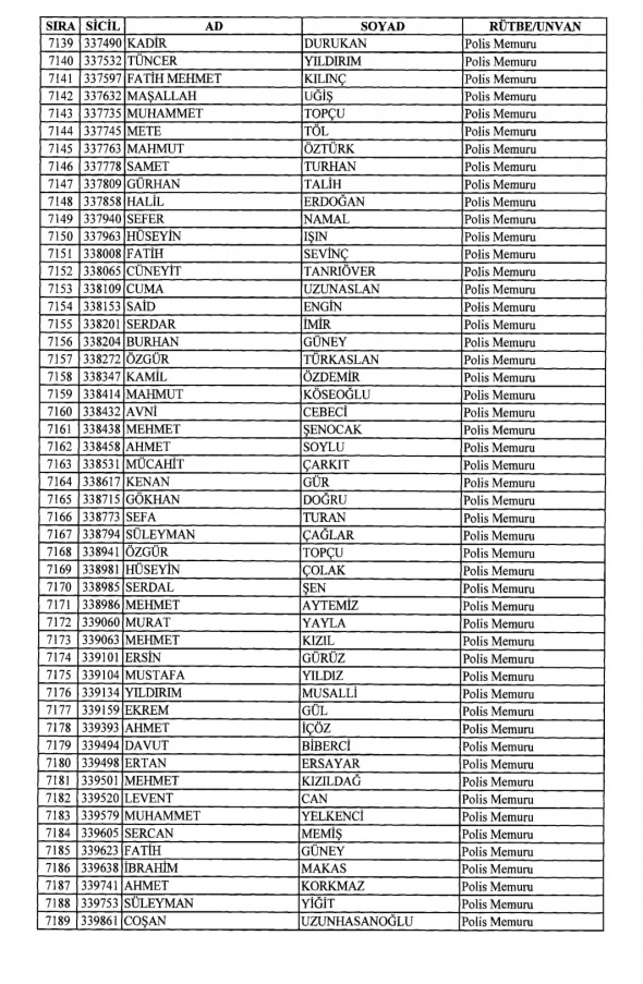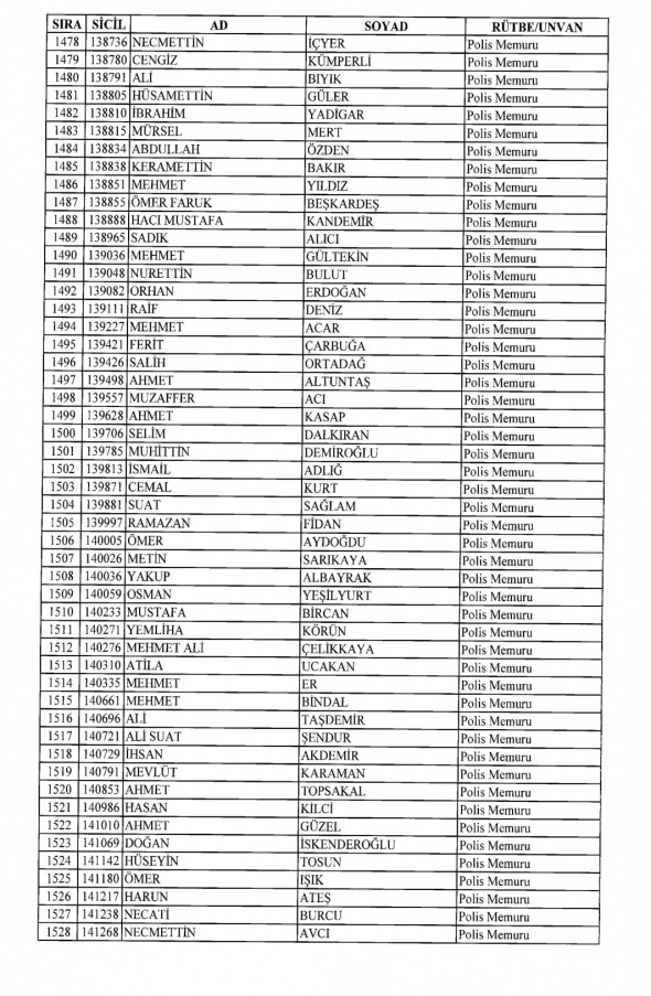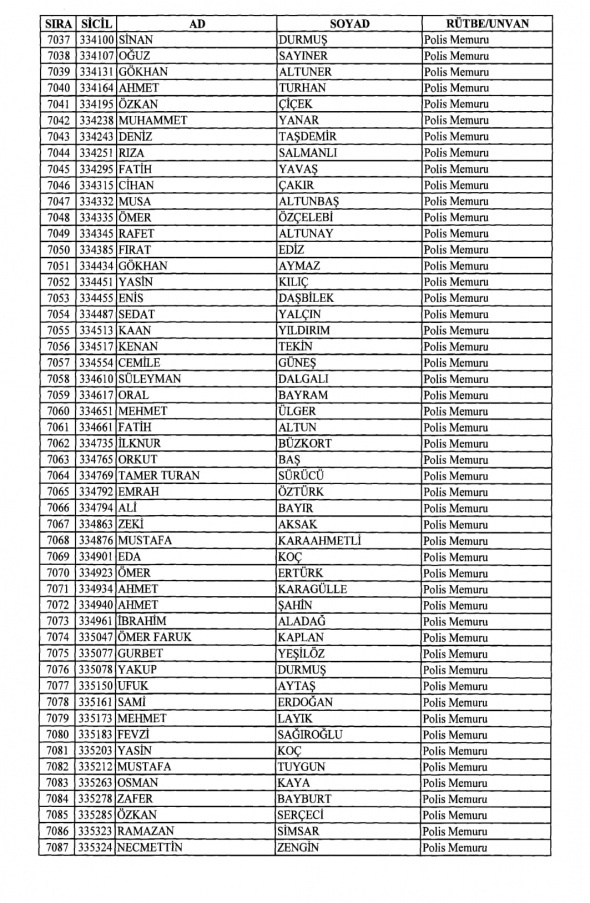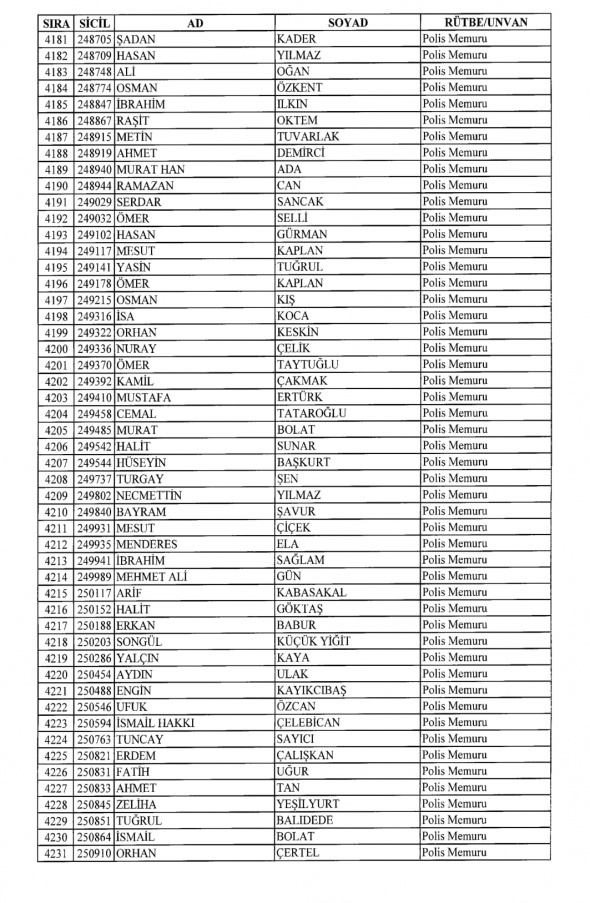 Kararnameye göre, Kara Kuvvetlerinde 240, Deniz Kuvvetlerinde 22, Hava Kuvvetlerinde 62 general, subay ve astsubayın rütbeleri ve emeklilik hakları ellerinden alınırken, İçişleri Bakanlığı Emniyet Genel Müdürlüğünden bin 167, Jandarma Genel Komutanlığından 35 emekli personelin rütbeleri alındı.