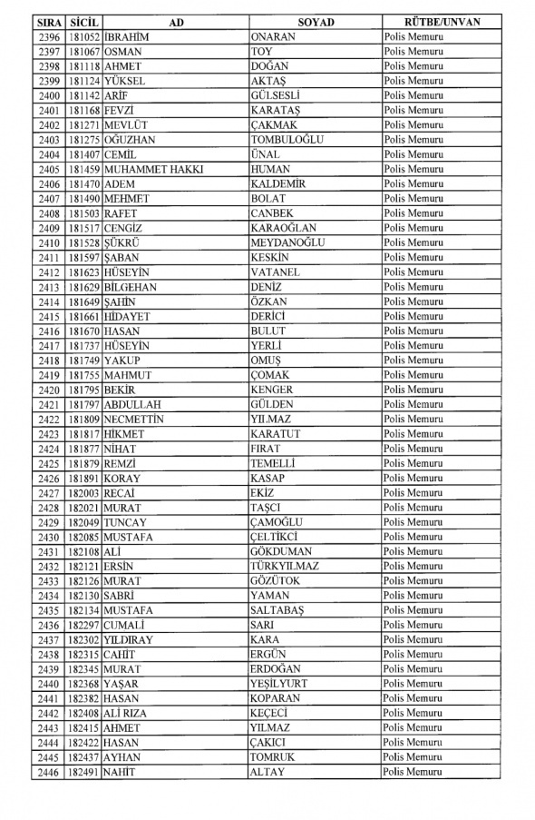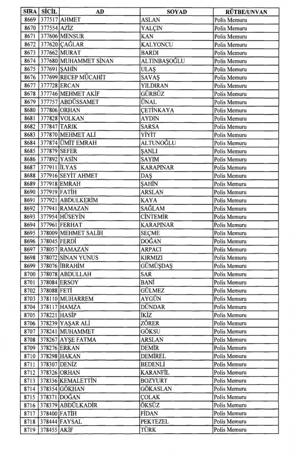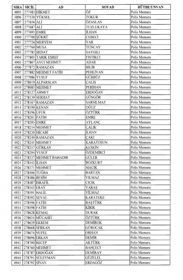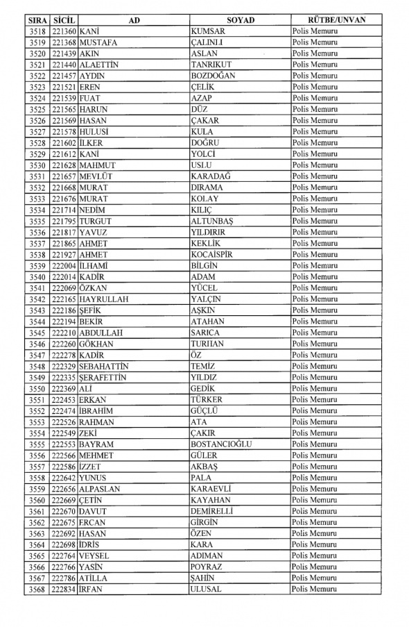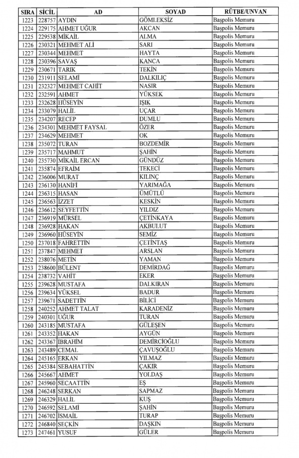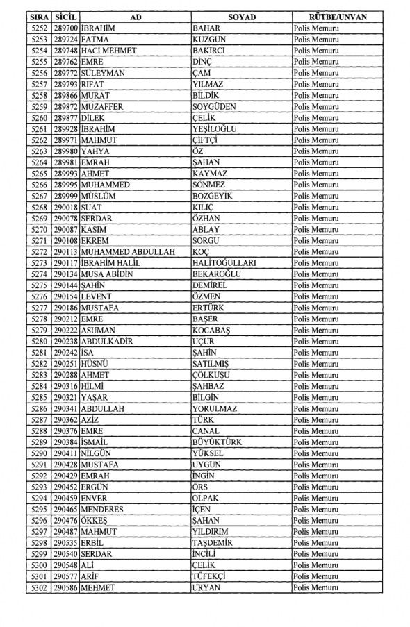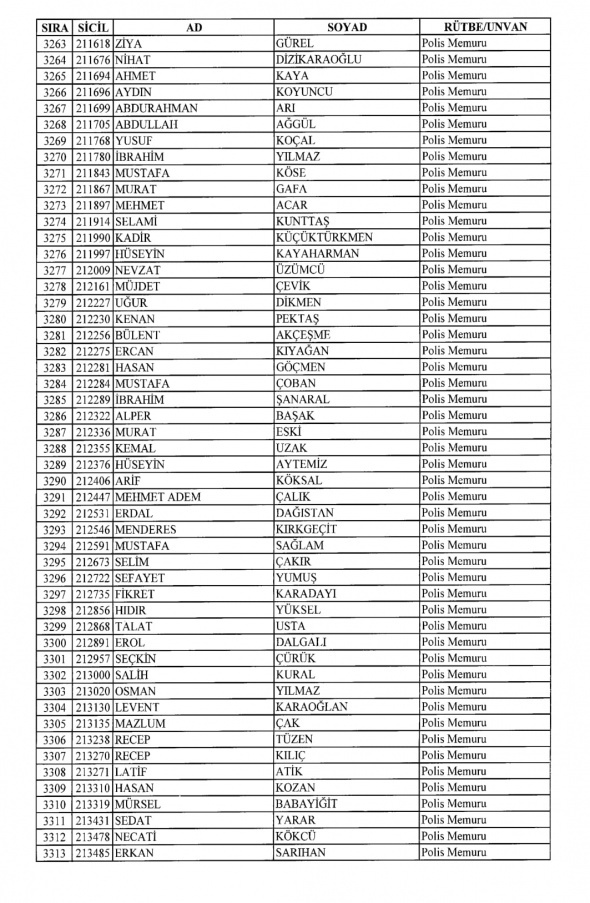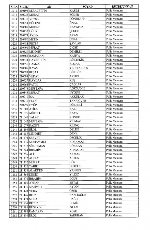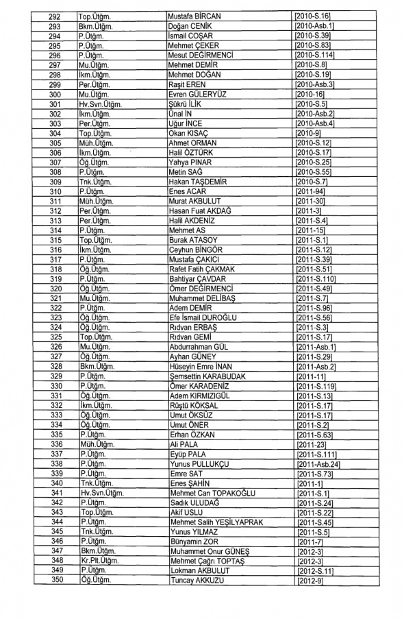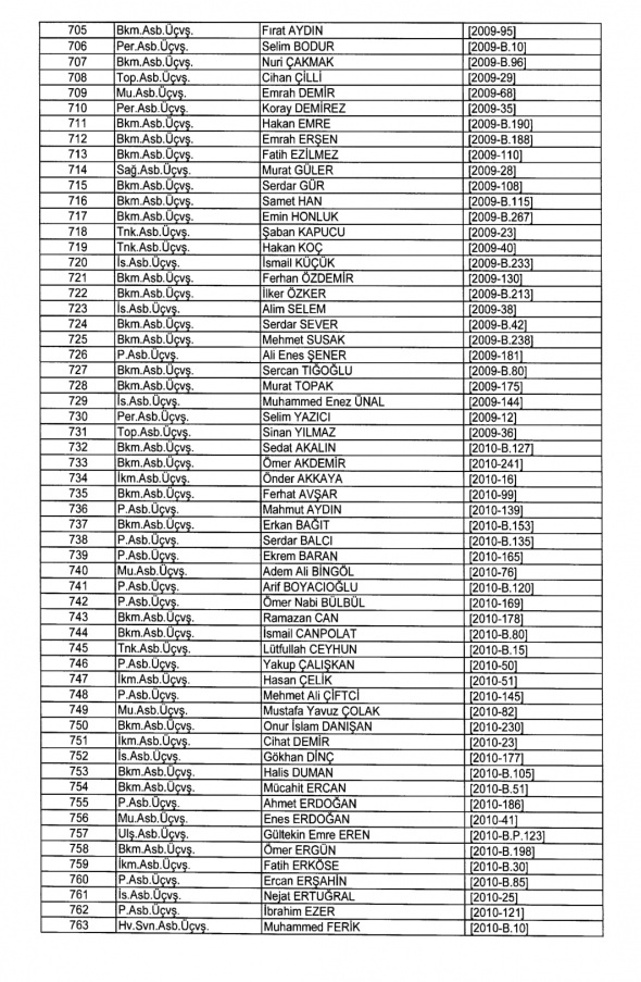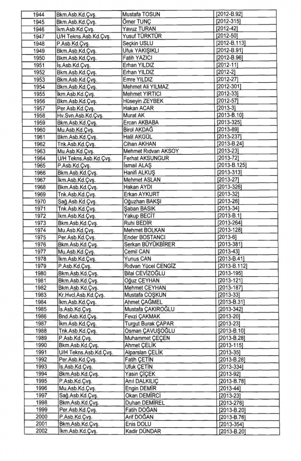 Kararnameye göre, Kara Kuvvetlerinde 240, Deniz Kuvvetlerinde 22, Hava Kuvvetlerinde 62 general, subay ve astsubayın rütbeleri ve emeklilik hakları ellerinden alınırken, İçişleri Bakanlığı Emniyet Genel Müdürlüğünden bin 167, Jandarma Genel Komutanlığından 35 emekli personelin rütbeleri alındı.