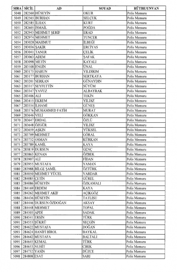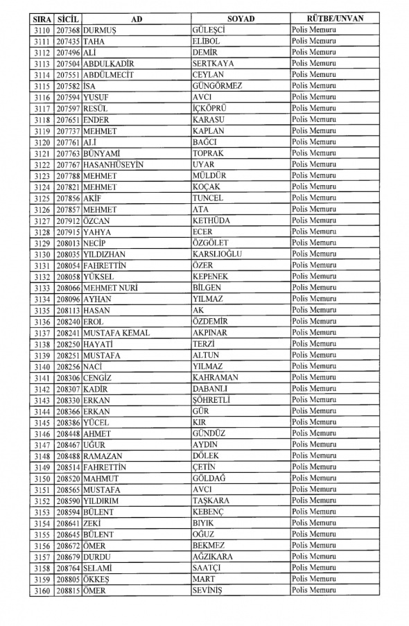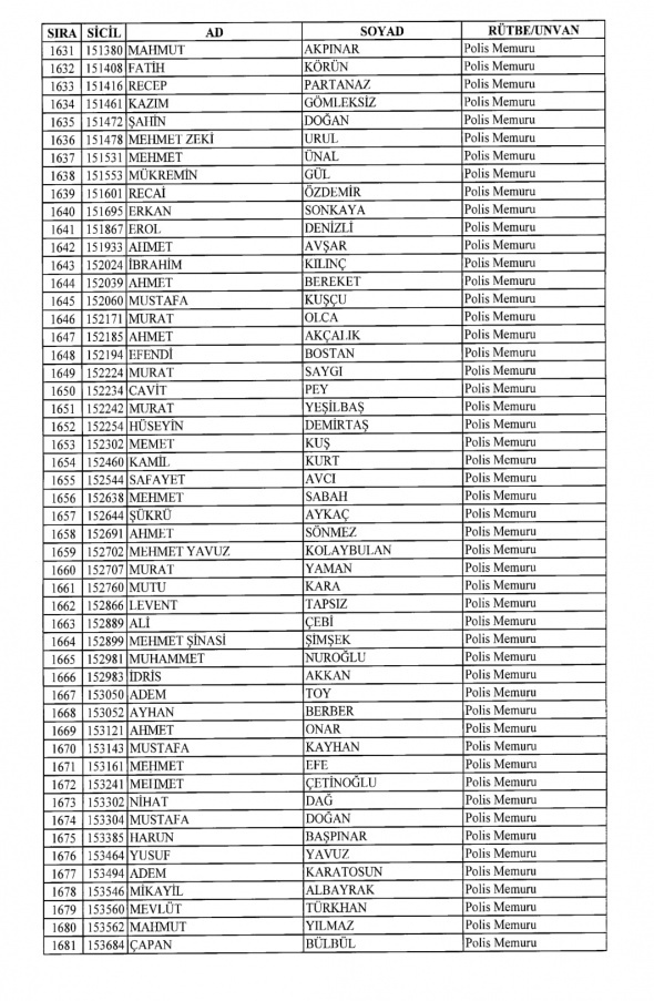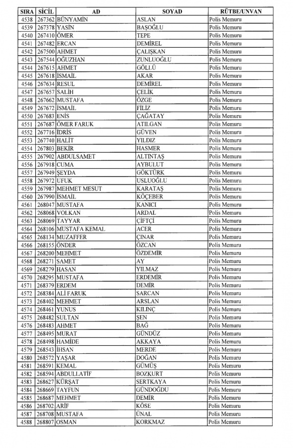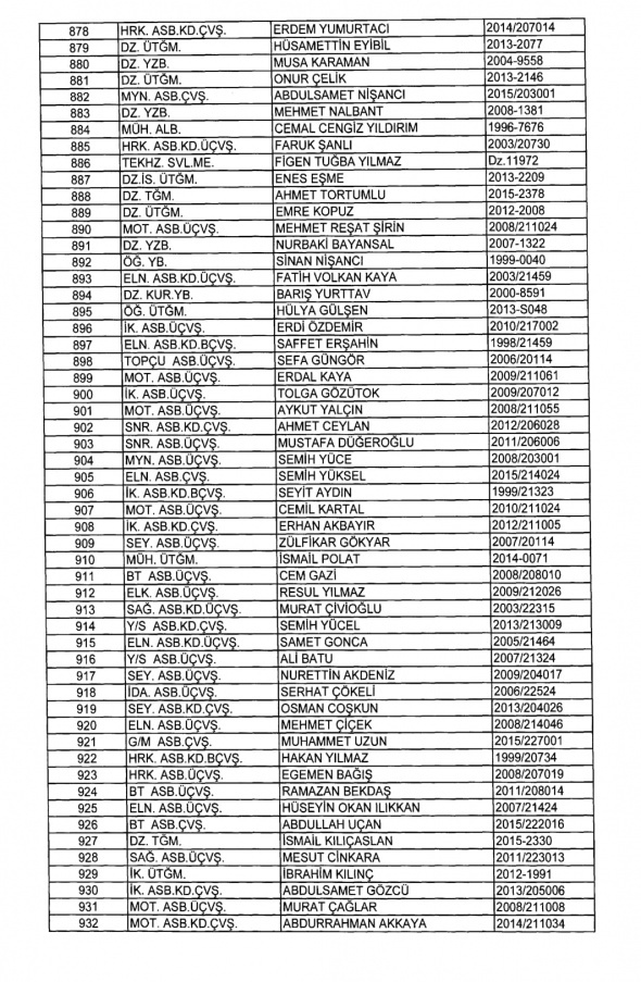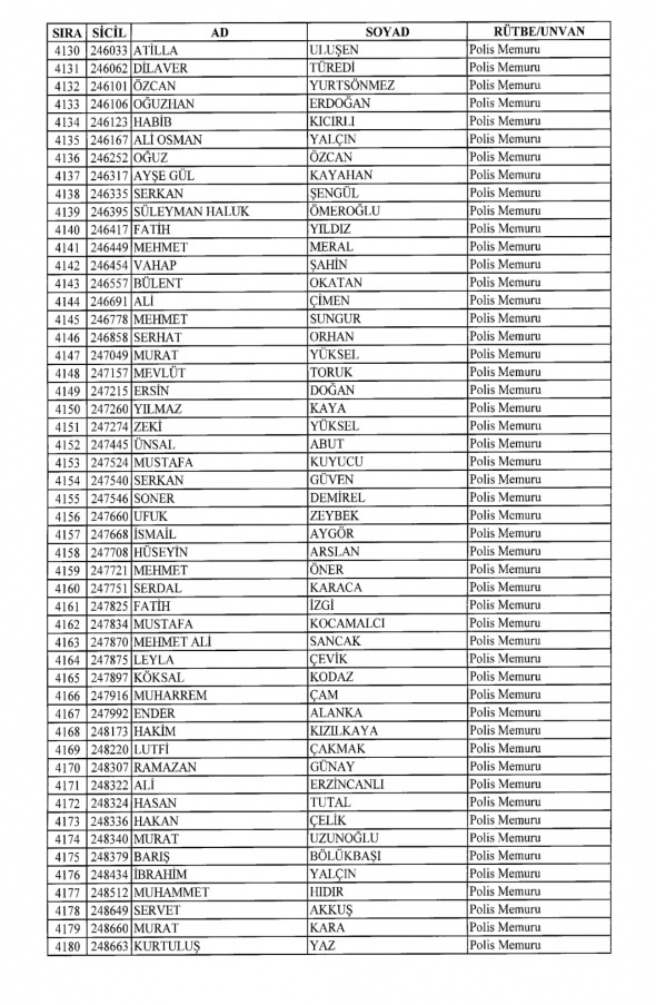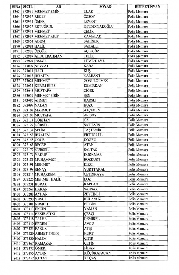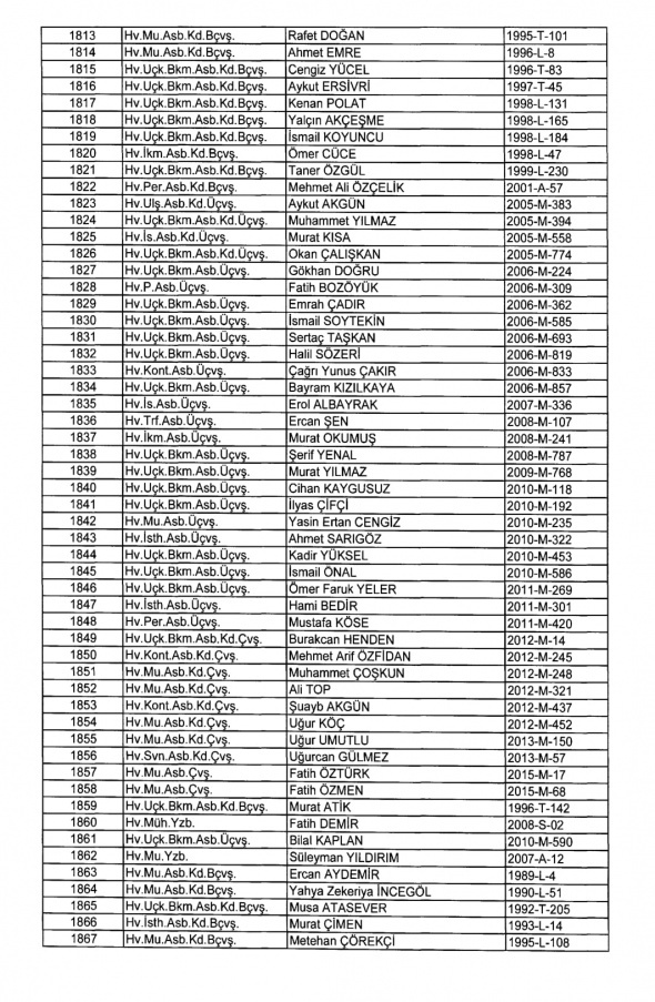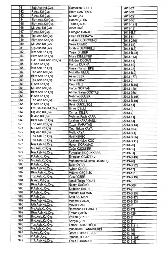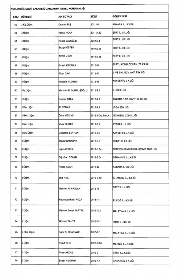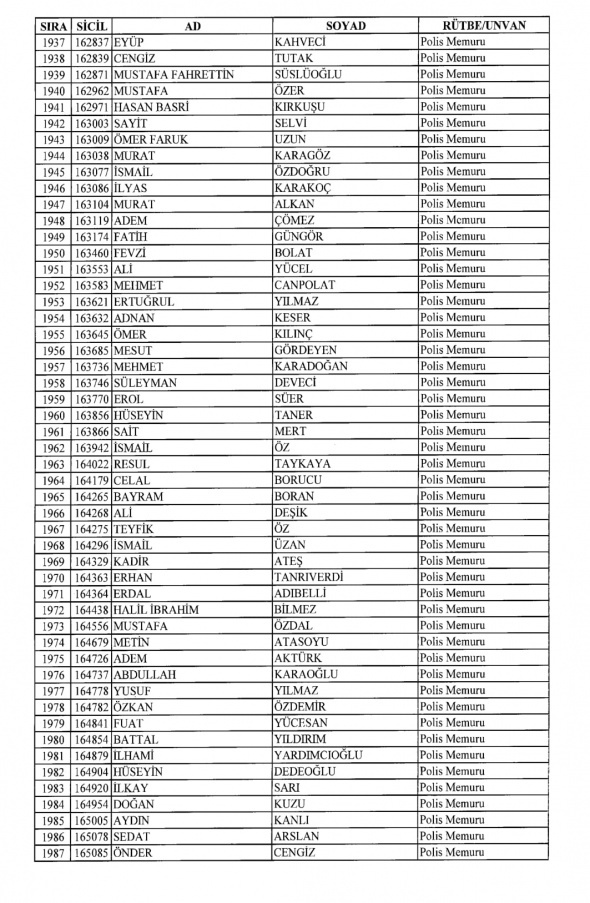 Kararnameye göre, Kara Kuvvetlerinde 240, Deniz Kuvvetlerinde 22, Hava Kuvvetlerinde 62 general, subay ve astsubayın rütbeleri ve emeklilik hakları ellerinden alınırken, İçişleri Bakanlığı Emniyet Genel Müdürlüğünden bin 167, Jandarma Genel Komutanlığından 35 emekli personelin rütbeleri alındı.