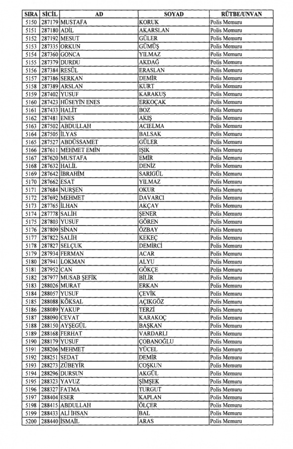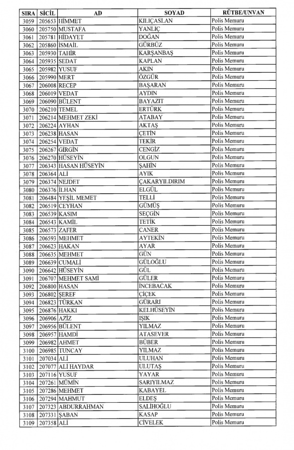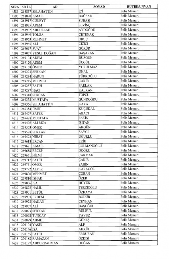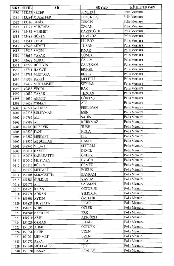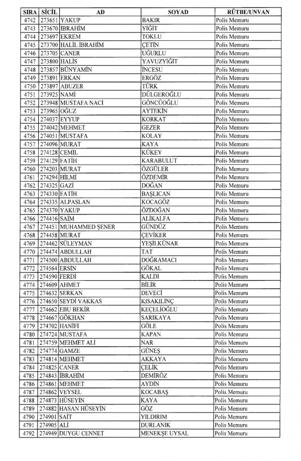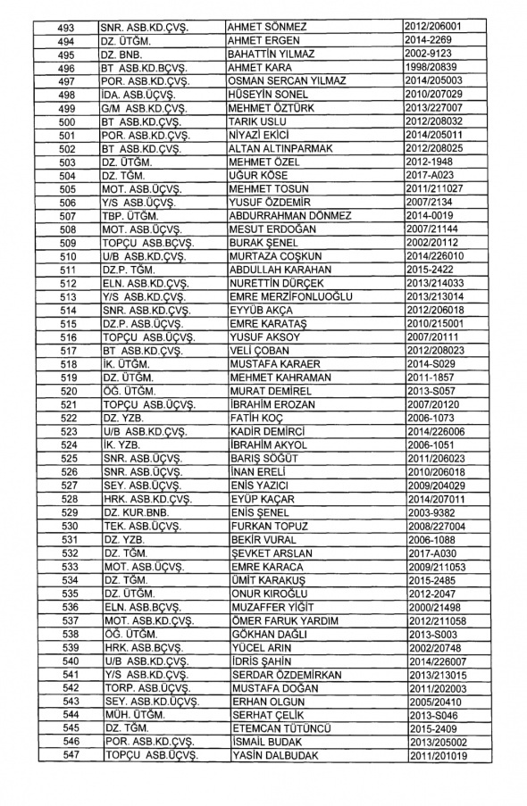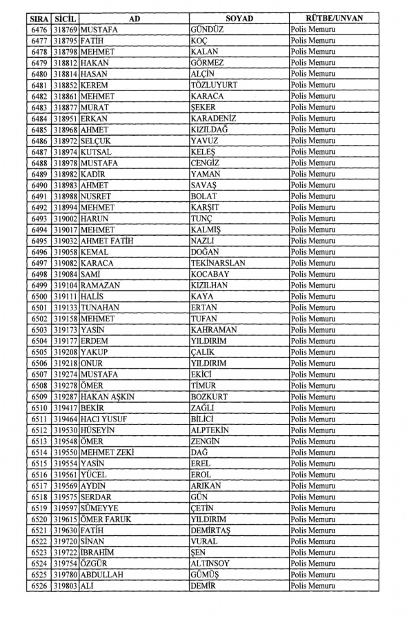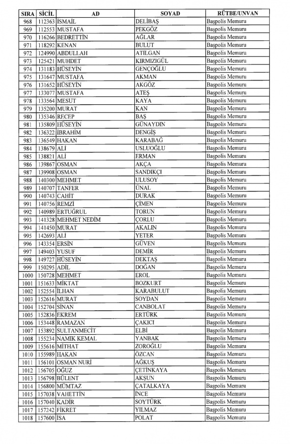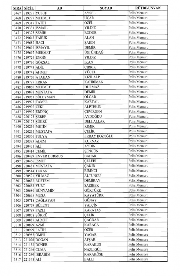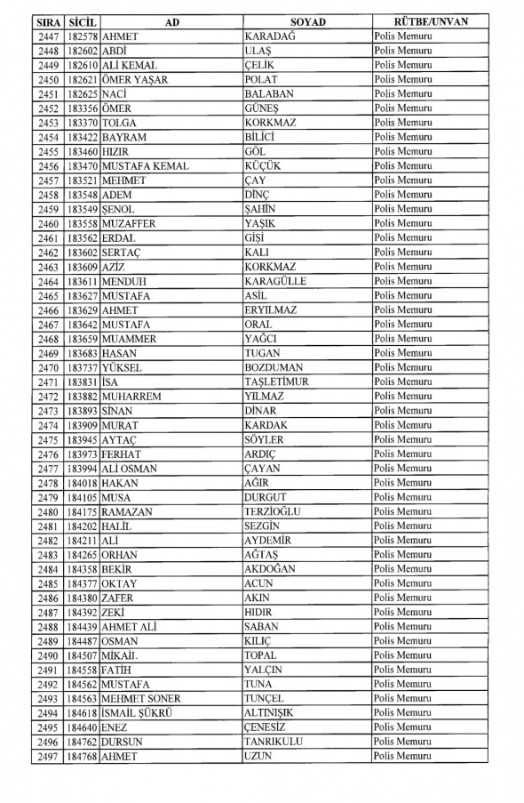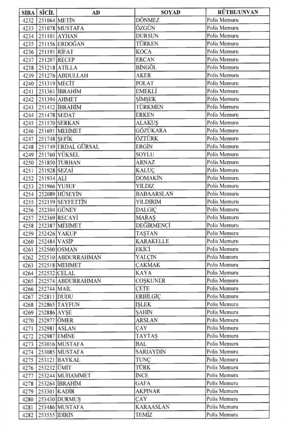 Kararnameye göre, Kara Kuvvetlerinde 240, Deniz Kuvvetlerinde 22, Hava Kuvvetlerinde 62 general, subay ve astsubayın rütbeleri ve emeklilik hakları ellerinden alınırken, İçişleri Bakanlığı Emniyet Genel Müdürlüğünden bin 167, Jandarma Genel Komutanlığından 35 emekli personelin rütbeleri alındı.