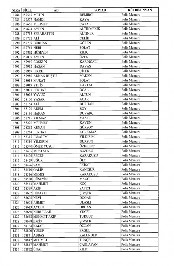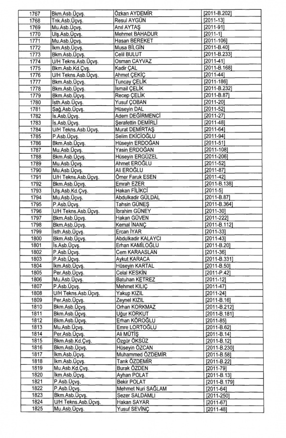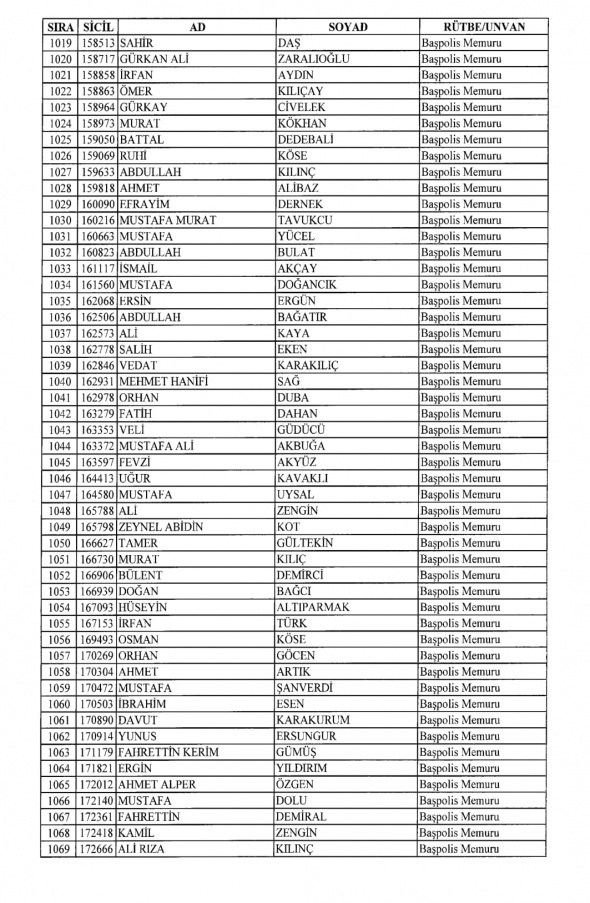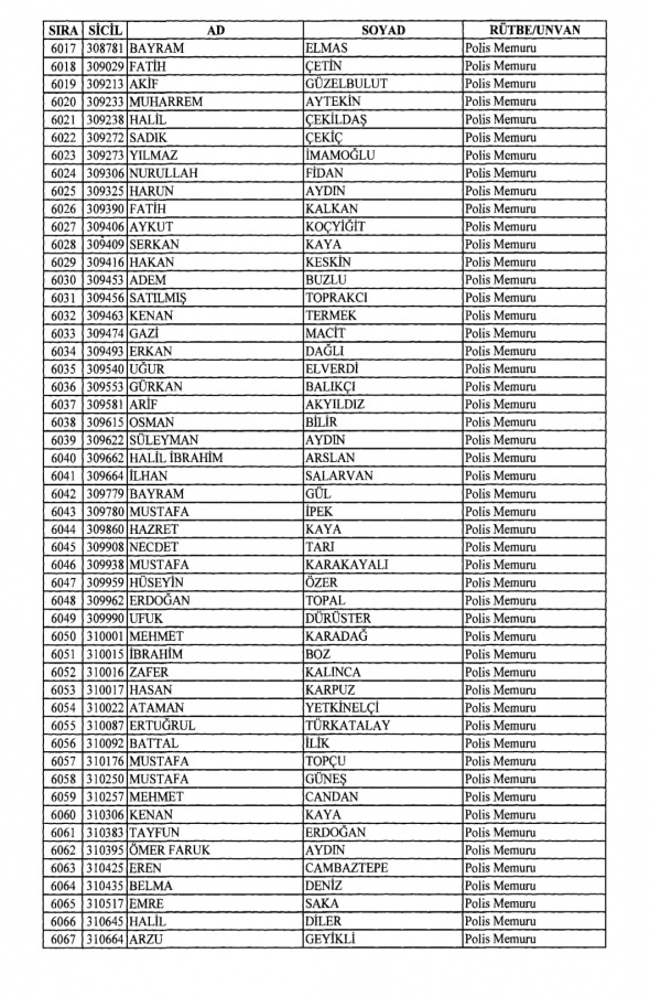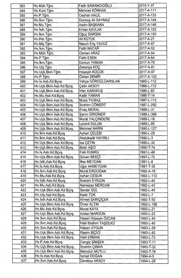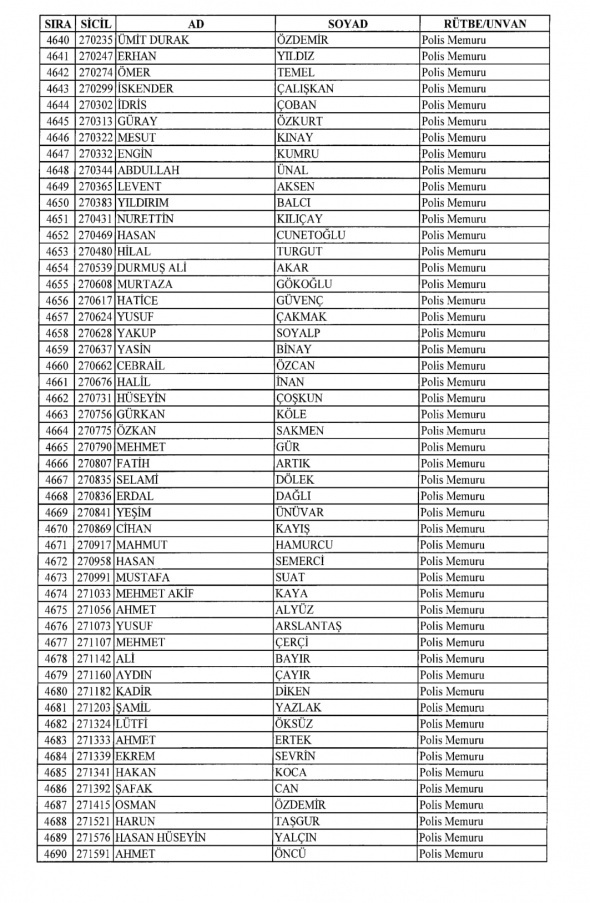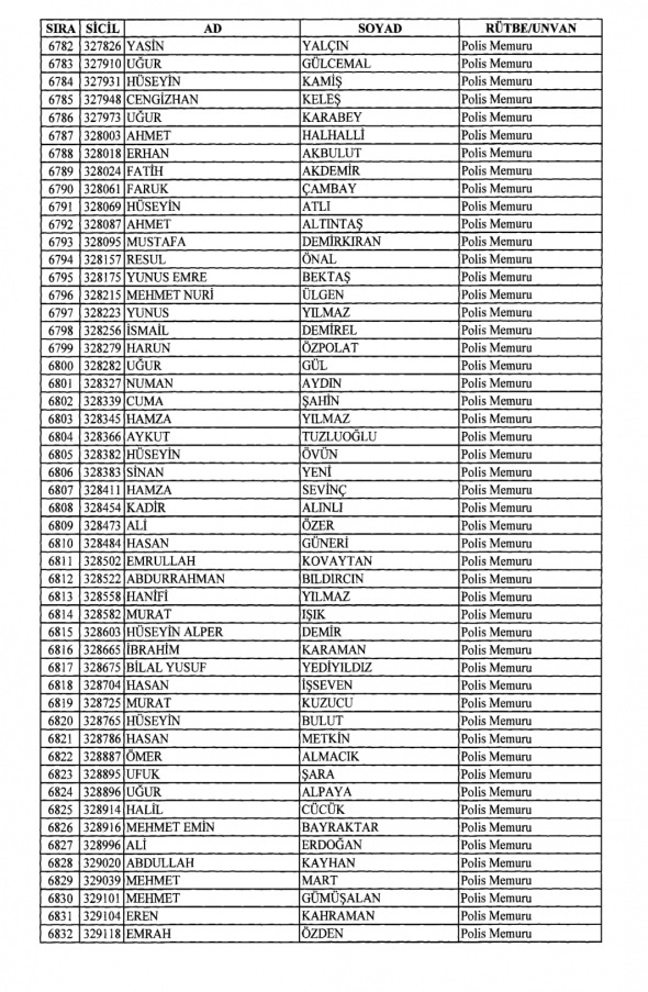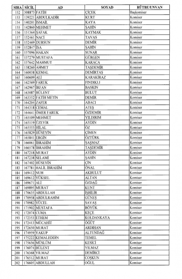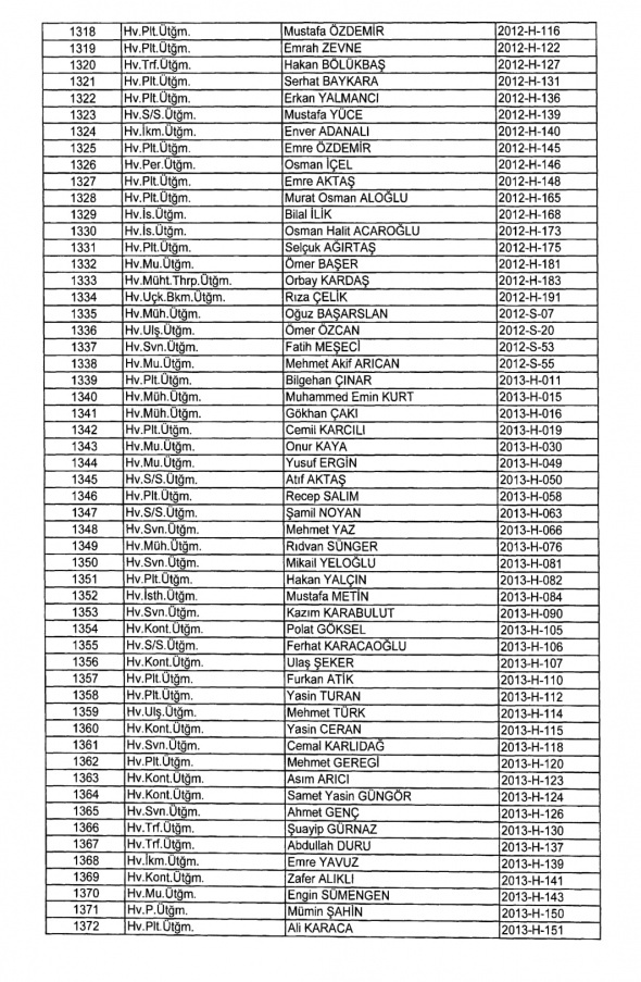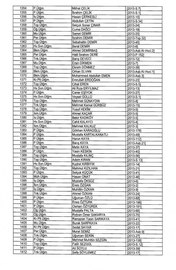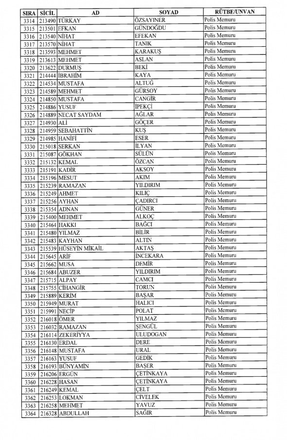 Kararnameye göre, Kara Kuvvetlerinde 240, Deniz Kuvvetlerinde 22, Hava Kuvvetlerinde 62 general, subay ve astsubayın rütbeleri ve emeklilik hakları ellerinden alınırken, İçişleri Bakanlığı Emniyet Genel Müdürlüğünden bin 167, Jandarma Genel Komutanlığından 35 emekli personelin rütbeleri alındı.