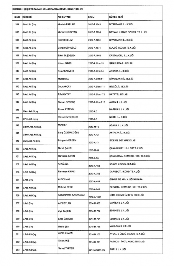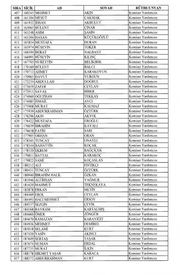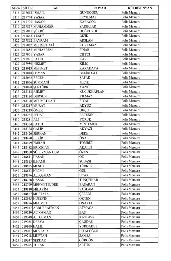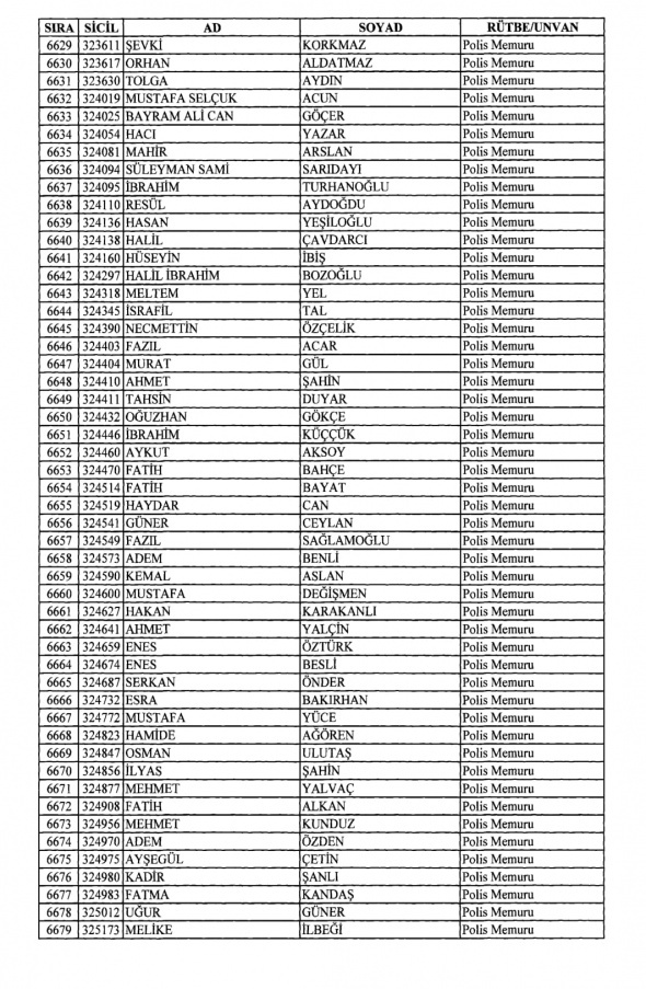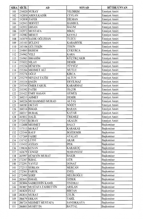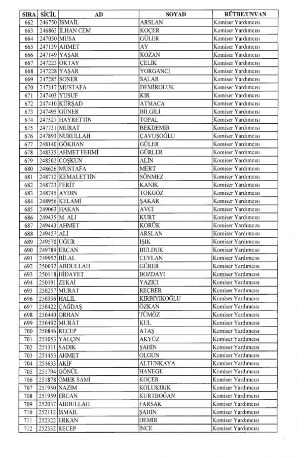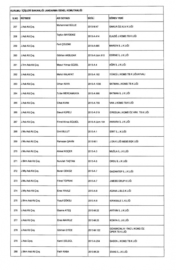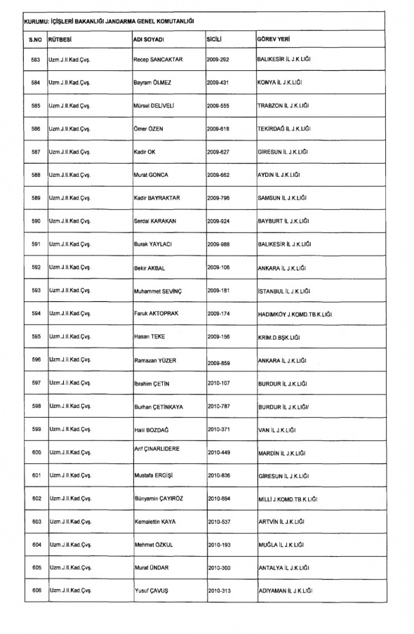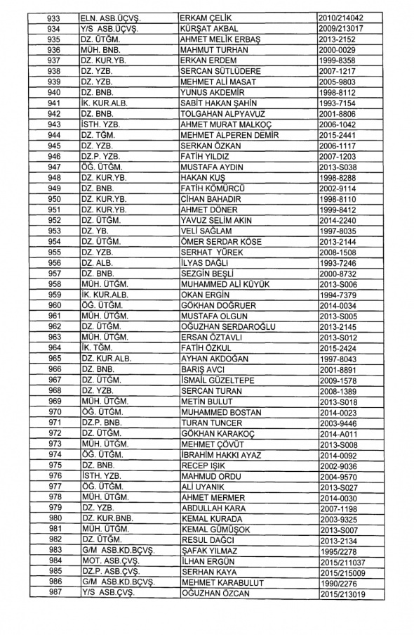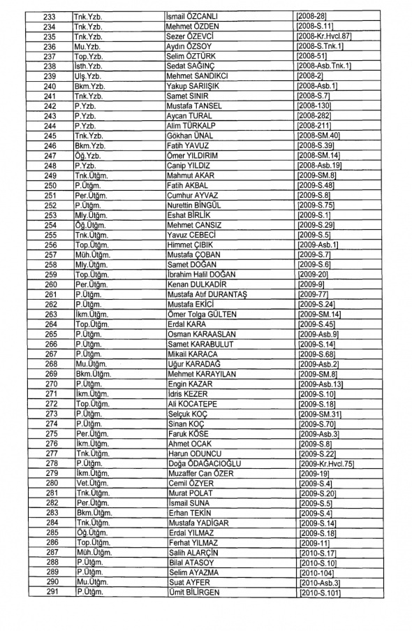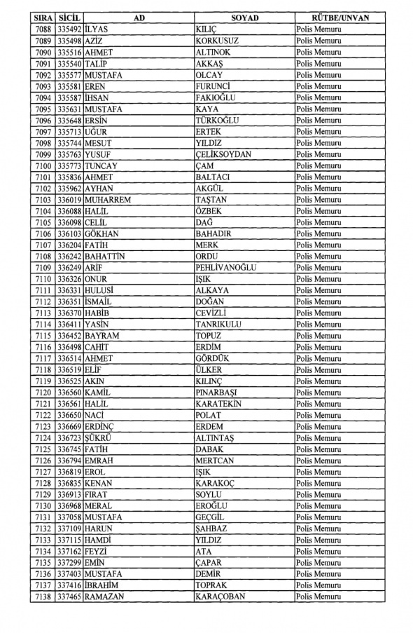 Kararnameye göre, Kara Kuvvetlerinde 240, Deniz Kuvvetlerinde 22, Hava Kuvvetlerinde 62 general, subay ve astsubayın rütbeleri ve emeklilik hakları ellerinden alınırken, İçişleri Bakanlığı Emniyet Genel Müdürlüğünden bin 167, Jandarma Genel Komutanlığından 35 emekli personelin rütbeleri alındı.