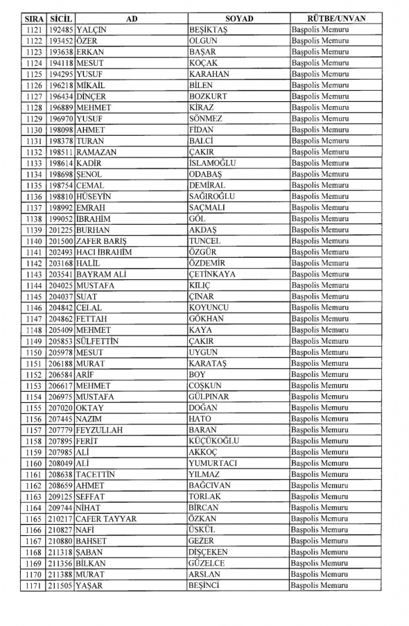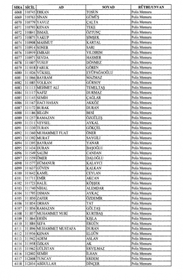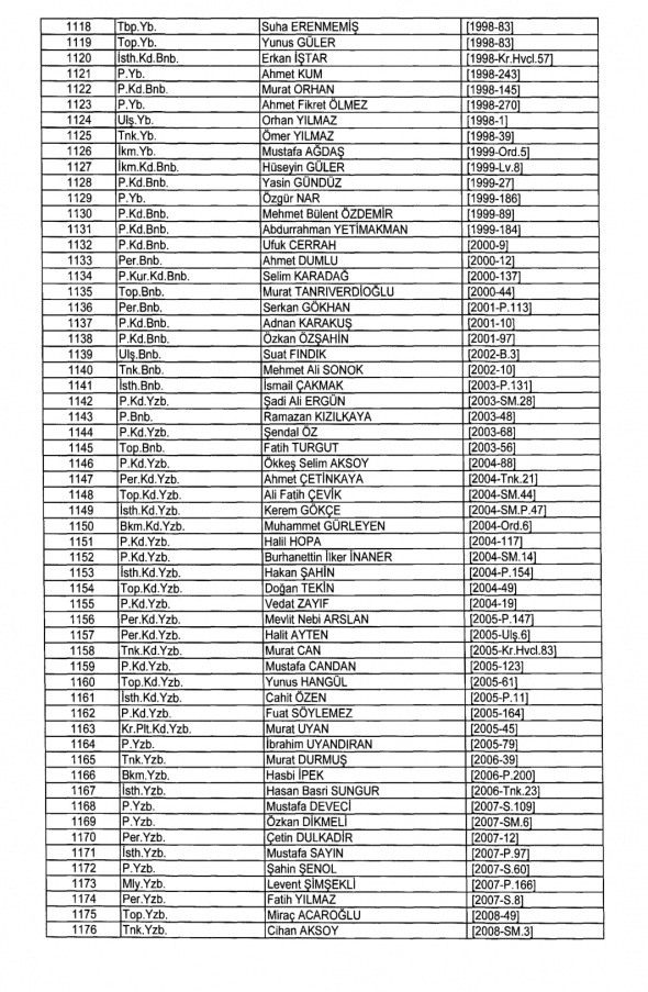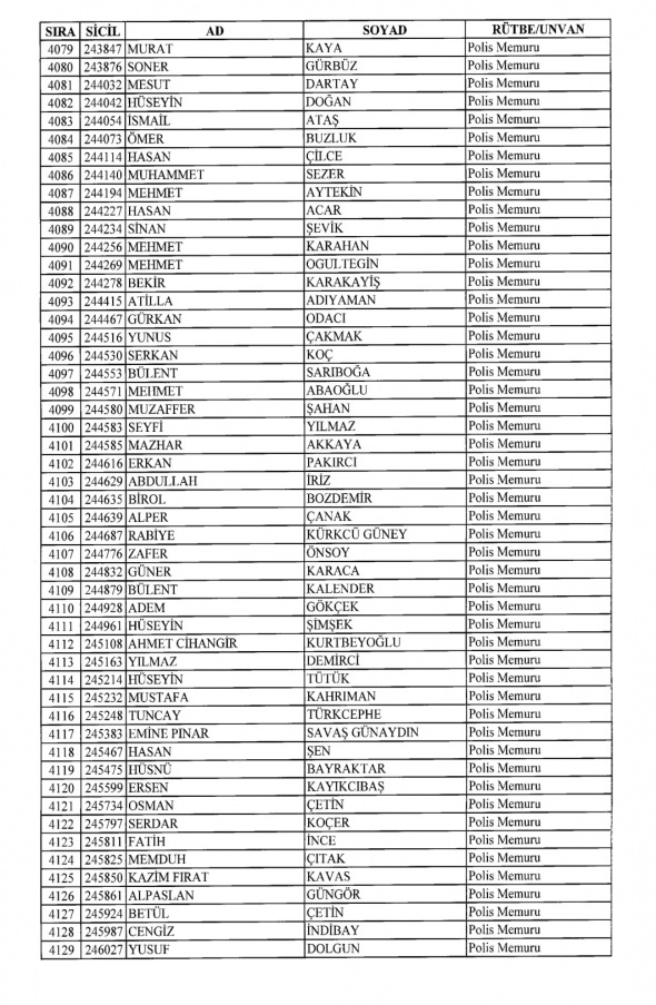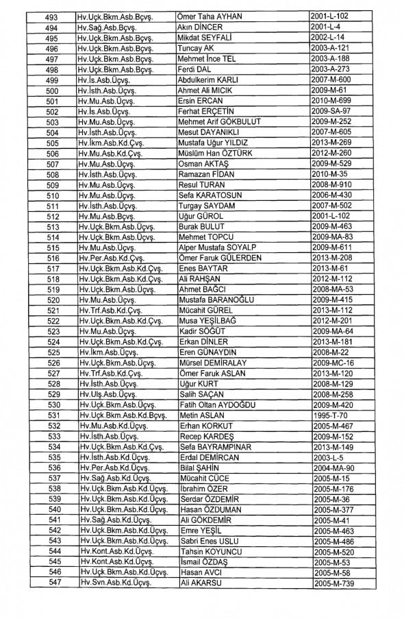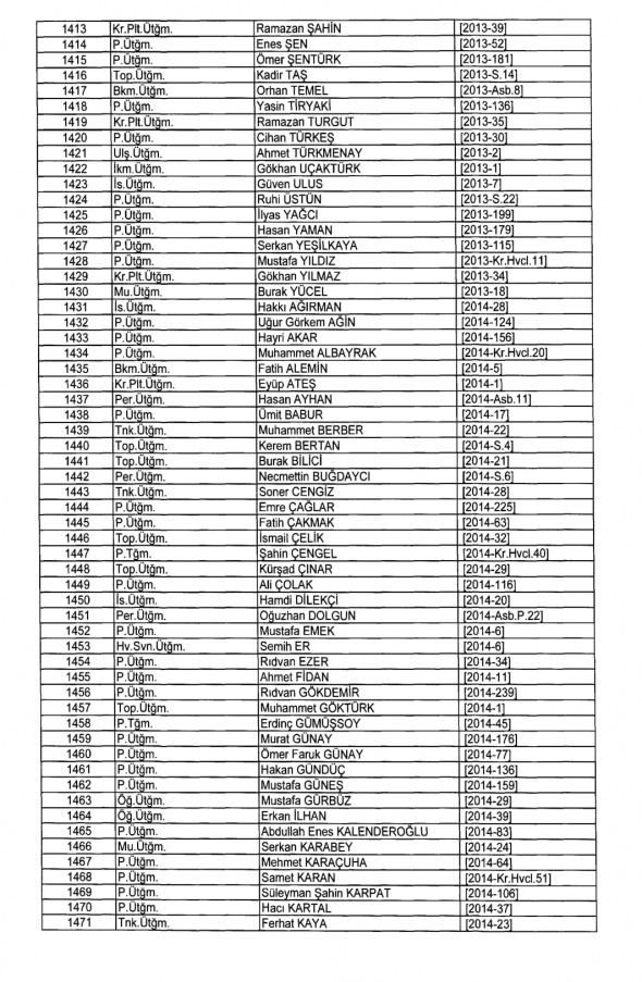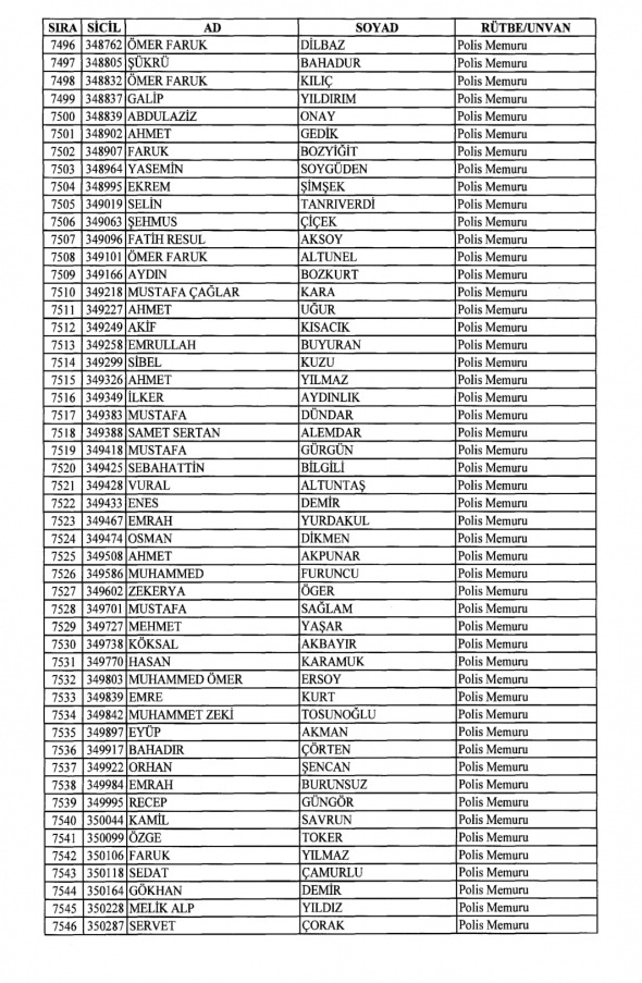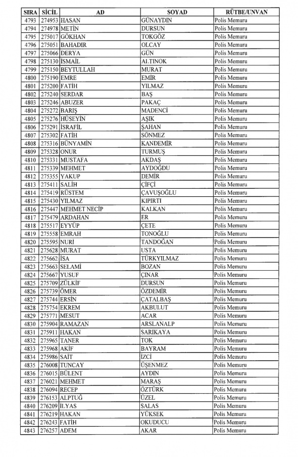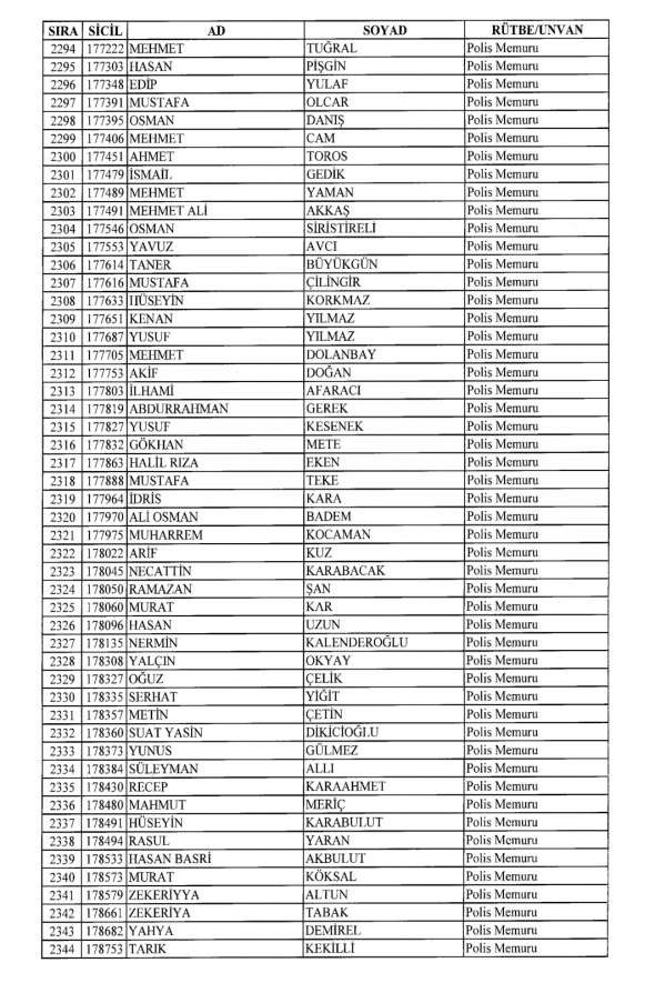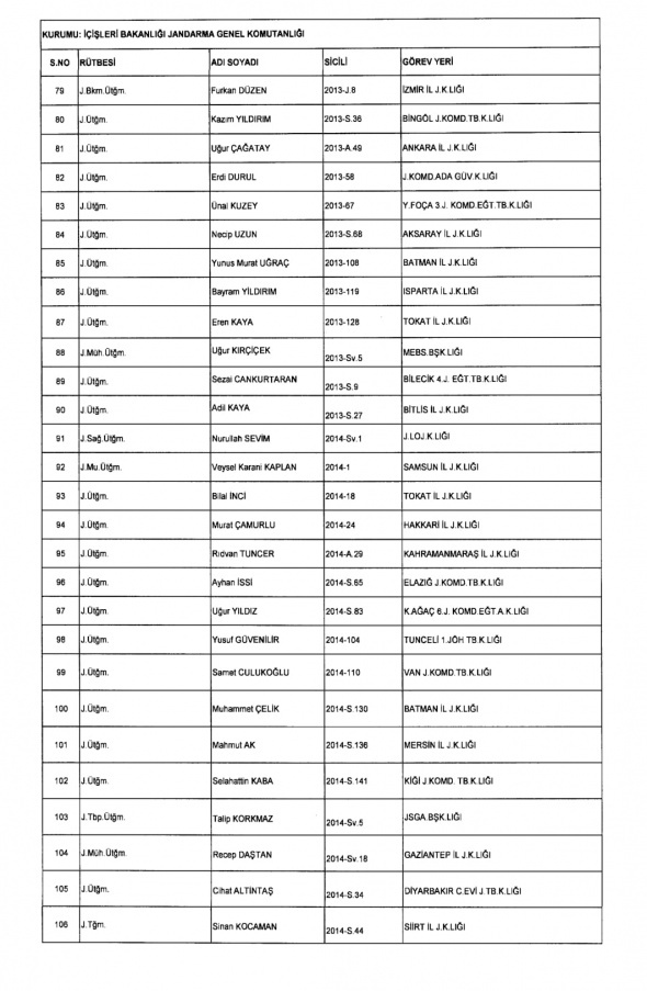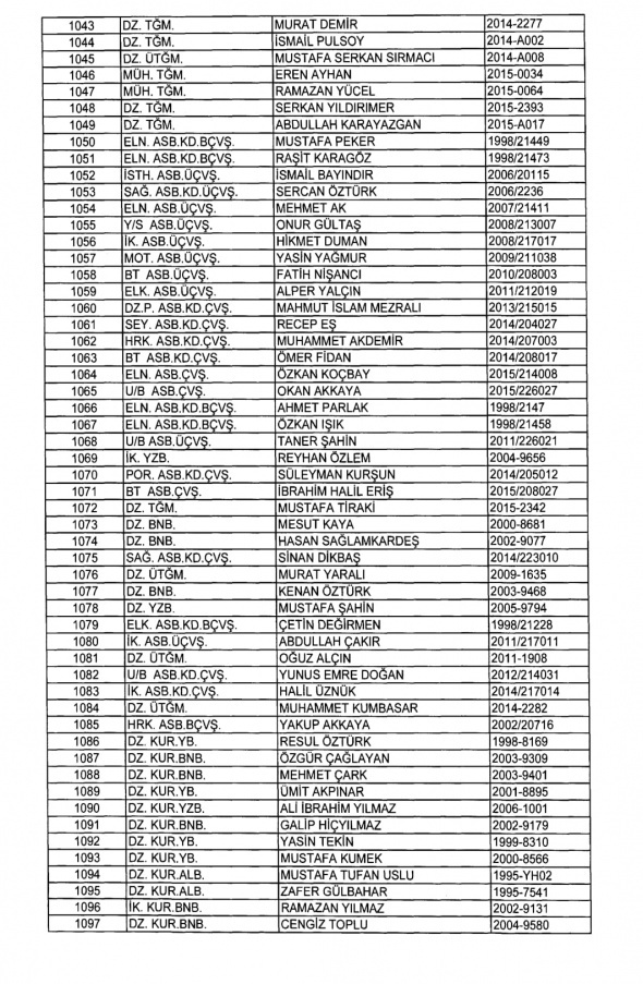 Kararnameye göre, Kara Kuvvetlerinde 240, Deniz Kuvvetlerinde 22, Hava Kuvvetlerinde 62 general, subay ve astsubayın rütbeleri ve emeklilik hakları ellerinden alınırken, İçişleri Bakanlığı Emniyet Genel Müdürlüğünden bin 167, Jandarma Genel Komutanlığından 35 emekli personelin rütbeleri alındı.