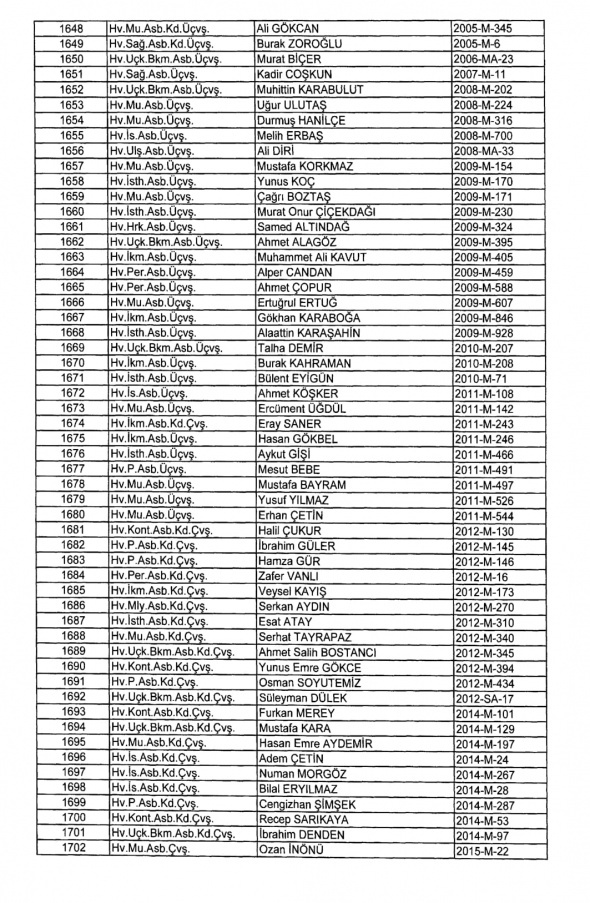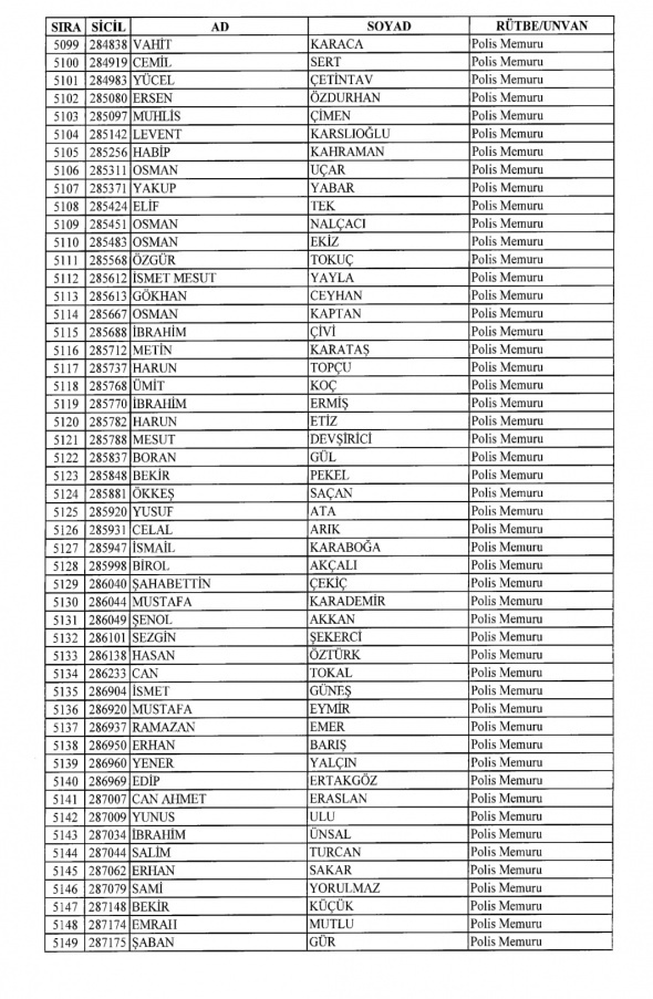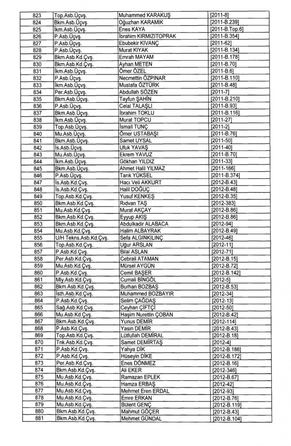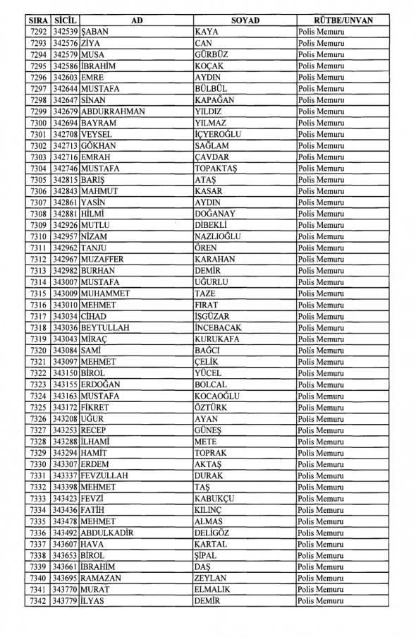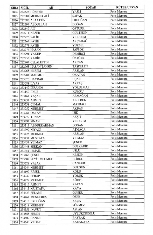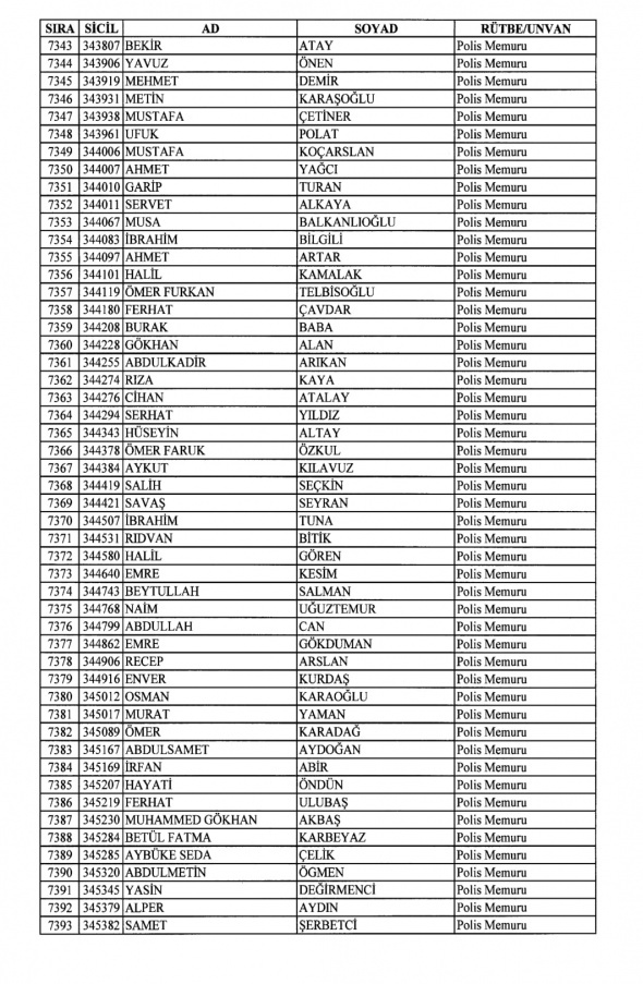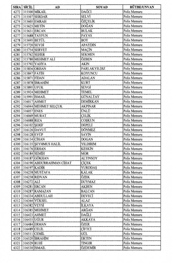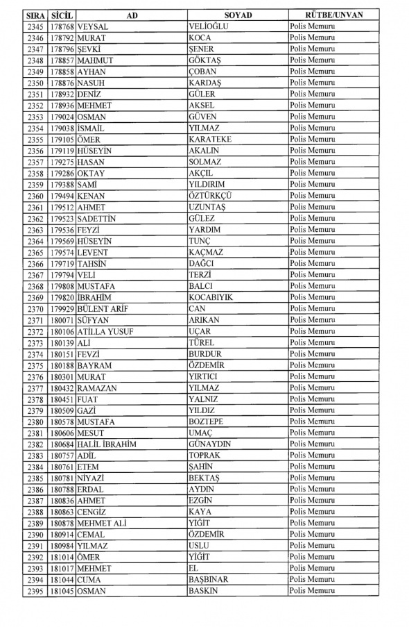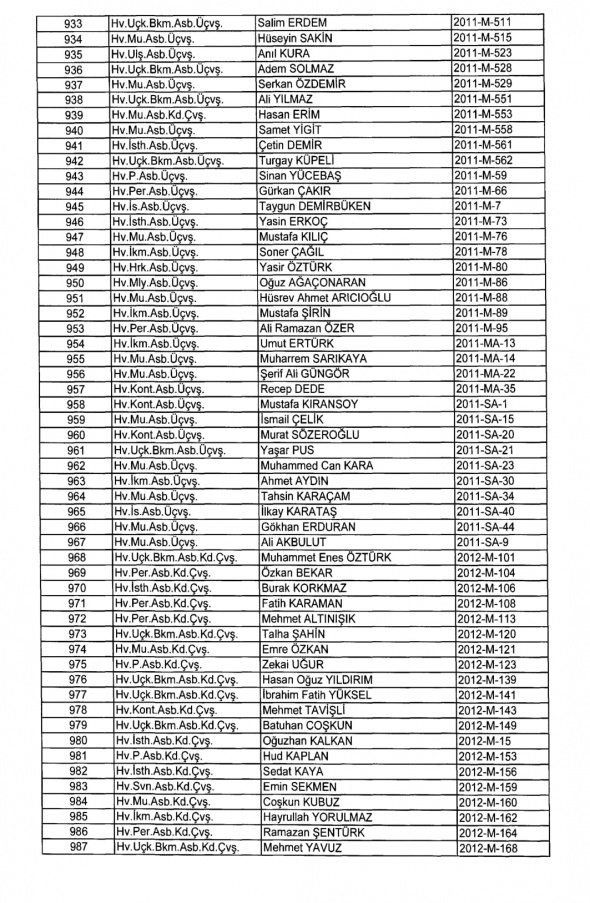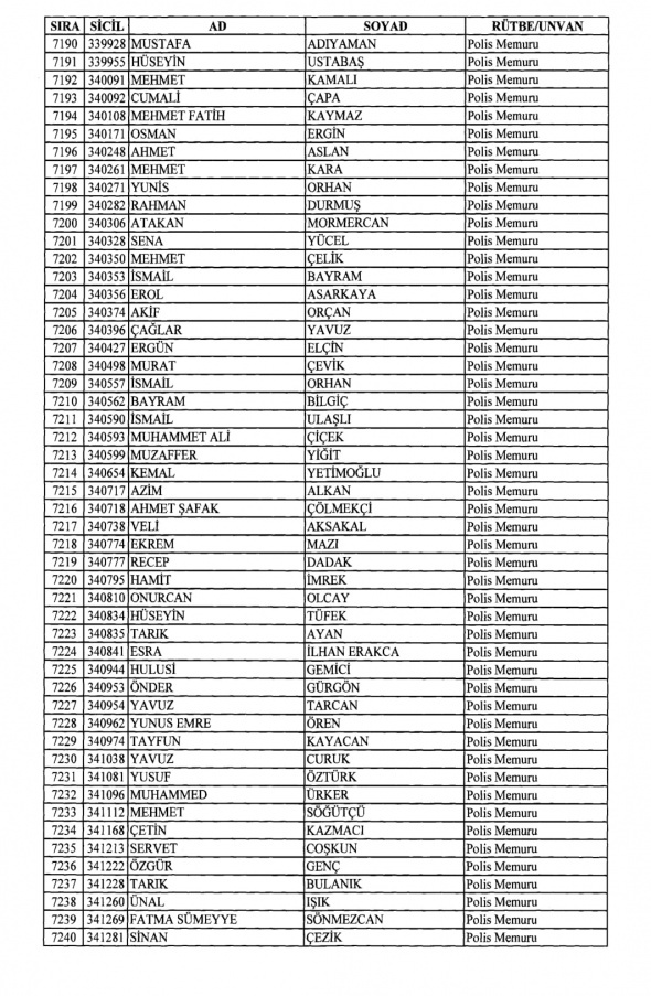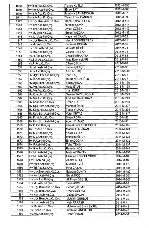 Kararnameye göre, Kara Kuvvetlerinde 240, Deniz Kuvvetlerinde 22, Hava Kuvvetlerinde 62 general, subay ve astsubayın rütbeleri ve emeklilik hakları ellerinden alınırken, İçişleri Bakanlığı Emniyet Genel Müdürlüğünden bin 167, Jandarma Genel Komutanlığından 35 emekli personelin rütbeleri alındı.