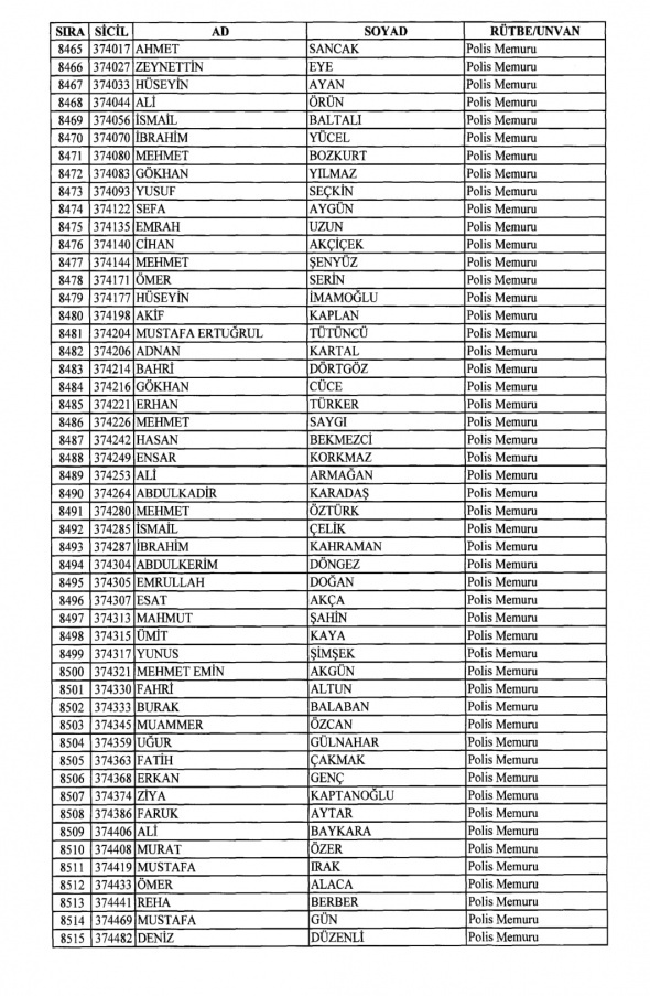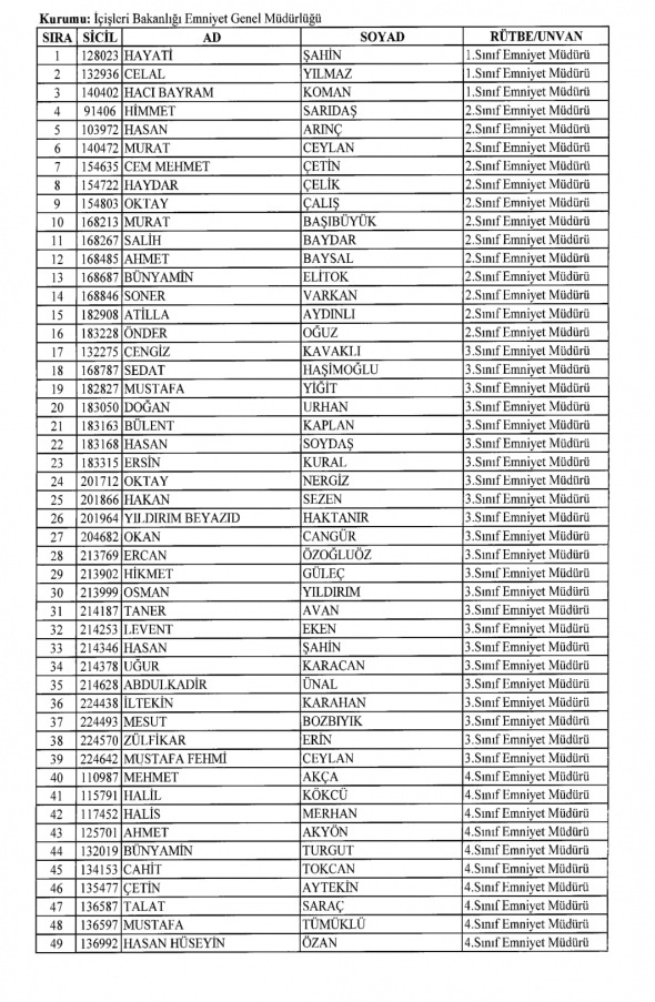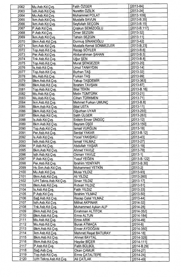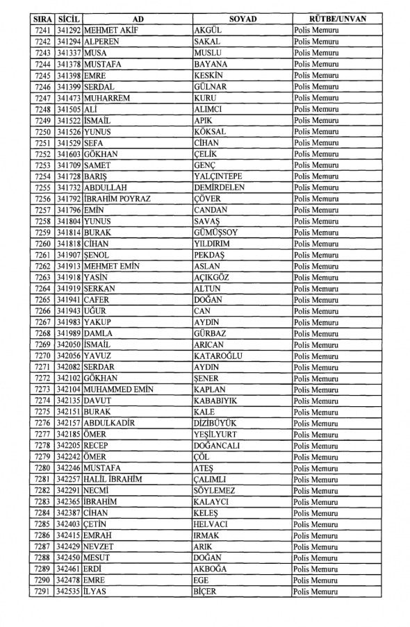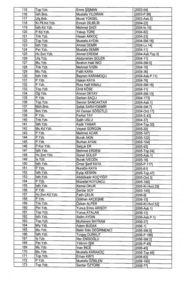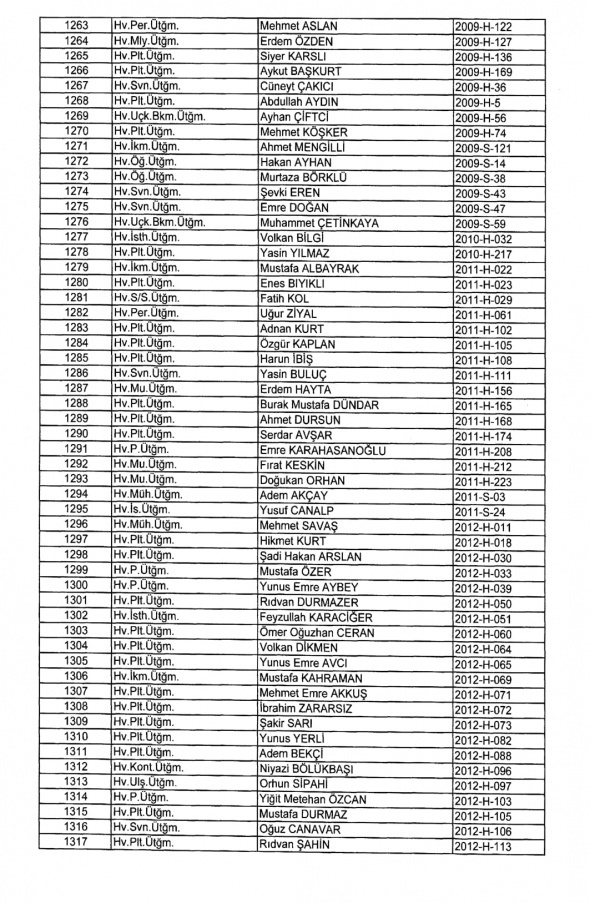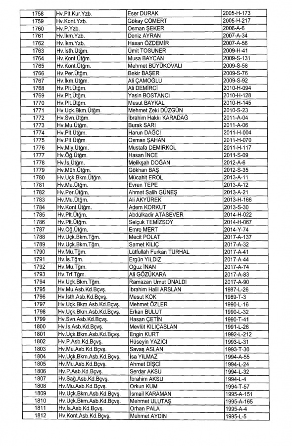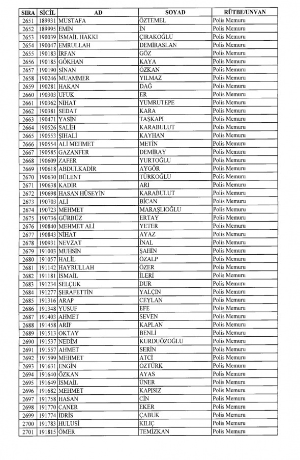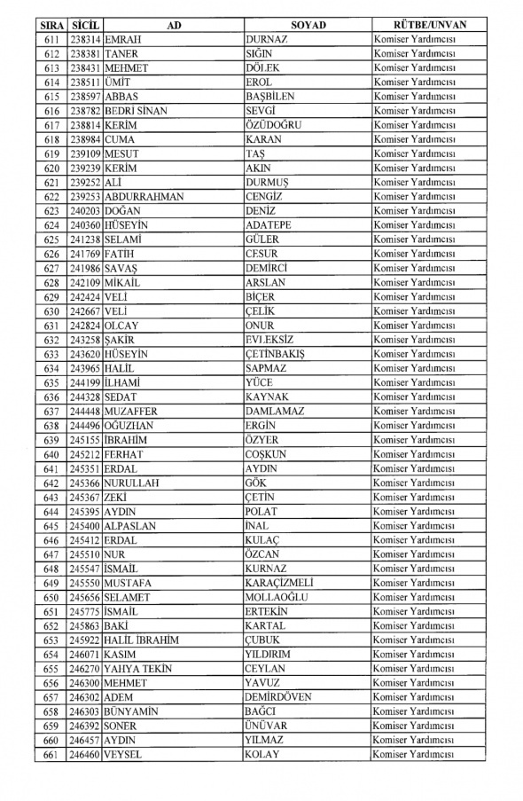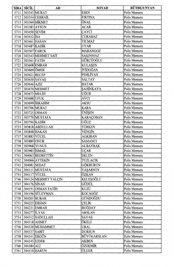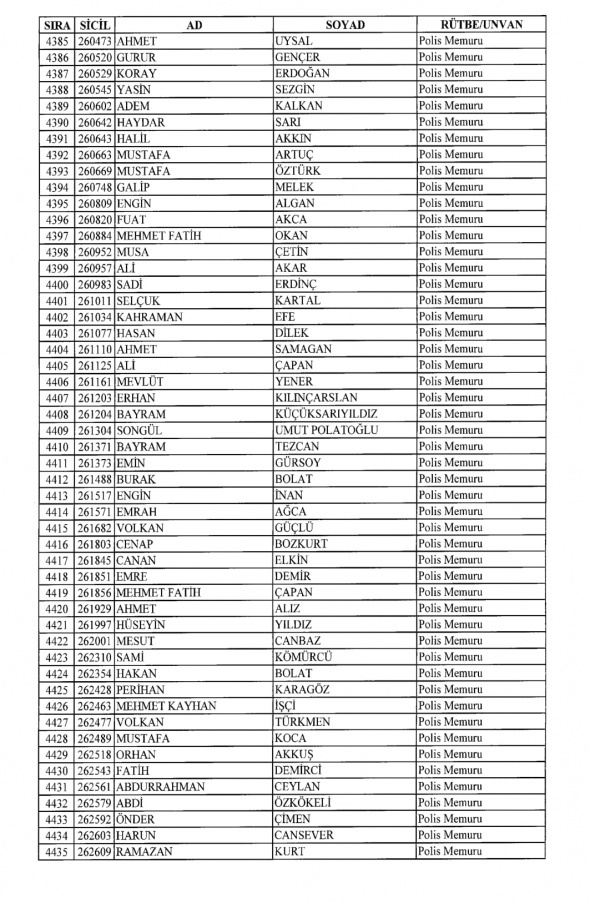 Kararnameye göre, Kara Kuvvetlerinde 240, Deniz Kuvvetlerinde 22, Hava Kuvvetlerinde 62 general, subay ve astsubayın rütbeleri ve emeklilik hakları ellerinden alınırken, İçişleri Bakanlığı Emniyet Genel Müdürlüğünden bin 167, Jandarma Genel Komutanlığından 35 emekli personelin rütbeleri alındı.
