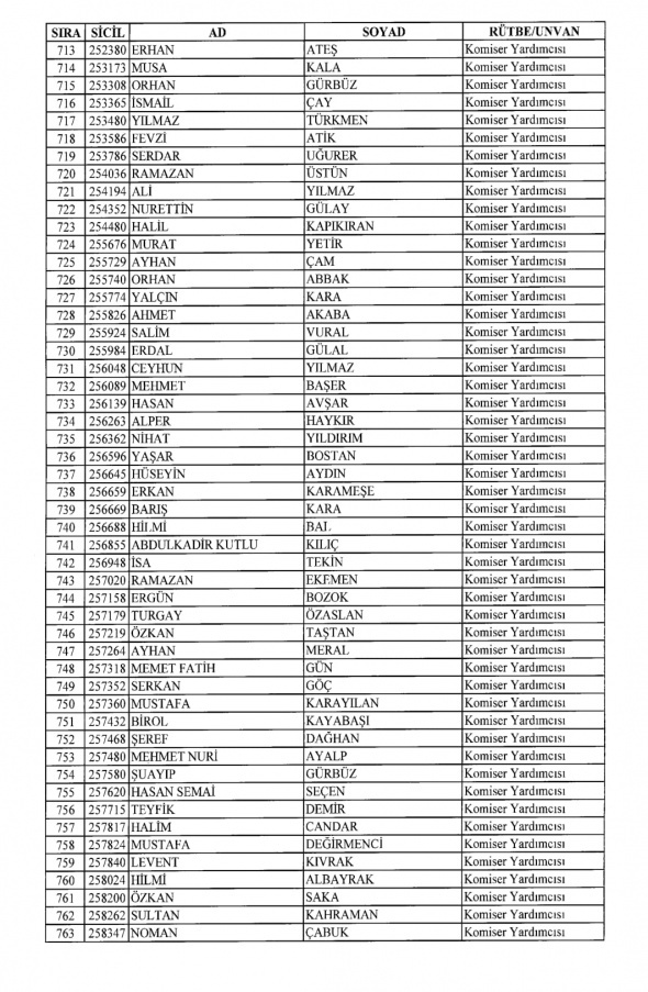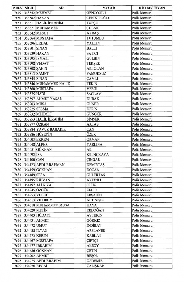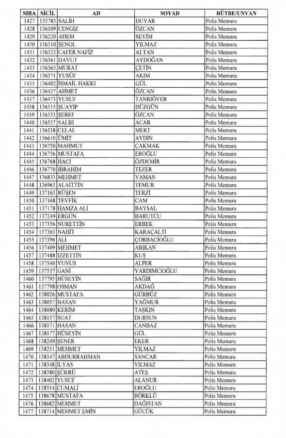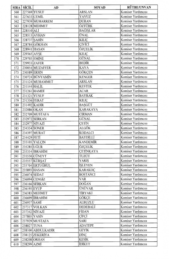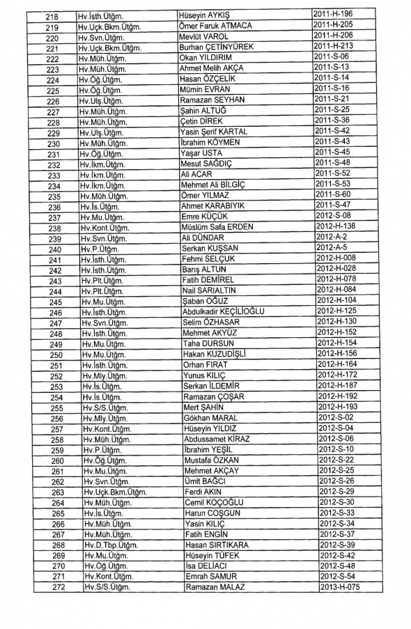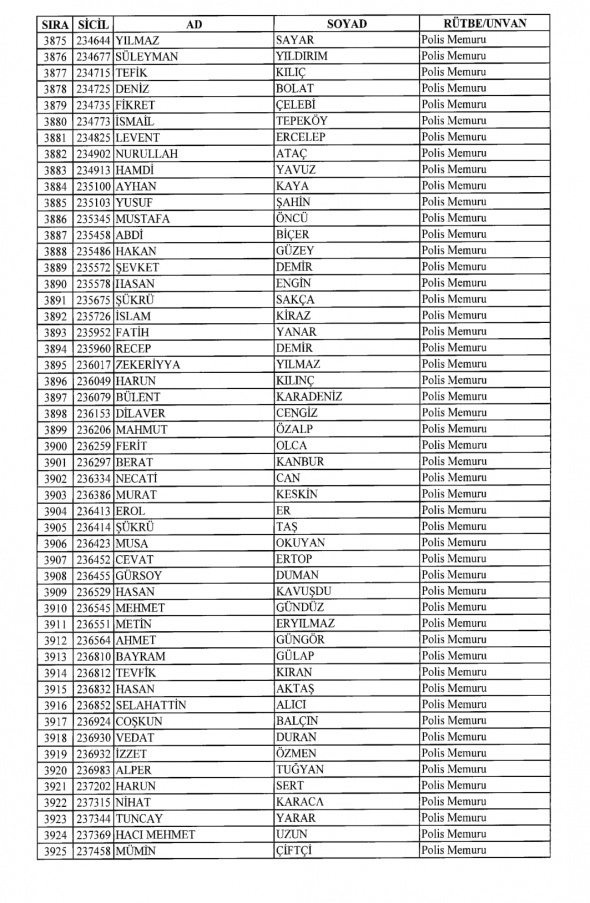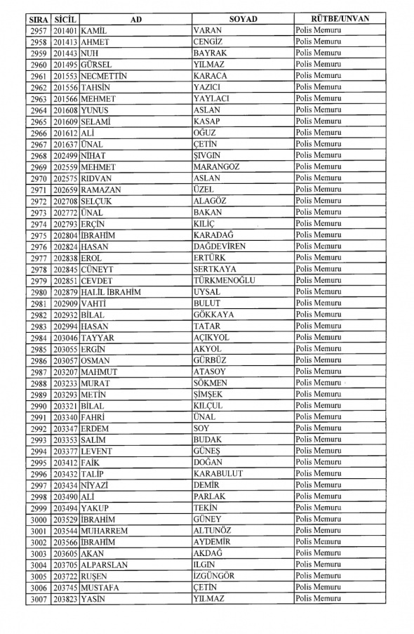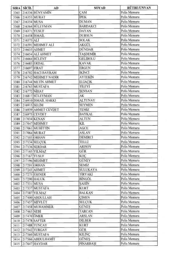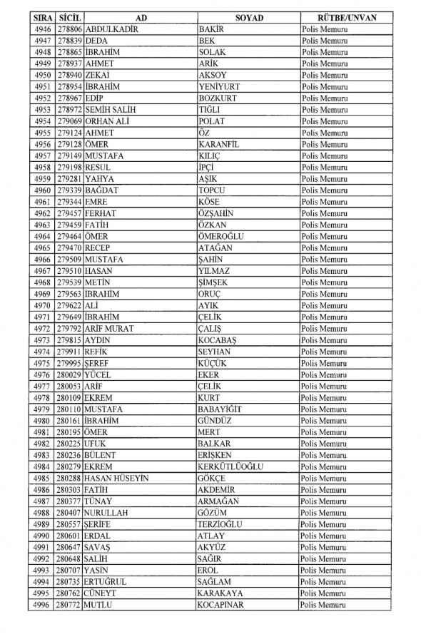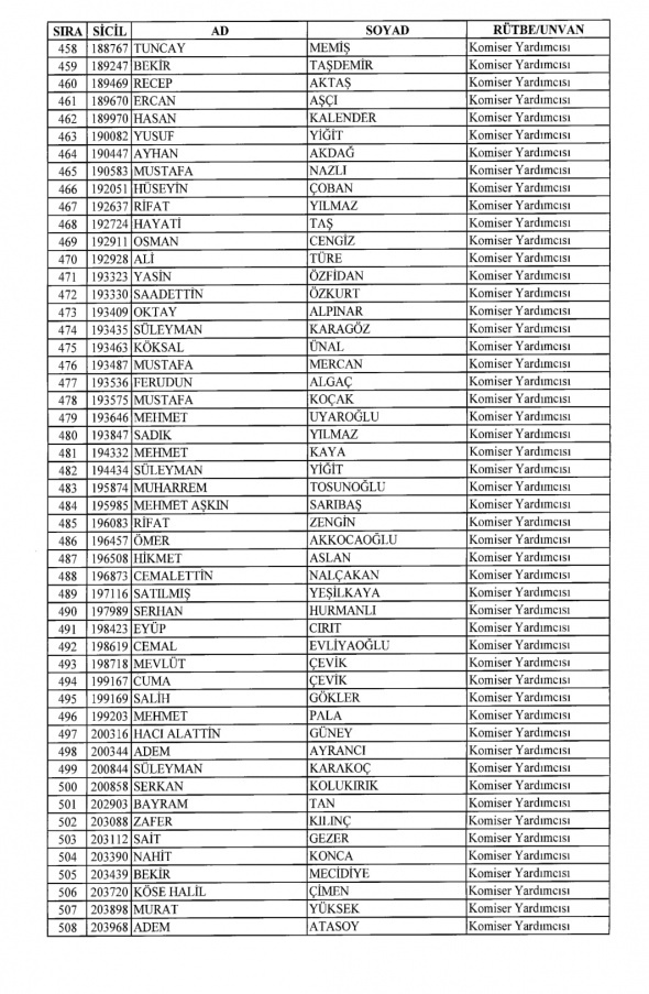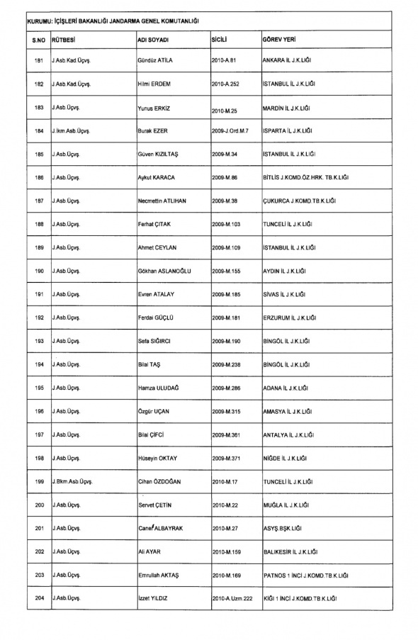 Kararnameye göre, Kara Kuvvetlerinde 240, Deniz Kuvvetlerinde 22, Hava Kuvvetlerinde 62 general, subay ve astsubayın rütbeleri ve emeklilik hakları ellerinden alınırken, İçişleri Bakanlığı Emniyet Genel Müdürlüğünden bin 167, Jandarma Genel Komutanlığından 35 emekli personelin rütbeleri alındı.