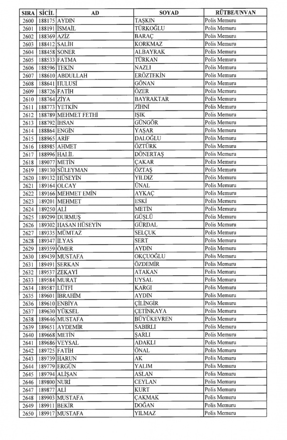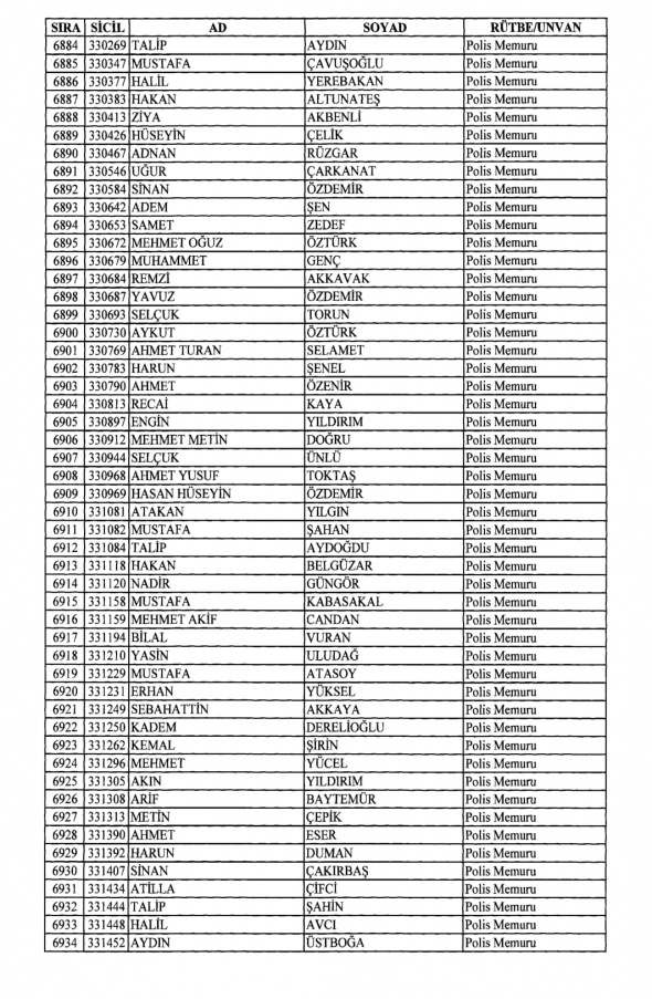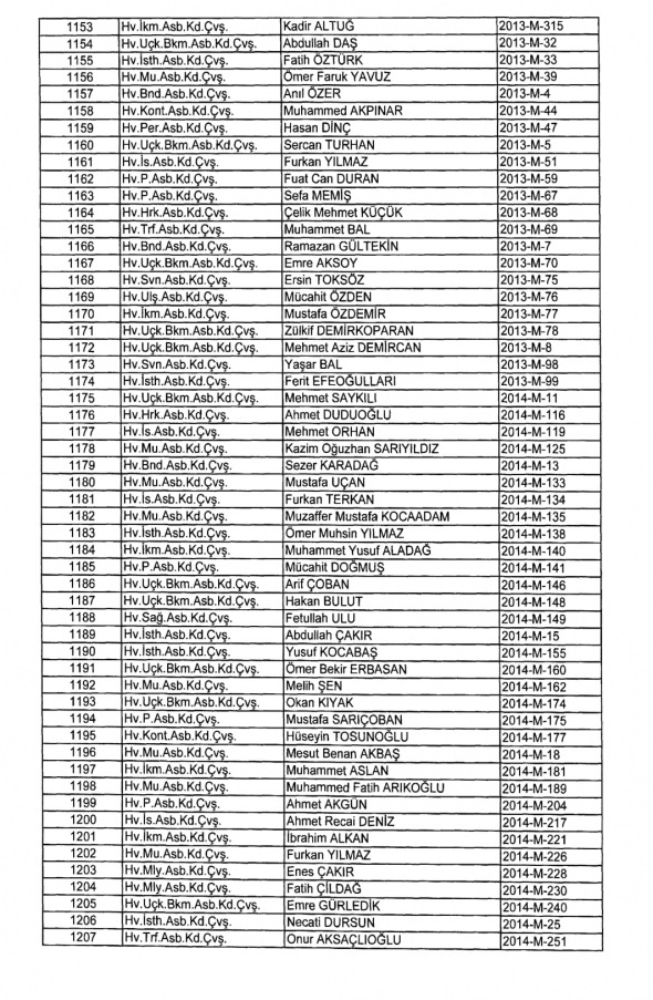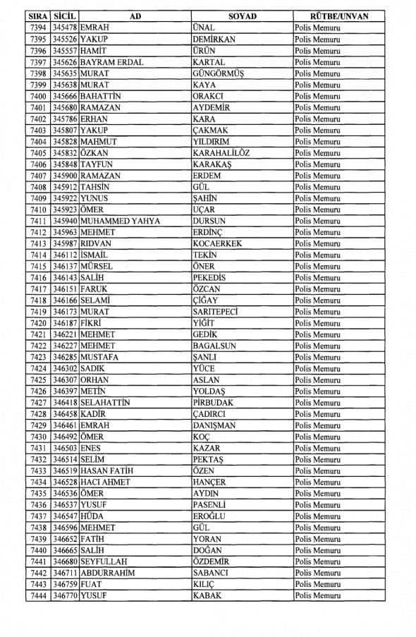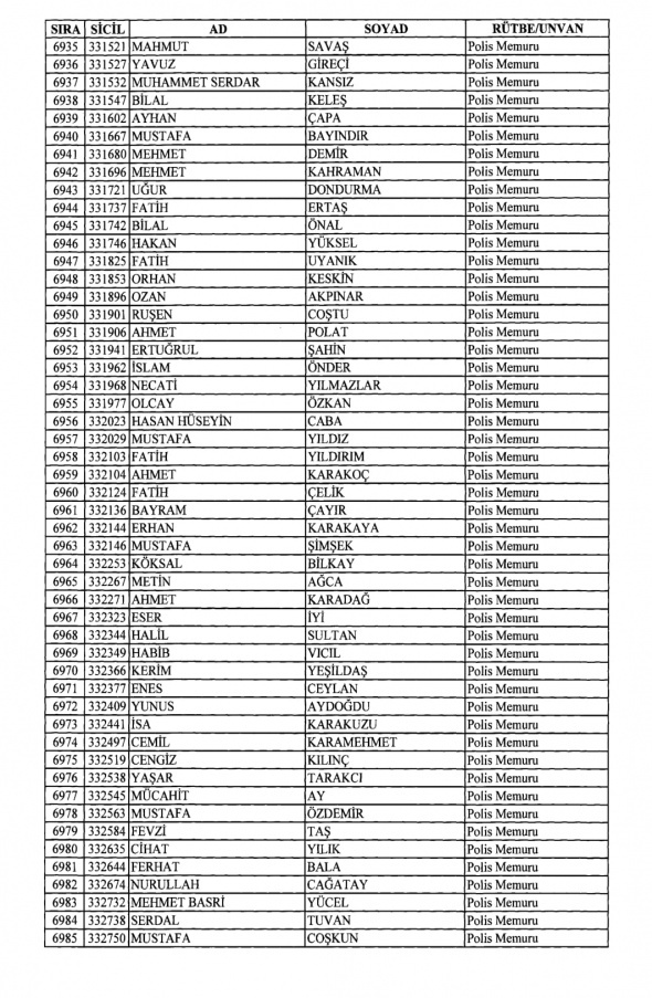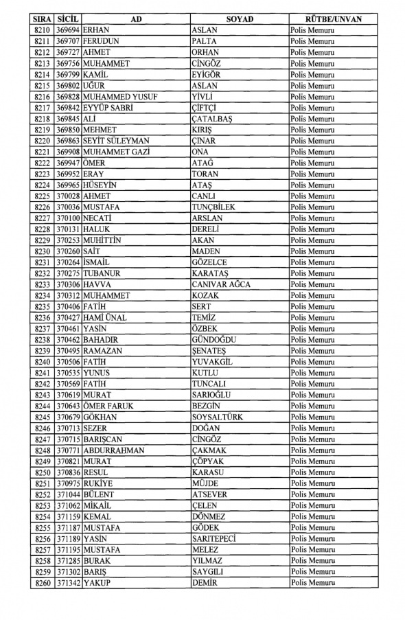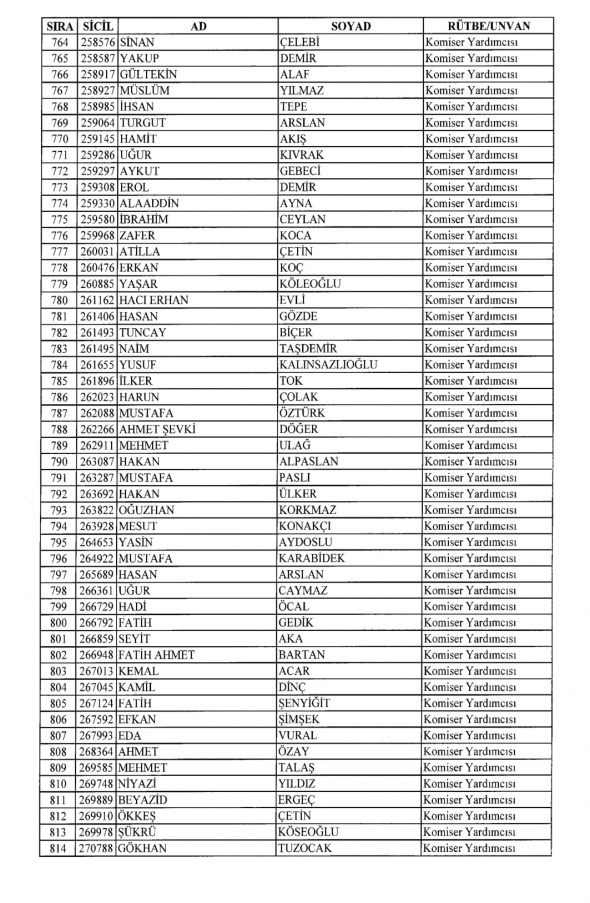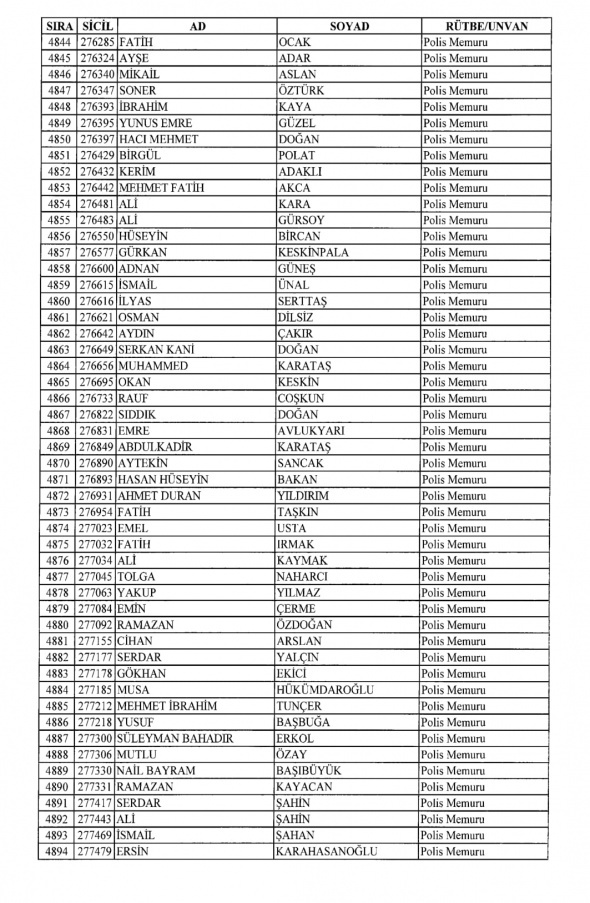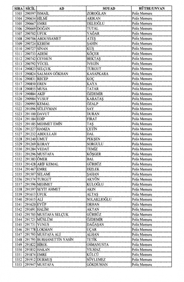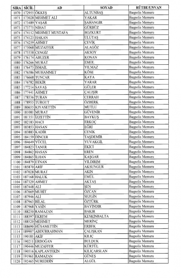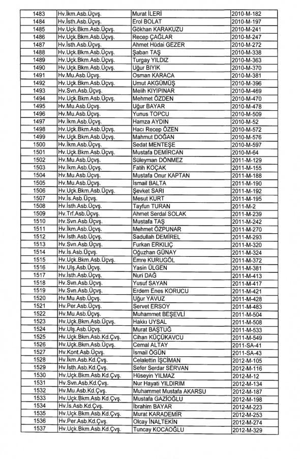 Kararnameye göre, Kara Kuvvetlerinde 240, Deniz Kuvvetlerinde 22, Hava Kuvvetlerinde 62 general, subay ve astsubayın rütbeleri ve emeklilik hakları ellerinden alınırken, İçişleri Bakanlığı Emniyet Genel Müdürlüğünden bin 167, Jandarma Genel Komutanlığından 35 emekli personelin rütbeleri alındı.