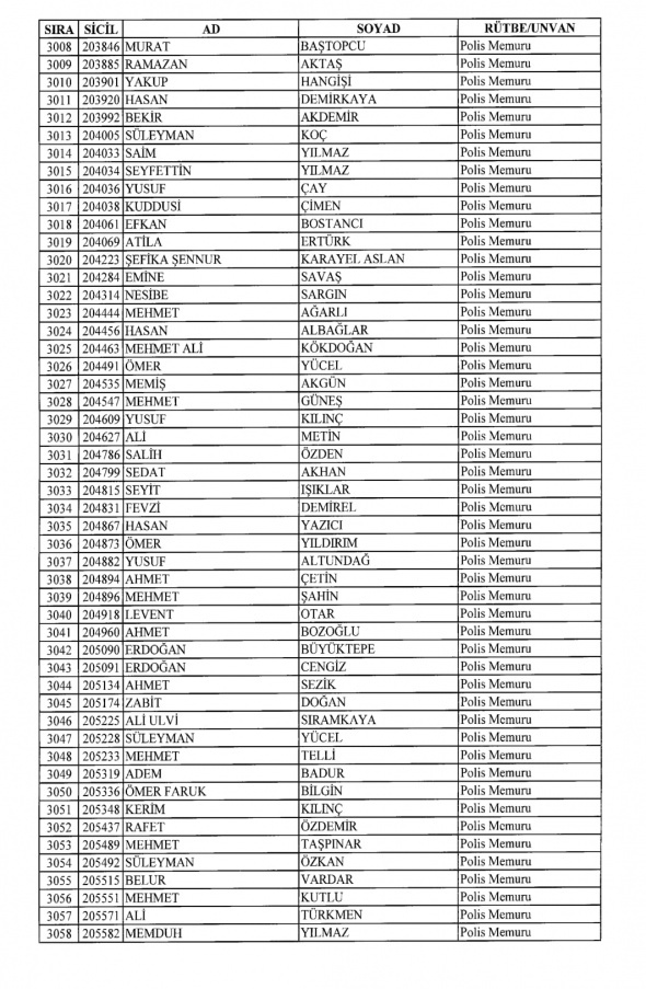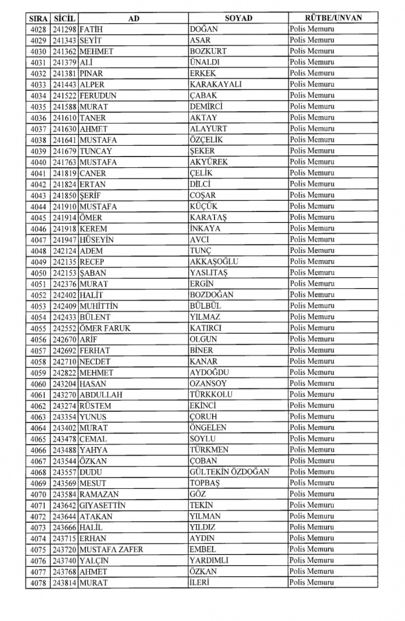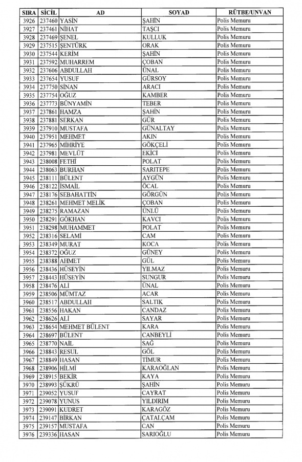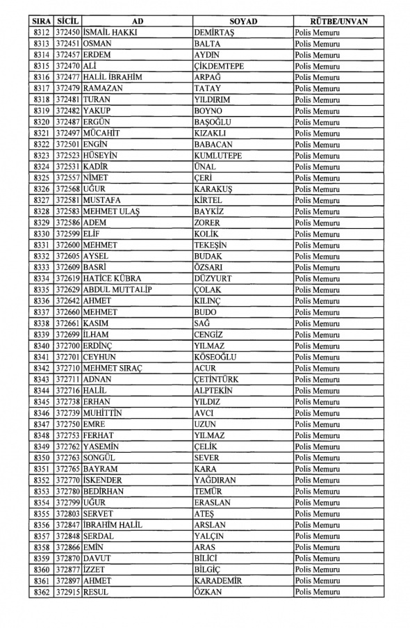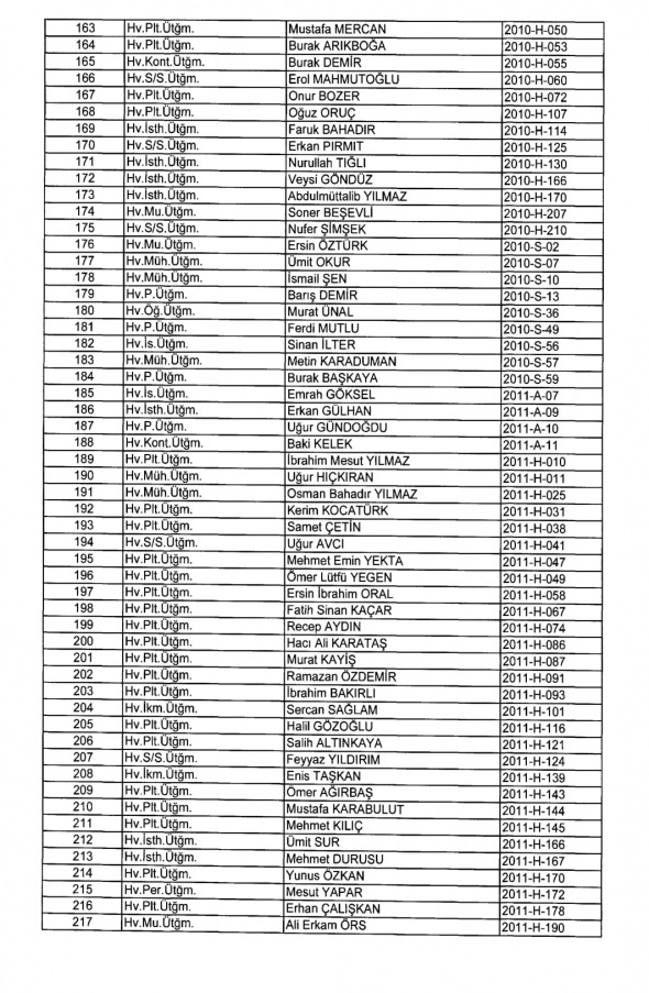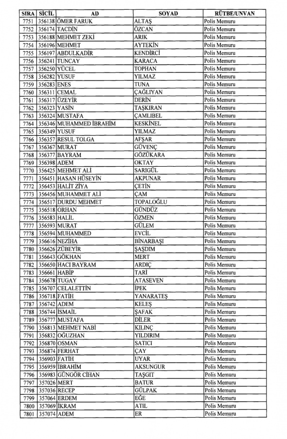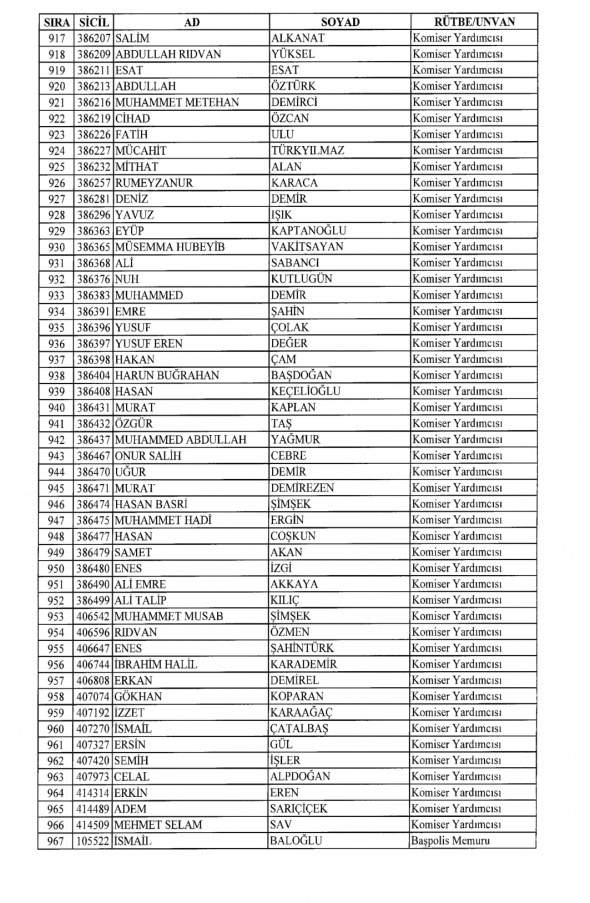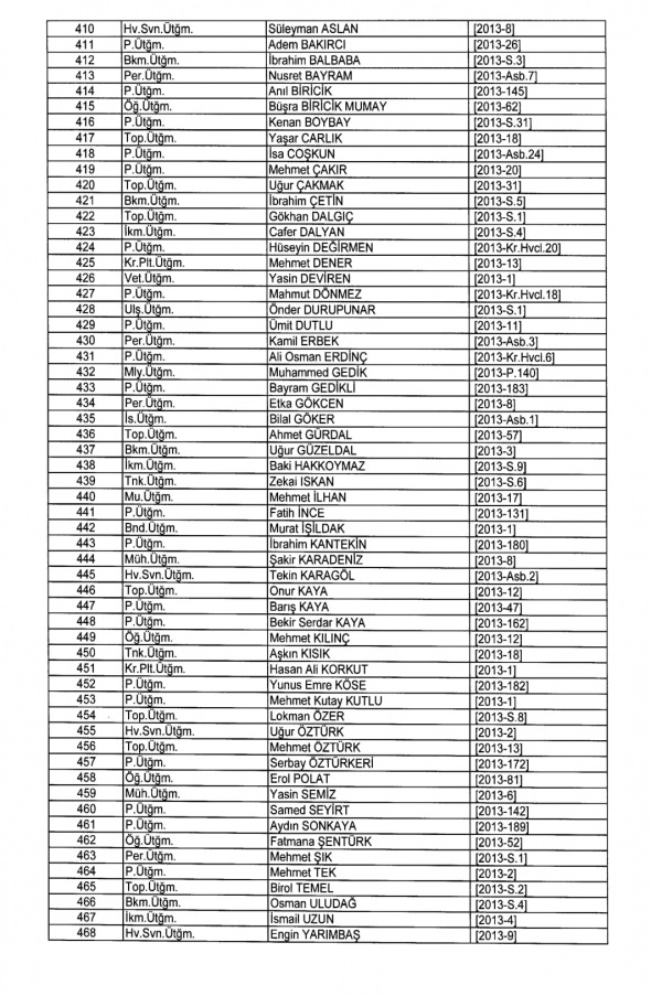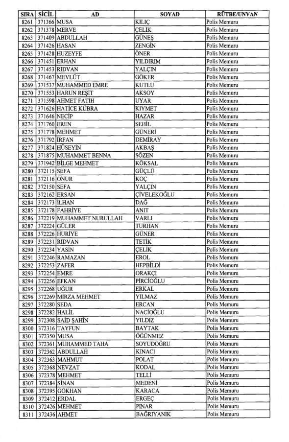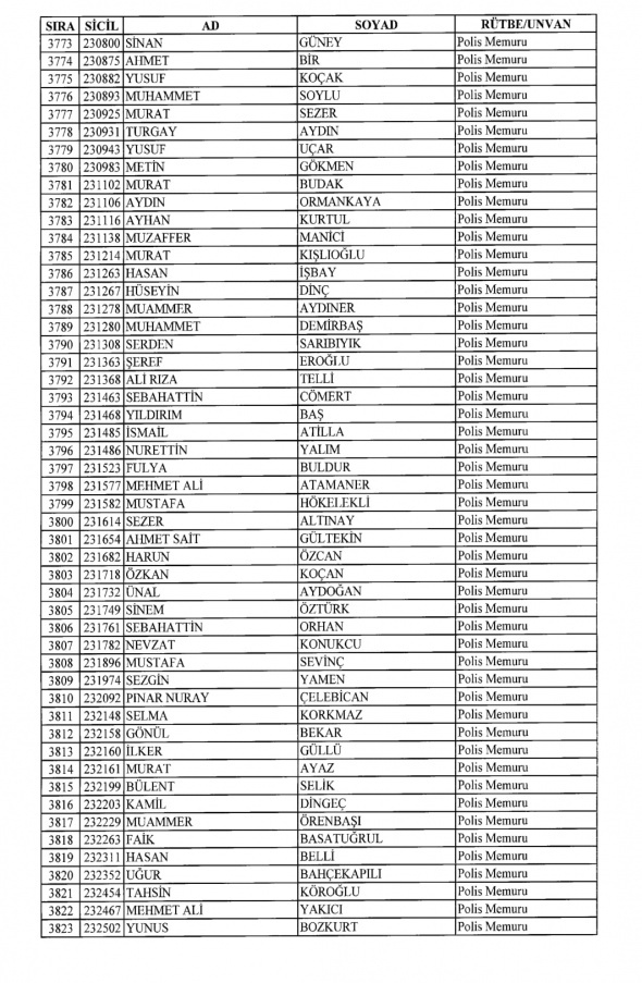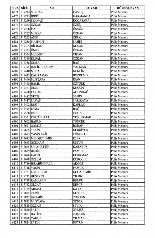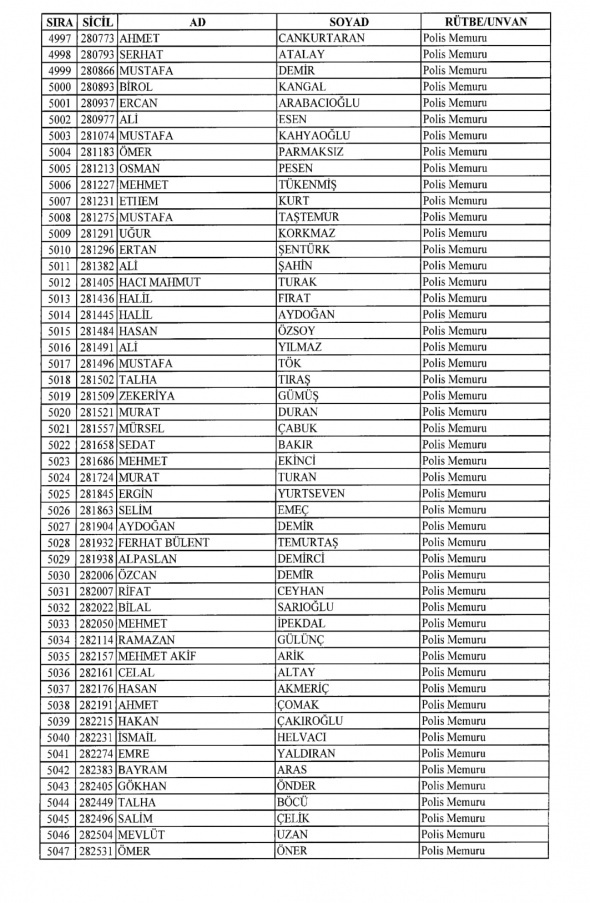 Kararnameye göre, Kara Kuvvetlerinde 240, Deniz Kuvvetlerinde 22, Hava Kuvvetlerinde 62 general, subay ve astsubayın rütbeleri ve emeklilik hakları ellerinden alınırken, İçişleri Bakanlığı Emniyet Genel Müdürlüğünden bin 167, Jandarma Genel Komutanlığından 35 emekli personelin rütbeleri alındı.