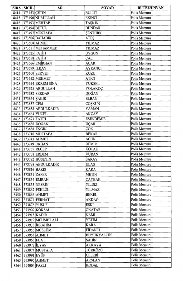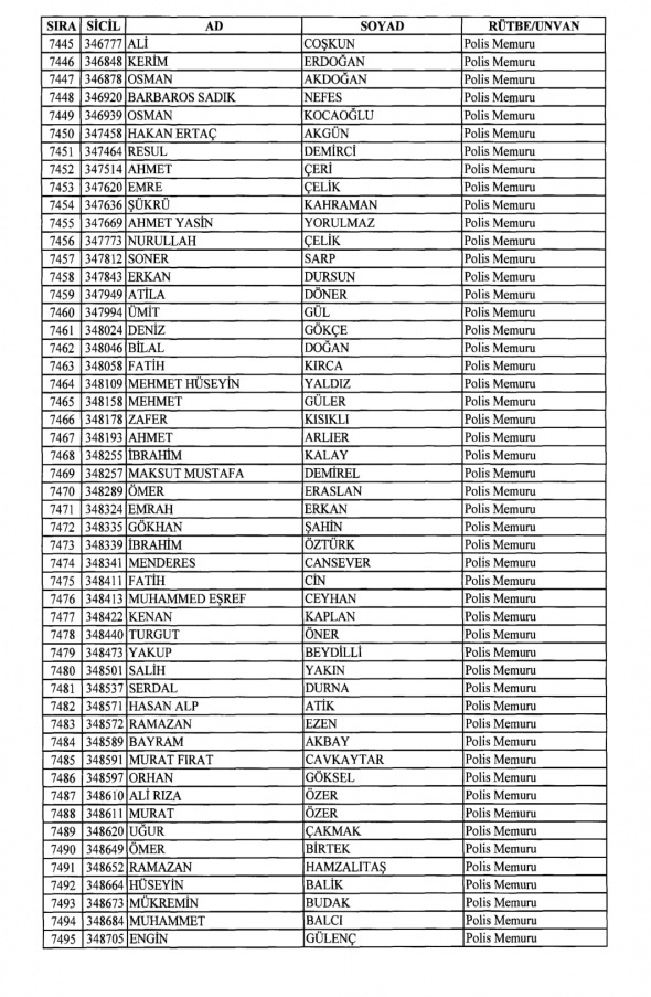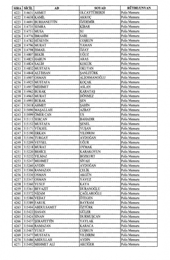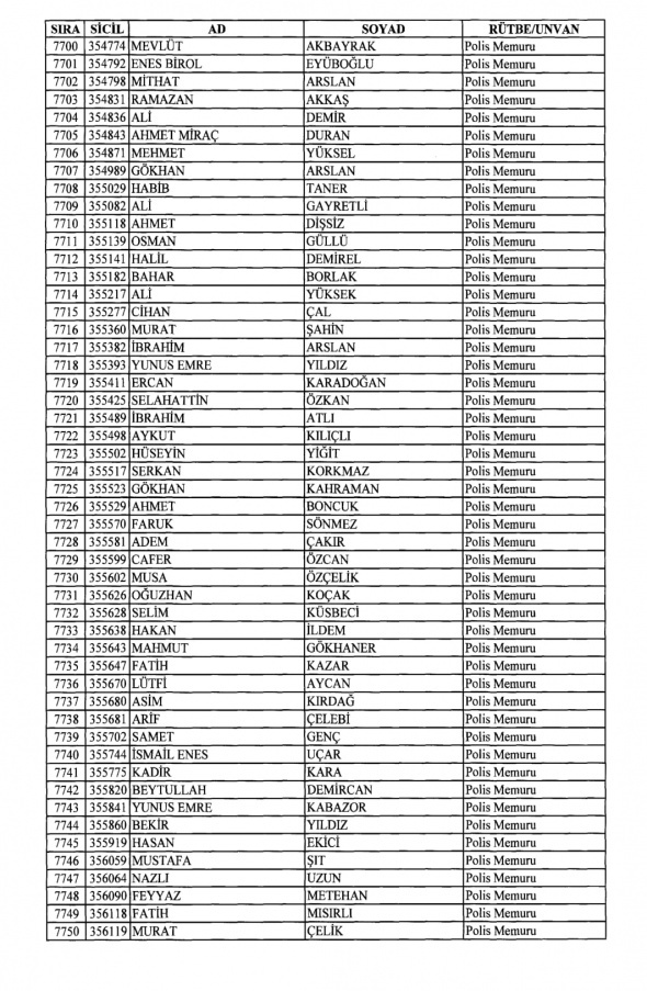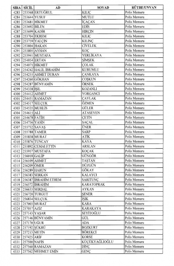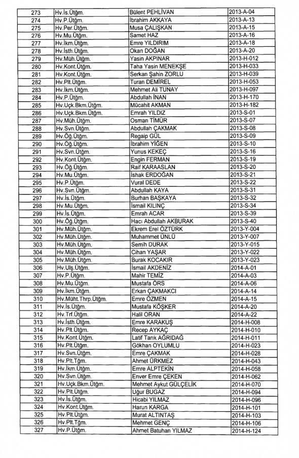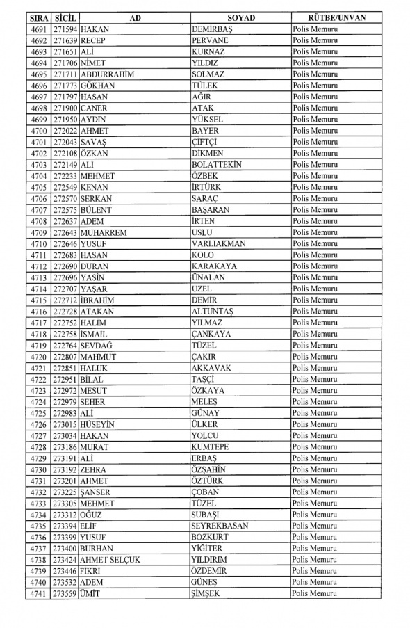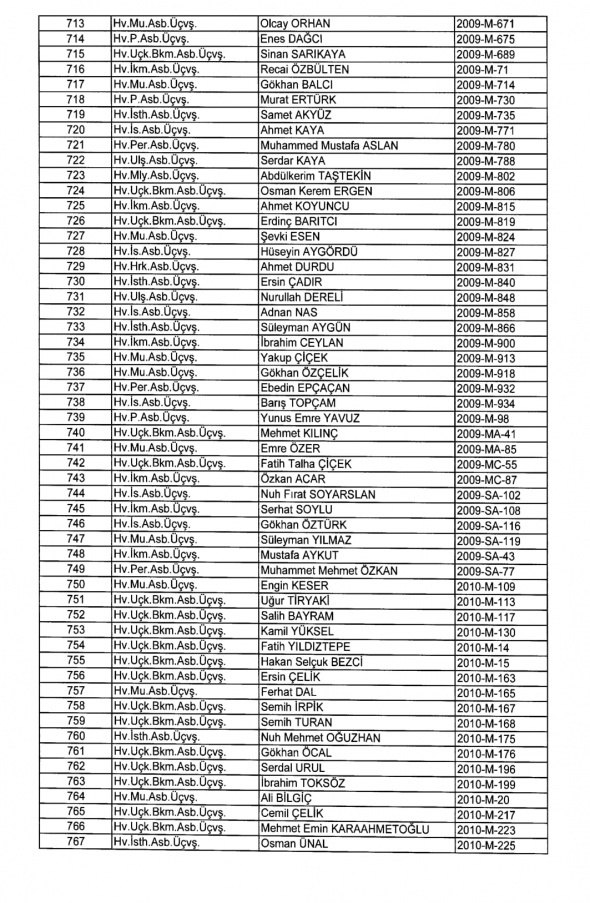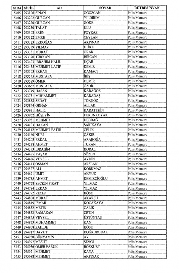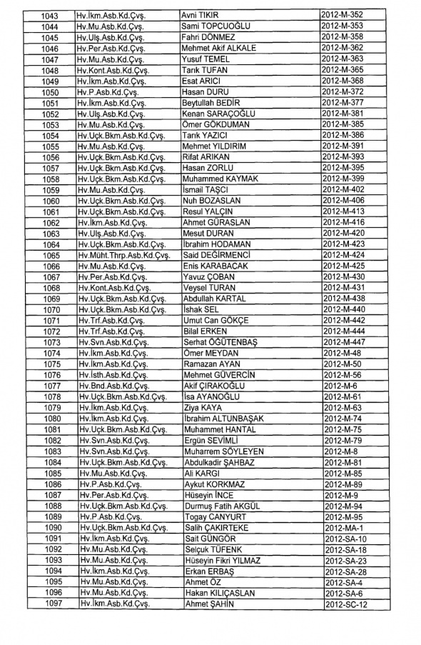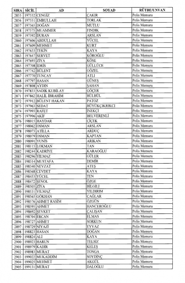 Kararnameye göre, Kara Kuvvetlerinde 240, Deniz Kuvvetlerinde 22, Hava Kuvvetlerinde 62 general, subay ve astsubayın rütbeleri ve emeklilik hakları ellerinden alınırken, İçişleri Bakanlığı Emniyet Genel Müdürlüğünden bin 167, Jandarma Genel Komutanlığından 35 emekli personelin rütbeleri alındı.