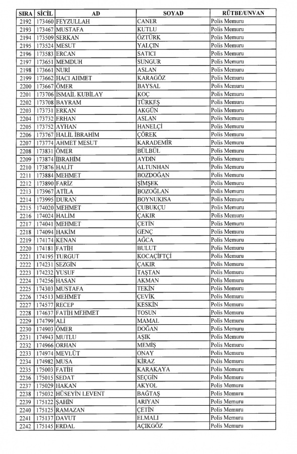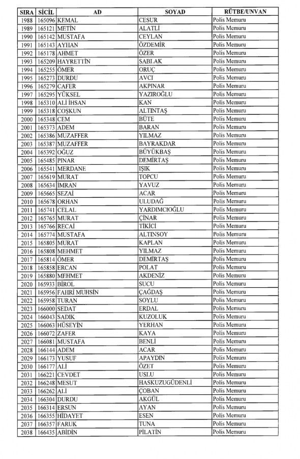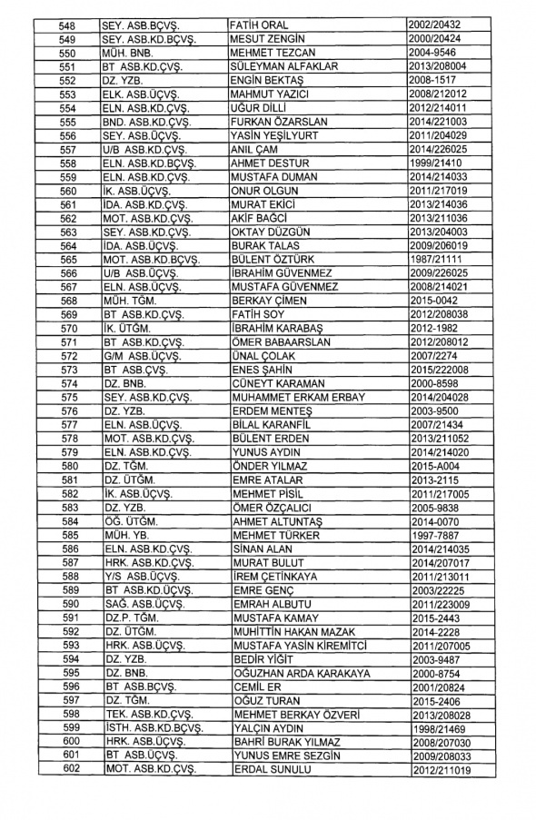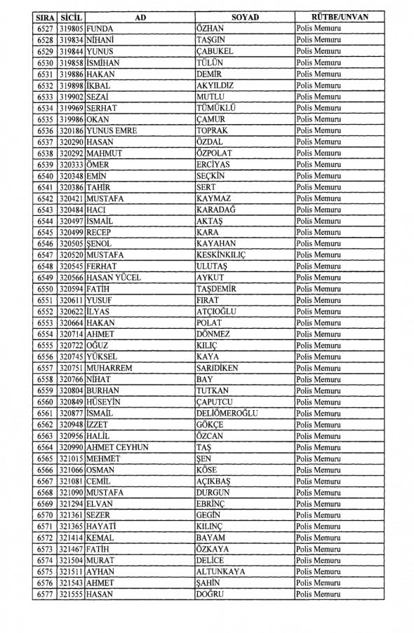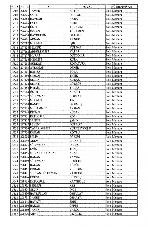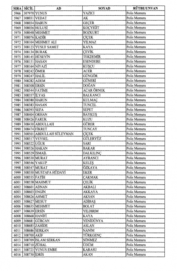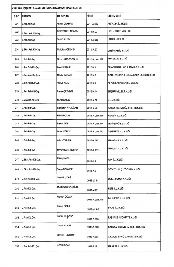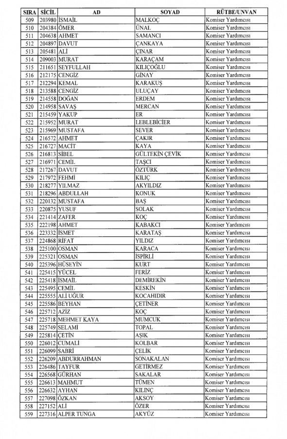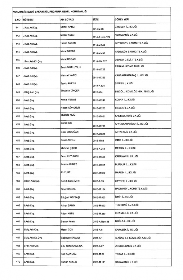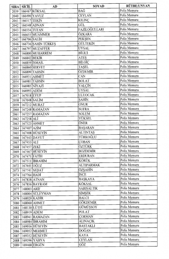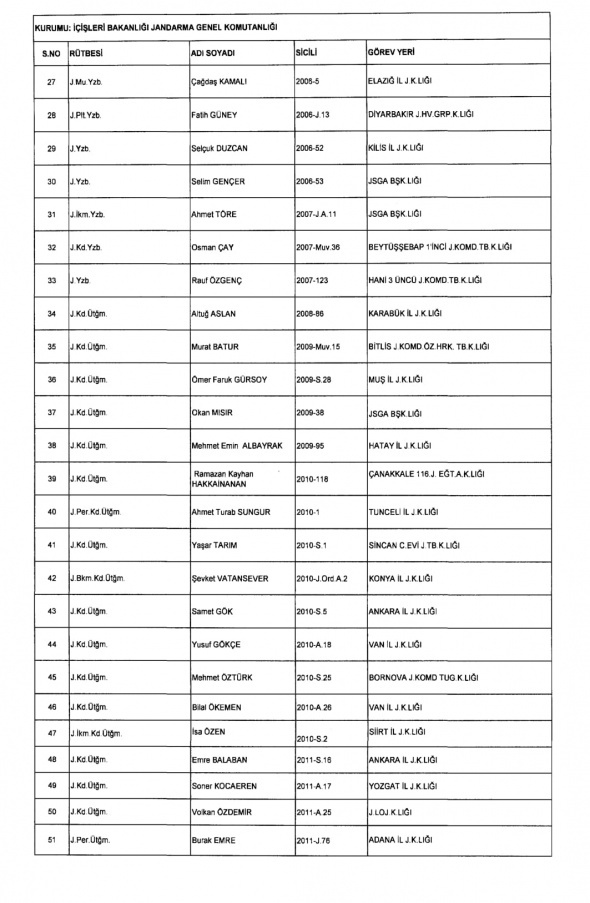 Kararnameye göre, Kara Kuvvetlerinde 240, Deniz Kuvvetlerinde 22, Hava Kuvvetlerinde 62 general, subay ve astsubayın rütbeleri ve emeklilik hakları ellerinden alınırken, İçişleri Bakanlığı Emniyet Genel Müdürlüğünden bin 167, Jandarma Genel Komutanlığından 35 emekli personelin rütbeleri alındı.