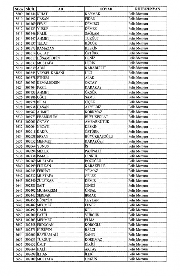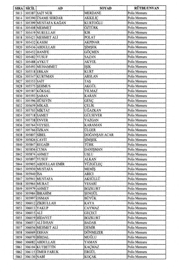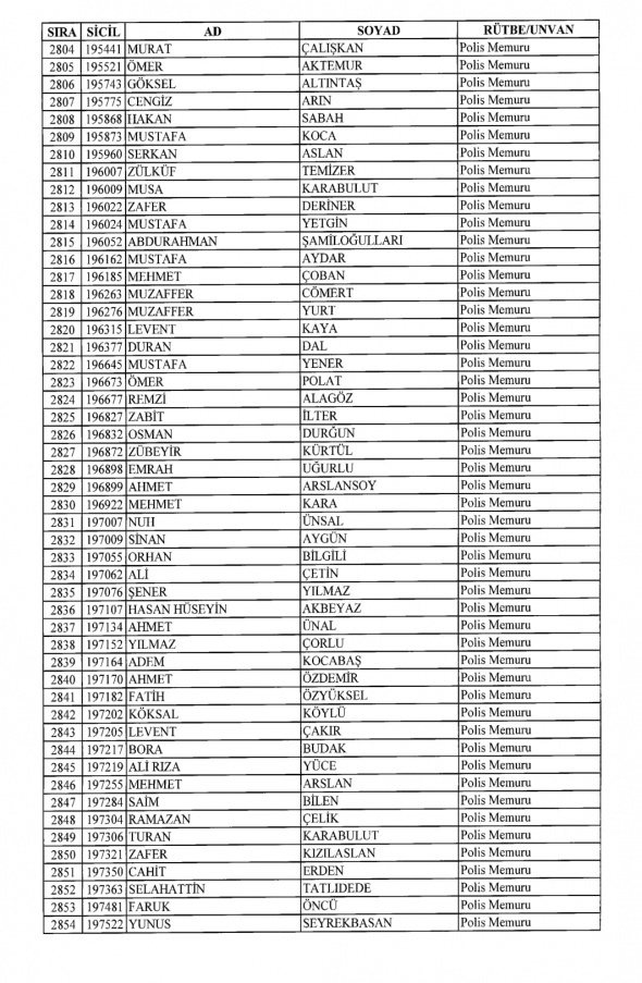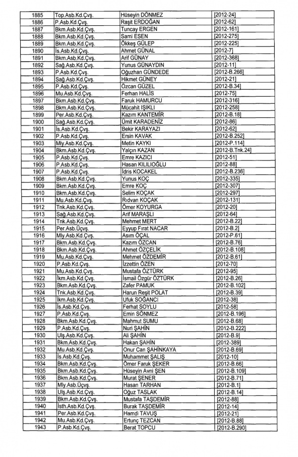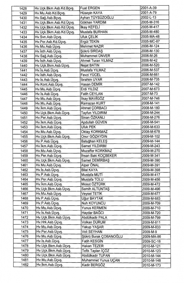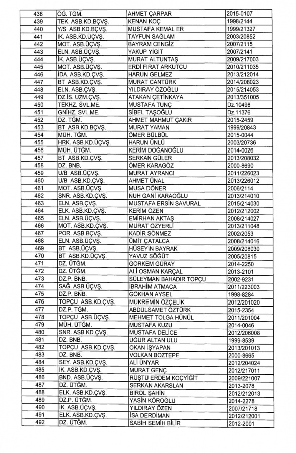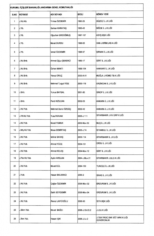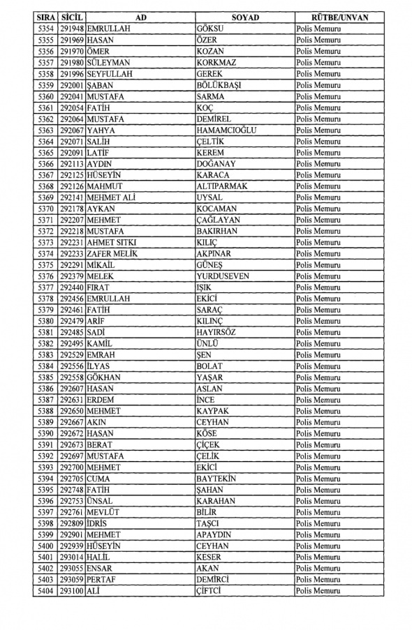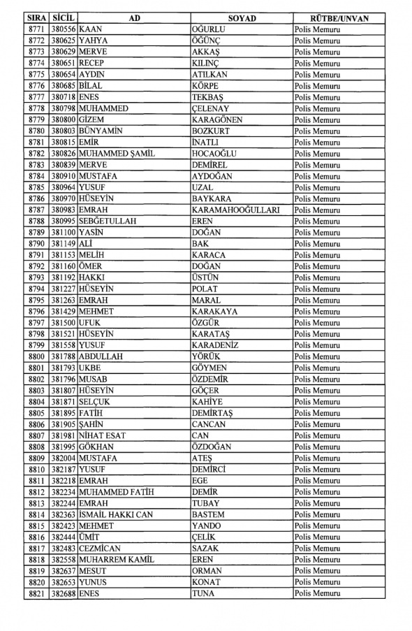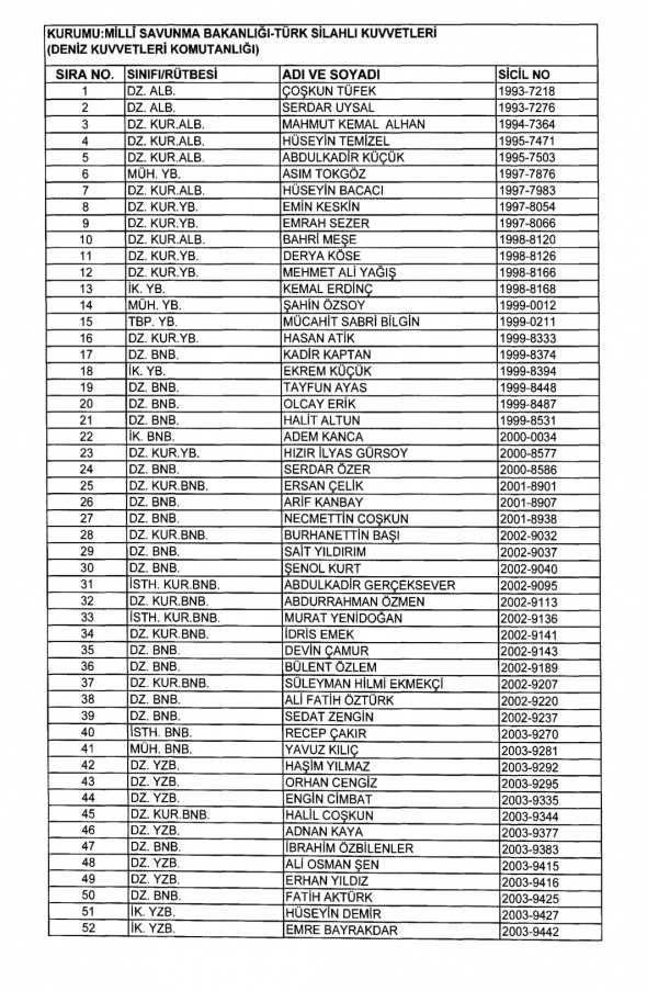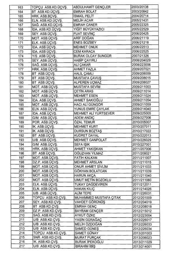 Kararnameye göre, Kara Kuvvetlerinde 240, Deniz Kuvvetlerinde 22, Hava Kuvvetlerinde 62 general, subay ve astsubayın rütbeleri ve emeklilik hakları ellerinden alınırken, İçişleri Bakanlığı Emniyet Genel Müdürlüğünden bin 167, Jandarma Genel Komutanlığından 35 emekli personelin rütbeleri alındı.