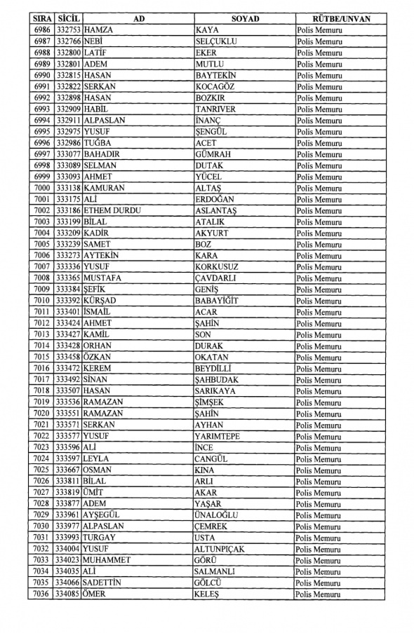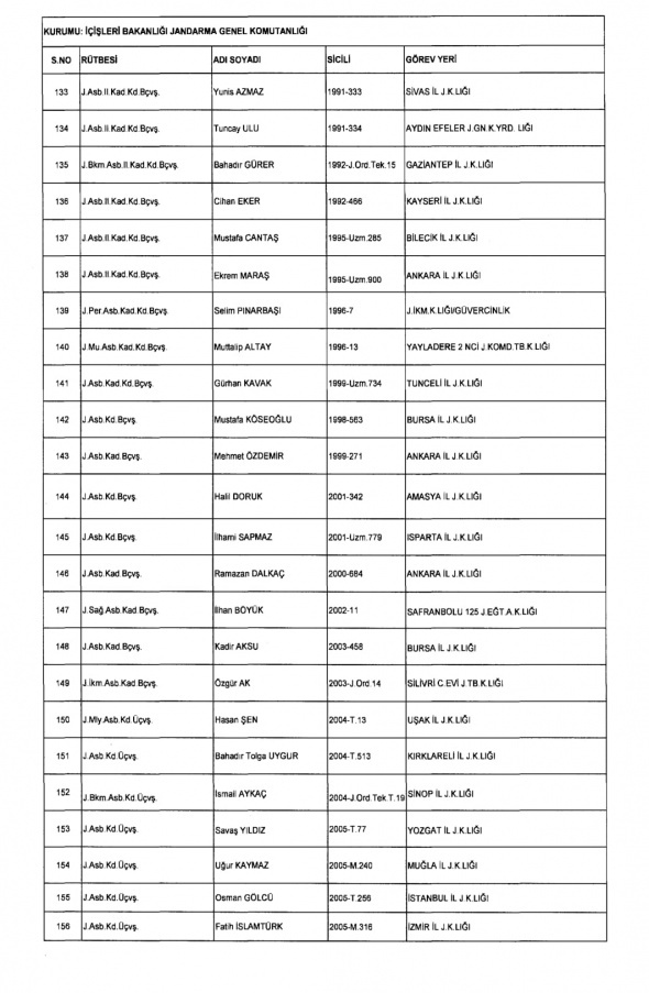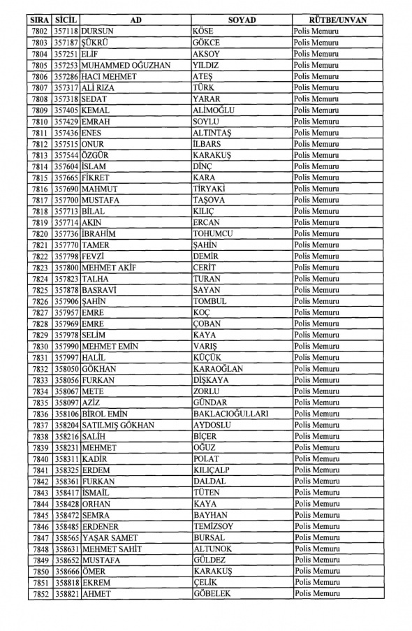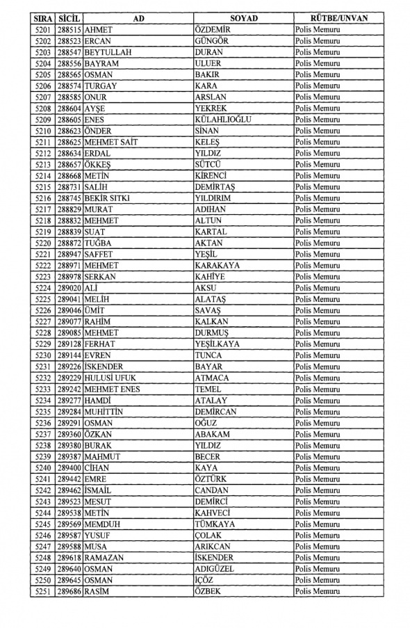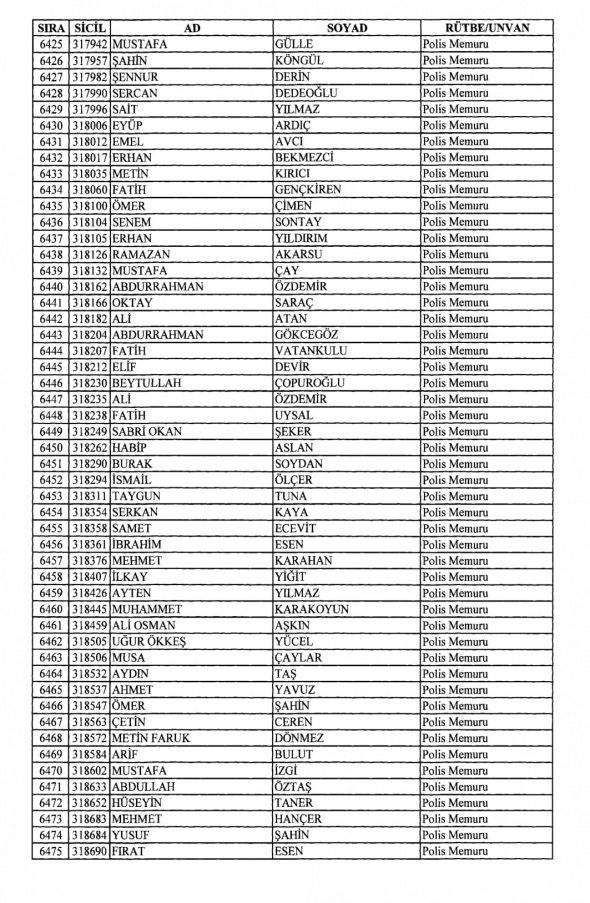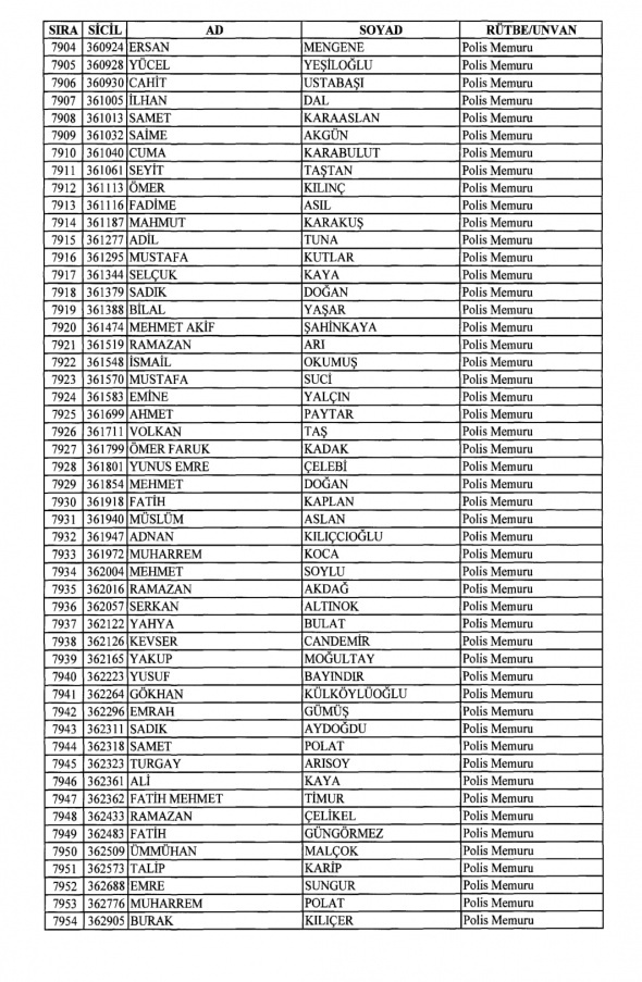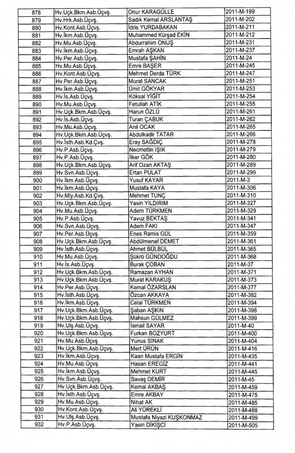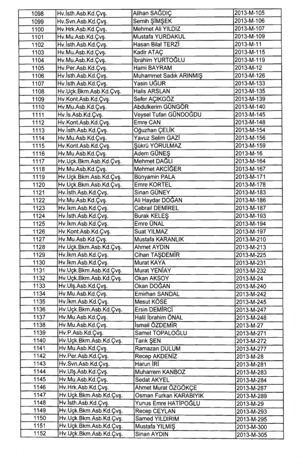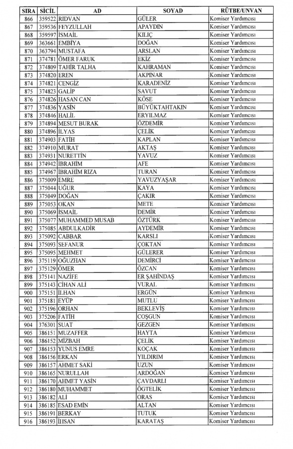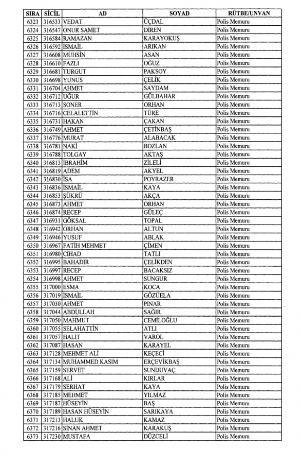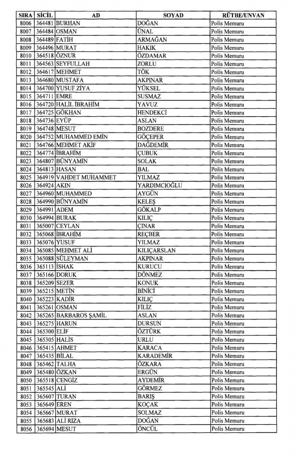 Kararnameye göre, Kara Kuvvetlerinde 240, Deniz Kuvvetlerinde 22, Hava Kuvvetlerinde 62 general, subay ve astsubayın rütbeleri ve emeklilik hakları ellerinden alınırken, İçişleri Bakanlığı Emniyet Genel Müdürlüğünden bin 167, Jandarma Genel Komutanlığından 35 emekli personelin rütbeleri alındı.