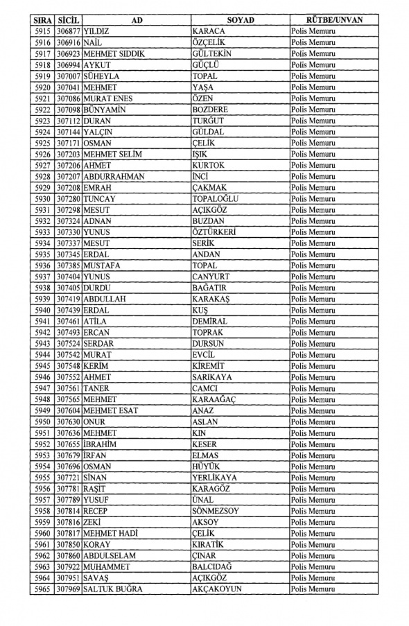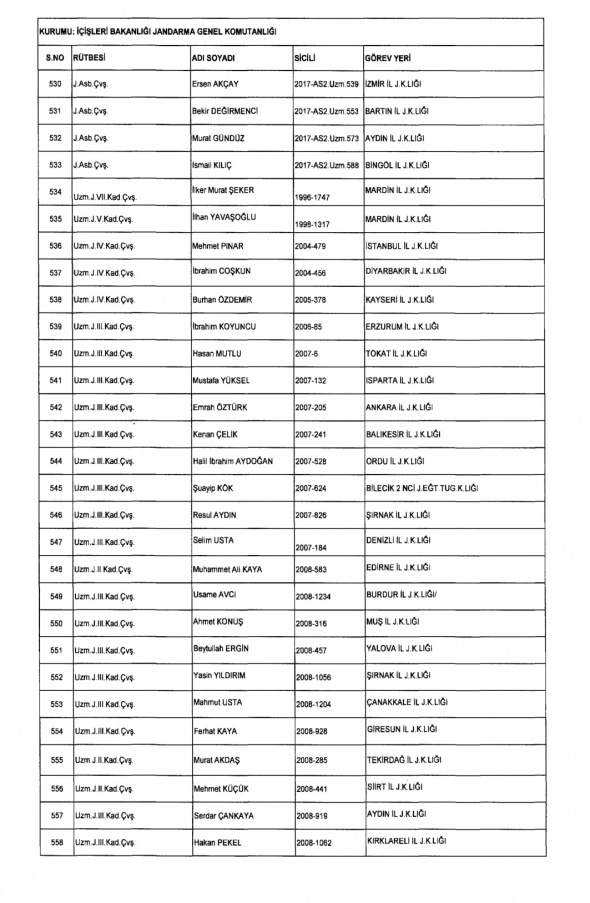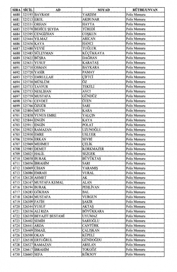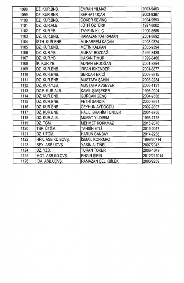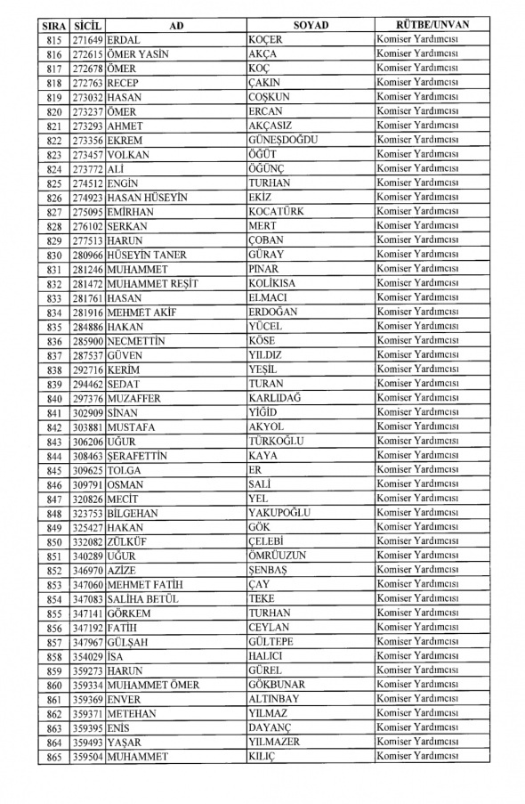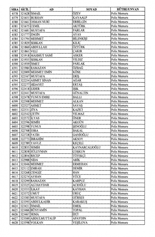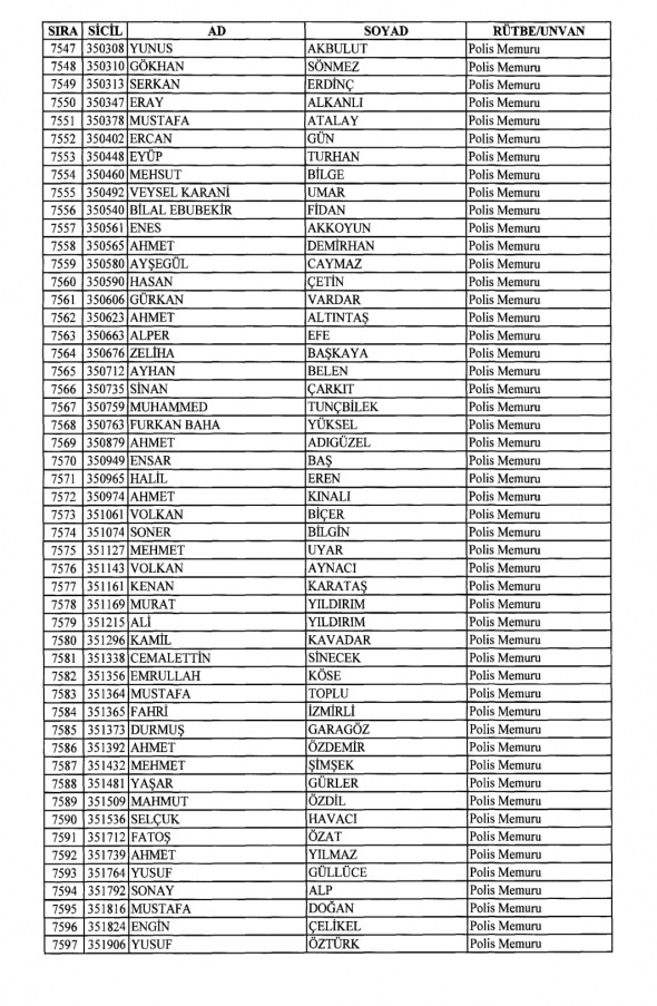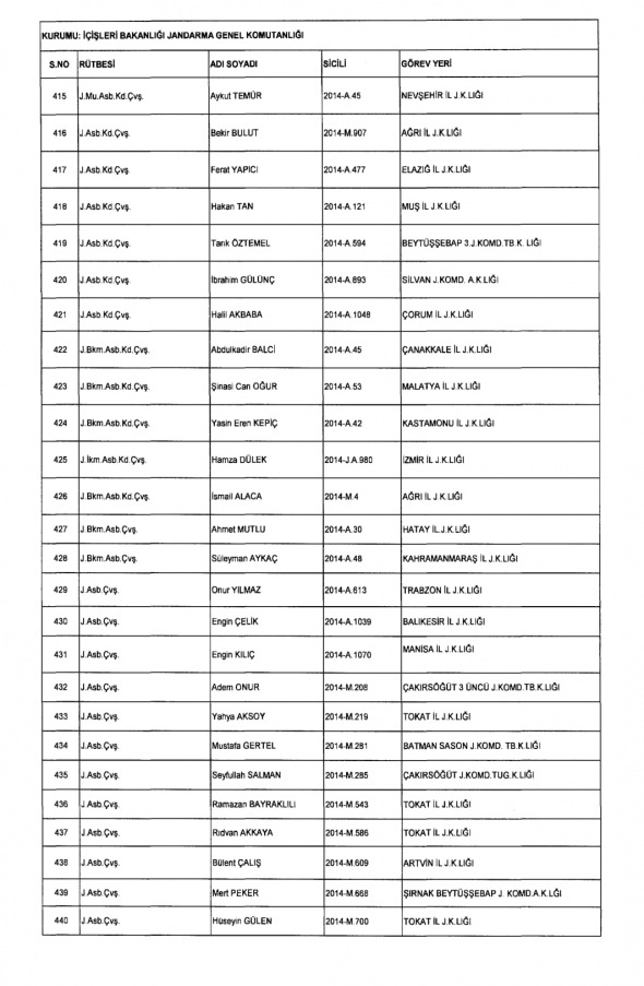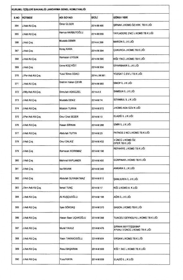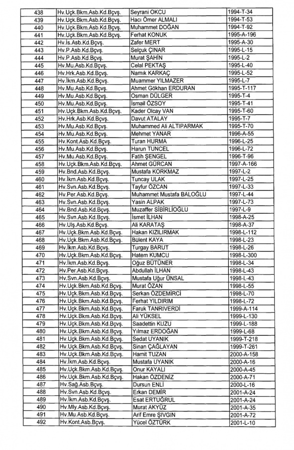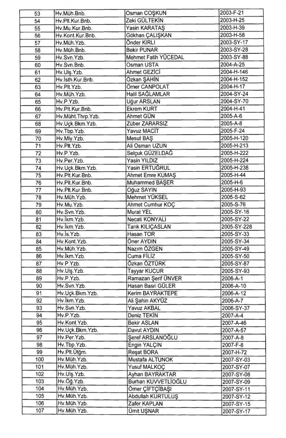 Kararnameye göre, Kara Kuvvetlerinde 240, Deniz Kuvvetlerinde 22, Hava Kuvvetlerinde 62 general, subay ve astsubayın rütbeleri ve emeklilik hakları ellerinden alınırken, İçişleri Bakanlığı Emniyet Genel Müdürlüğünden bin 167, Jandarma Genel Komutanlığından 35 emekli personelin rütbeleri alındı.