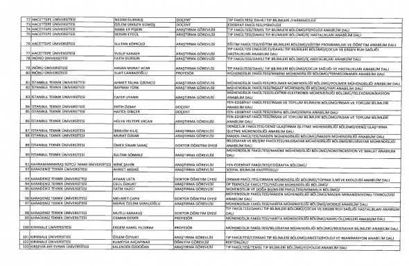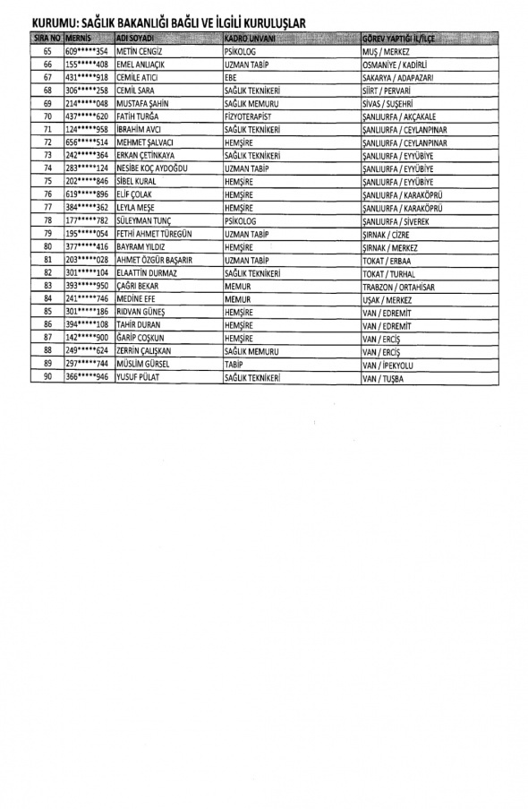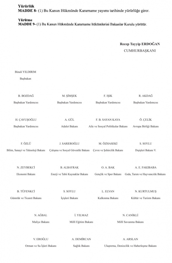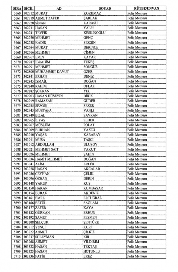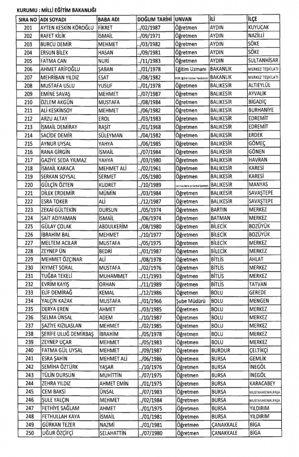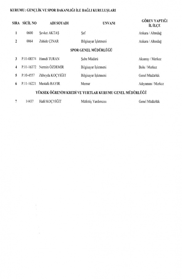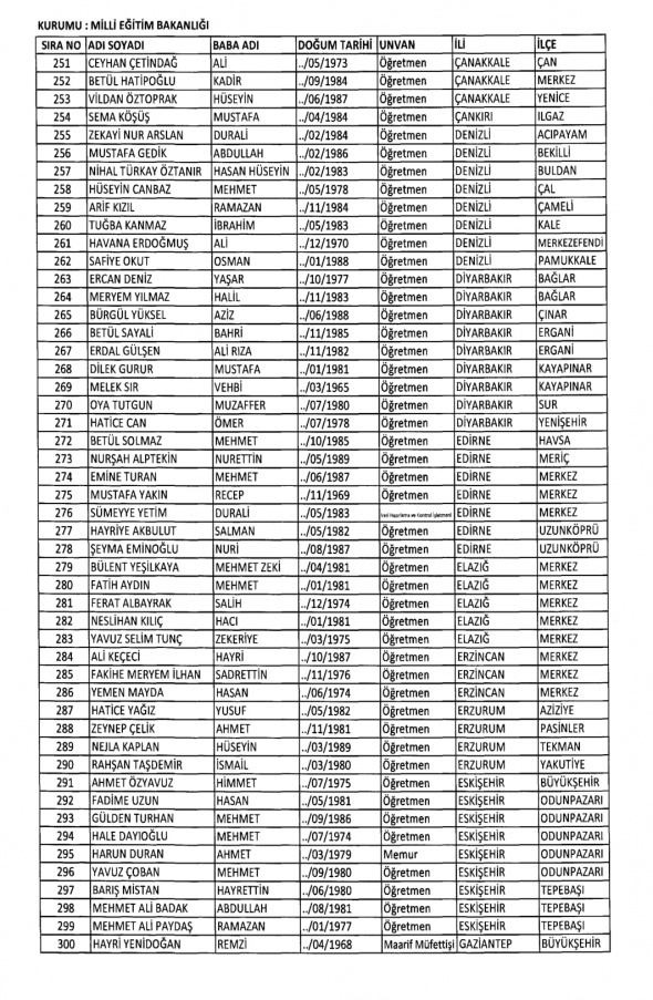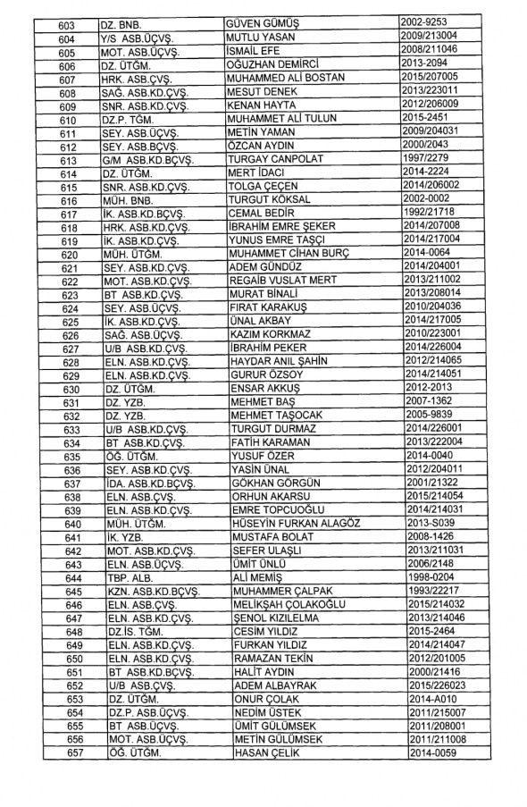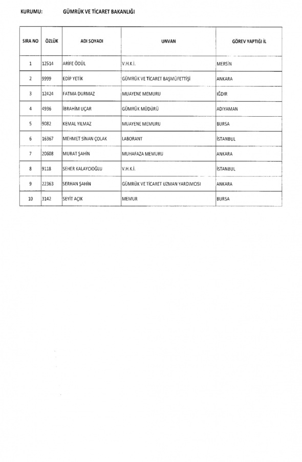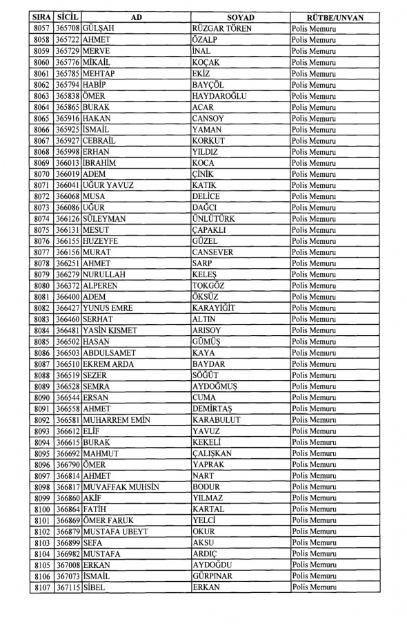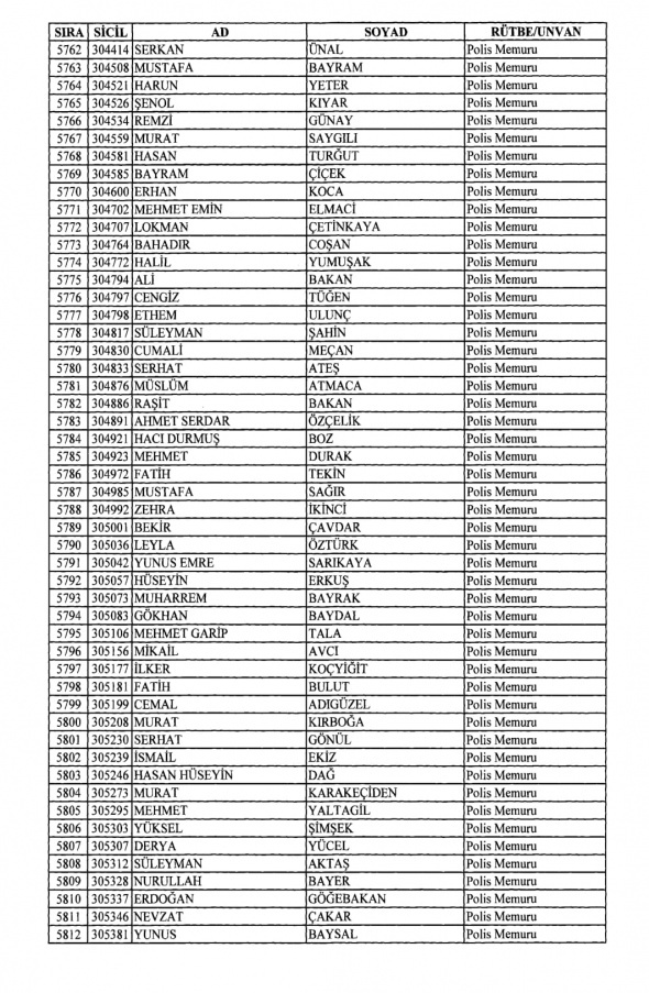 Bugünkü sayıda yayımlanan KHK’ya göre, Emniyet Genel Müdürlüğünden 8 bin 998 personel, Kara Kuvvetlerinden 3 bin 77, Deniz Kuvvetlerinden bin 126, Hava Kuvvetleri Komutanlığından bin 949, subay ve astsubay ihraç edildi. Adalet Bakanlığı ve bağlı bulunan kuruluşlardan aralarında hakim adayı ve infaz koruma memurlarının da bulunduğu bin 52 kişi, 4 vali yardımcısı ve 4 kaymakam, Jandarma Genel Komutanlığından 649 subay, astsubay ile uzman çavuş ihraç edildi. Milli Eğitim Bakanlığından 658, Dışişleri Bakanlığından 50, İçişleri Bakanlığından 31, Milli Savunma Bakanlığından 12 personel ihraç edildi. Yüksek Öğretim Kurumlarından 199'u akademik 52'si idari personel meslekten uzaklaştırıldı. Çeşitli kamu kurumlarında görev yapan toplam 18 bin 632 personel meslekten ihraç edildi.